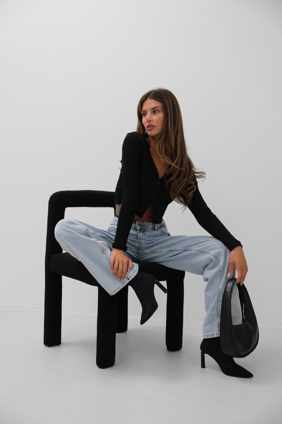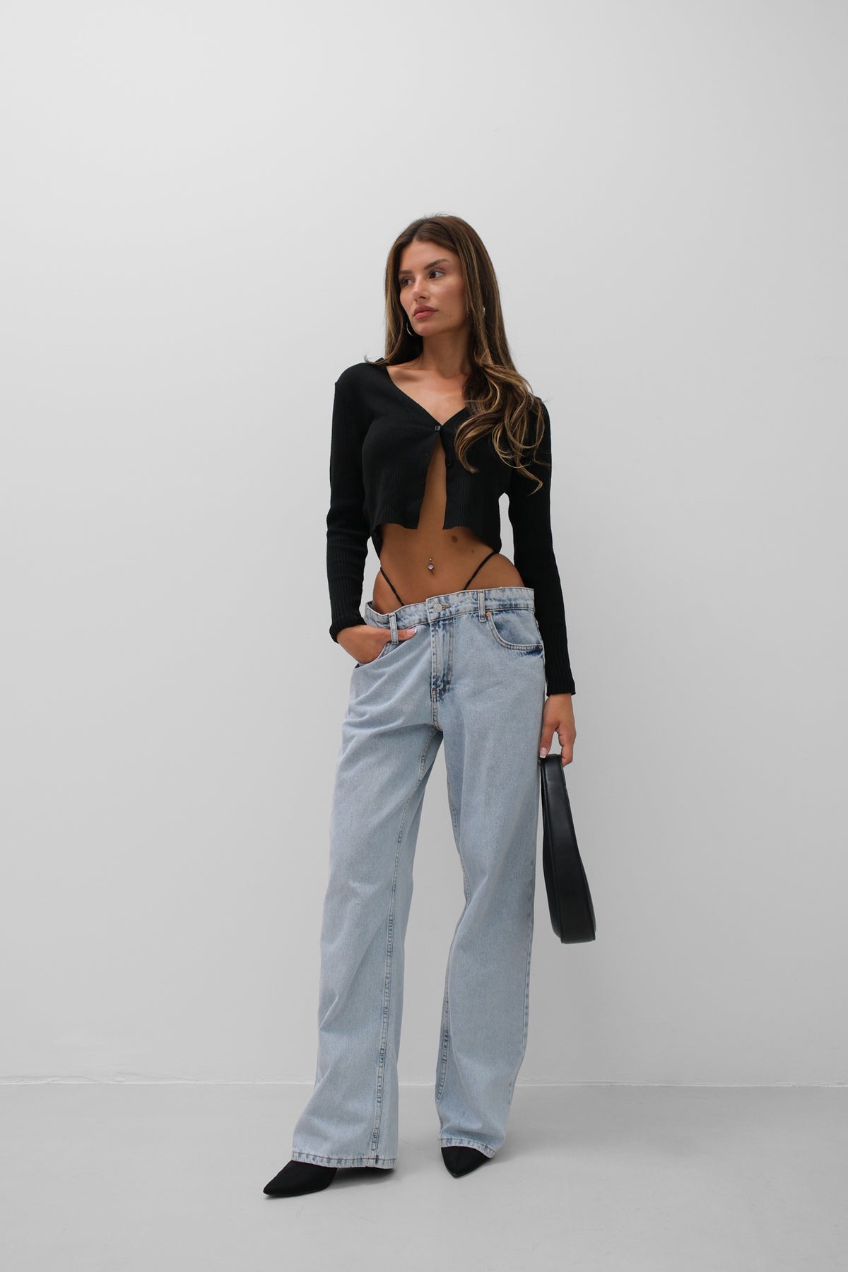 Double Buttoned, V Neck, Crop, Knitted Blouse