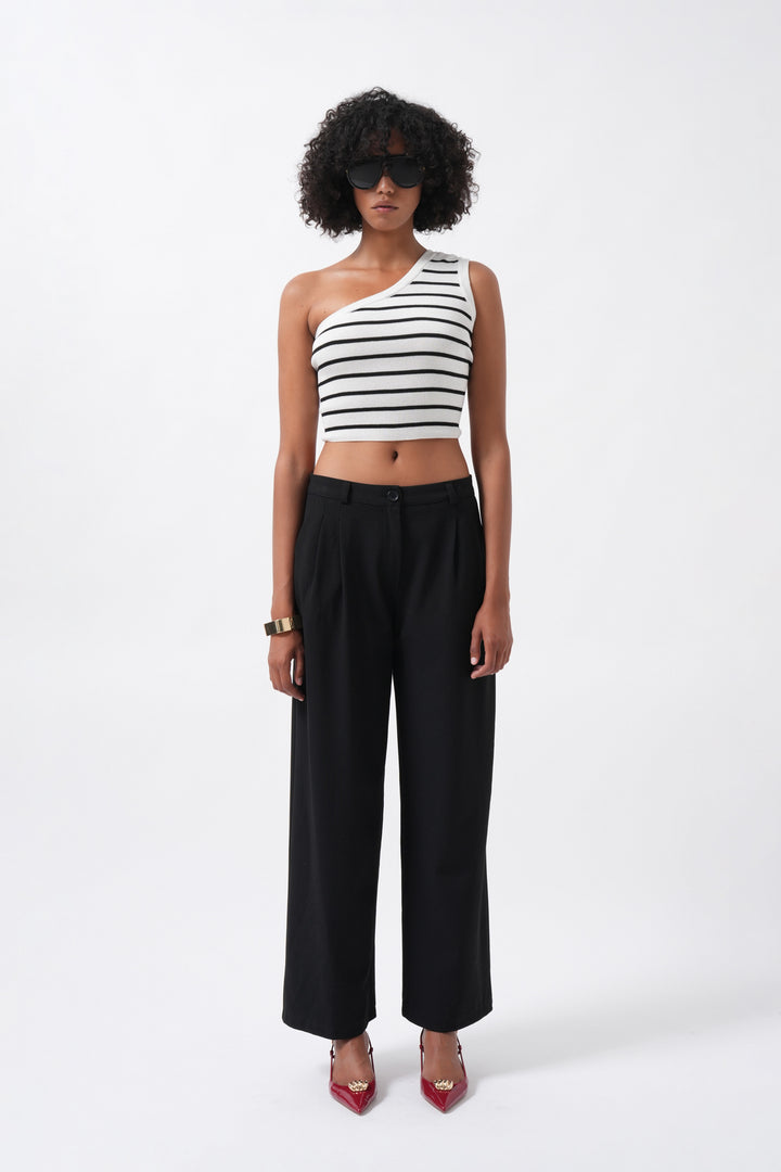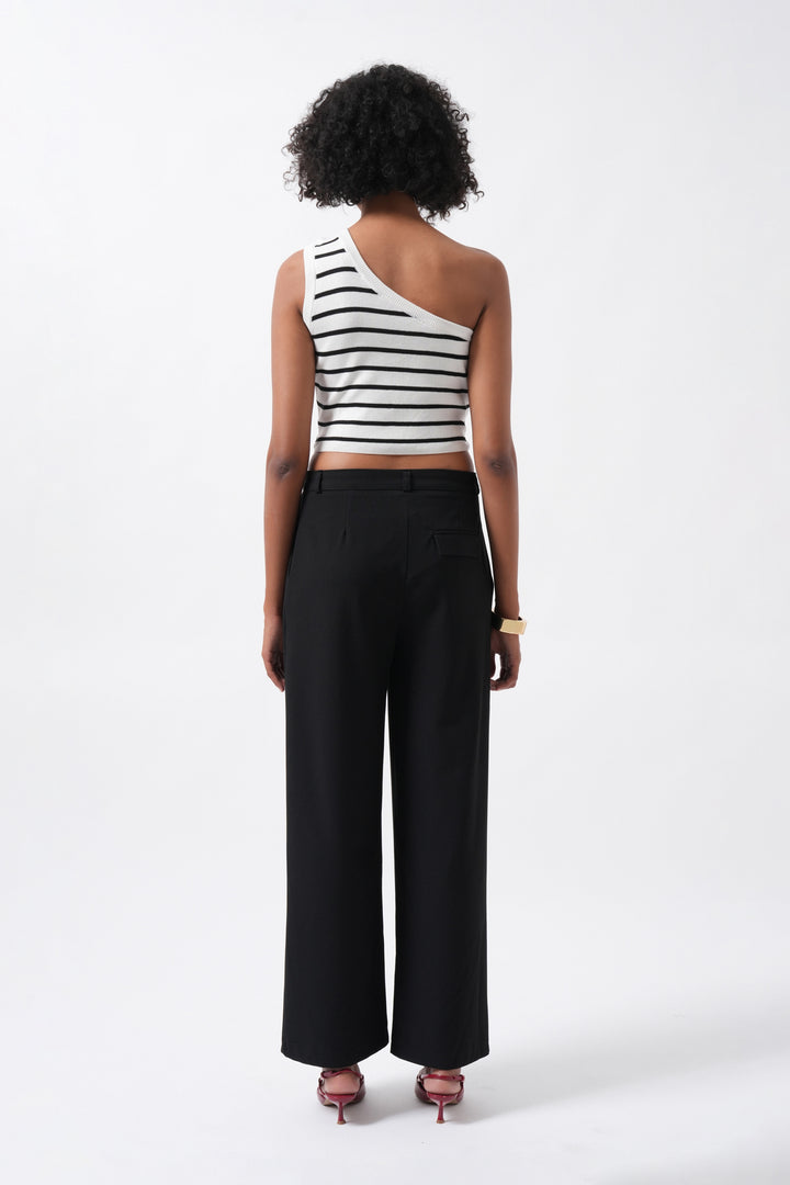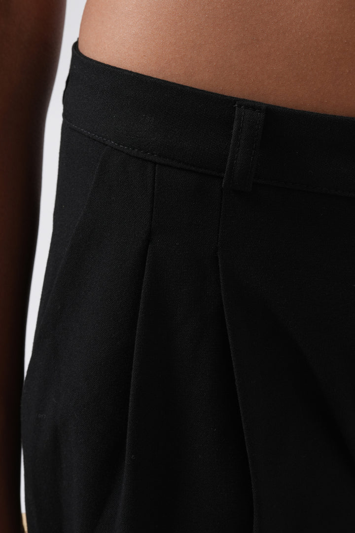 Double Pleated Wide Leg Black Trousers