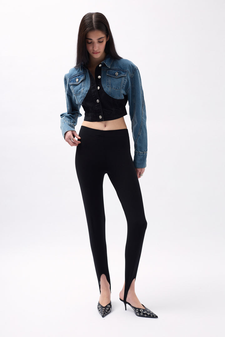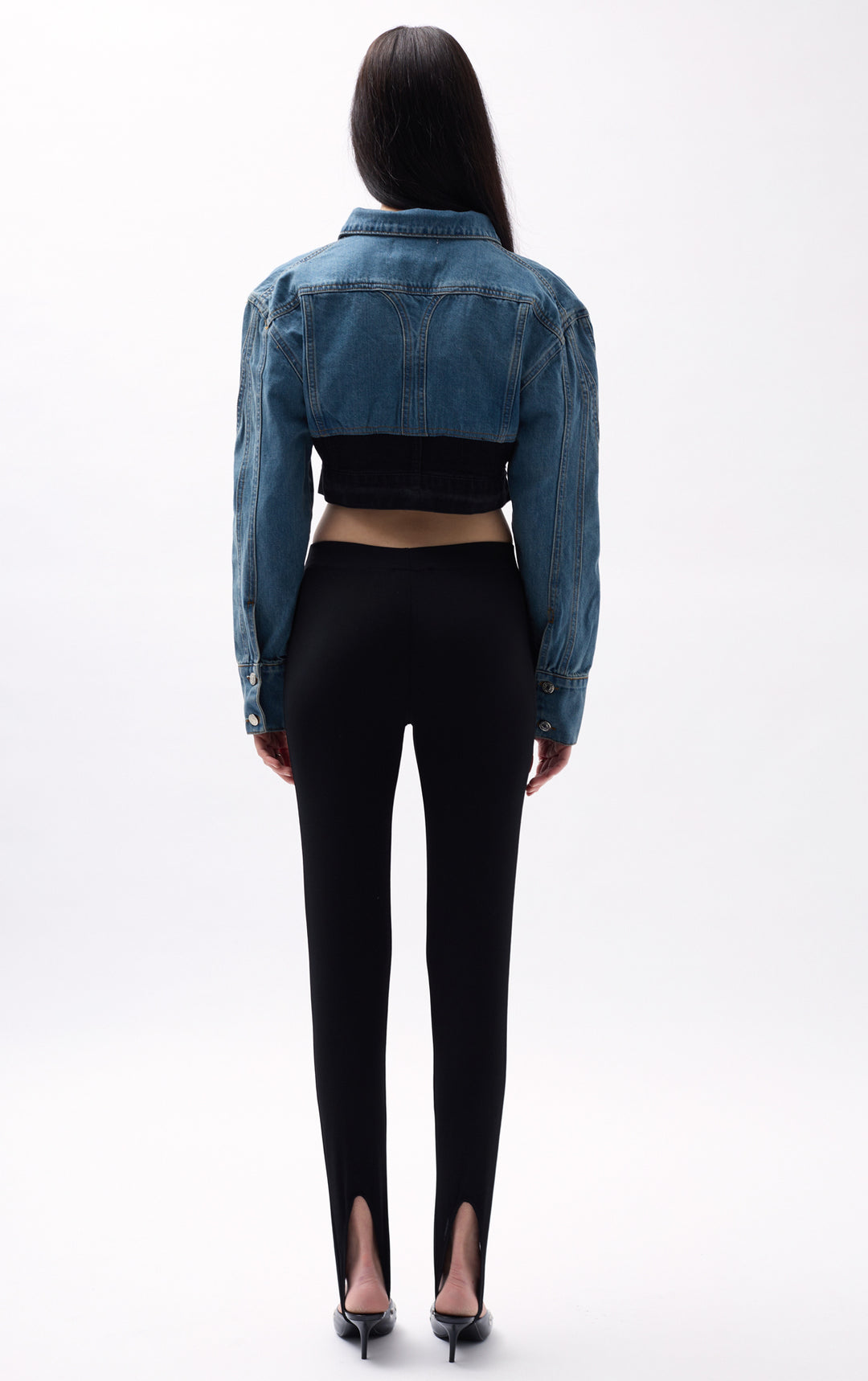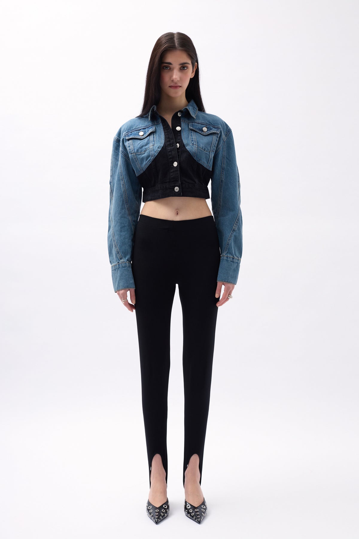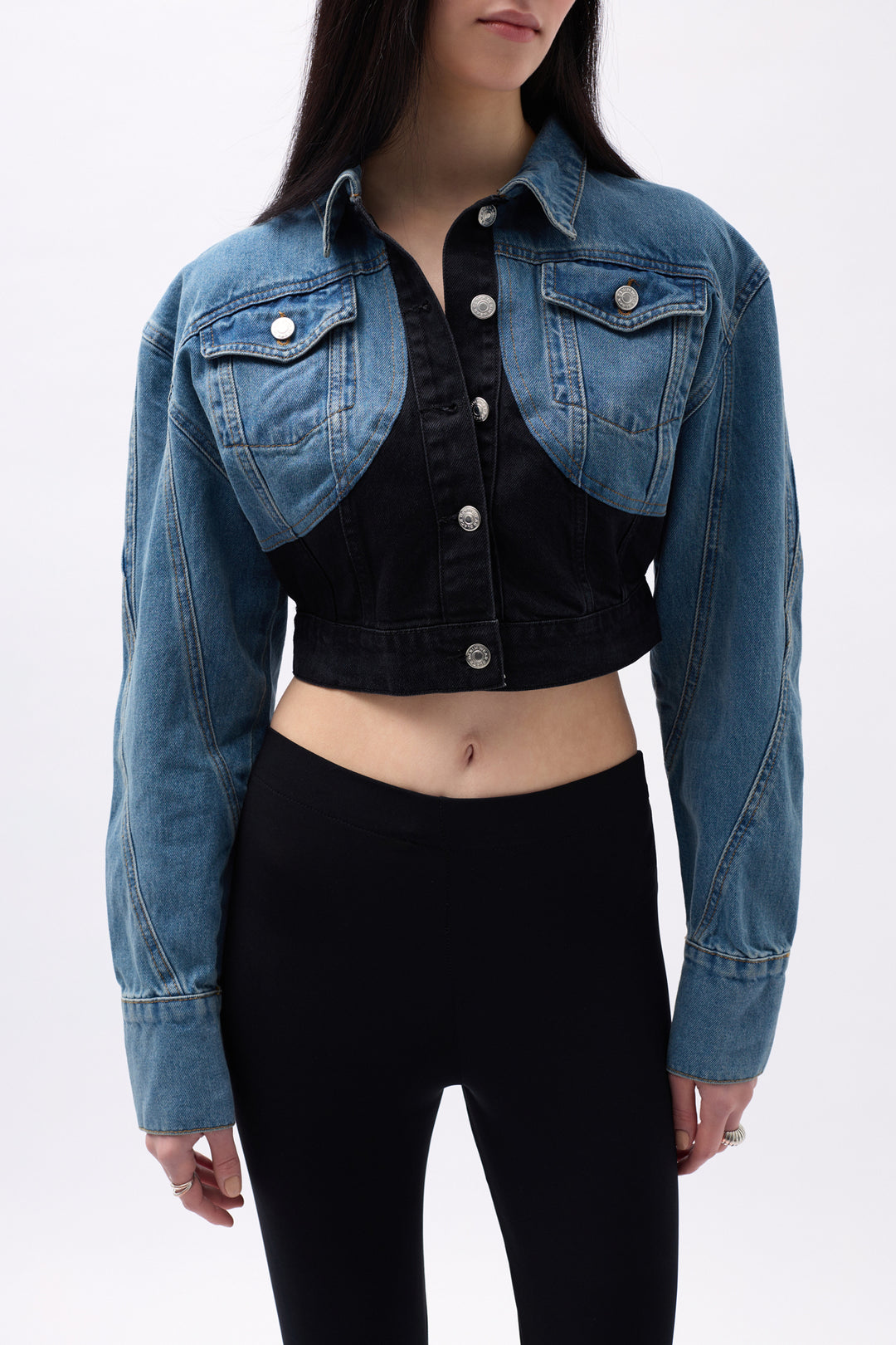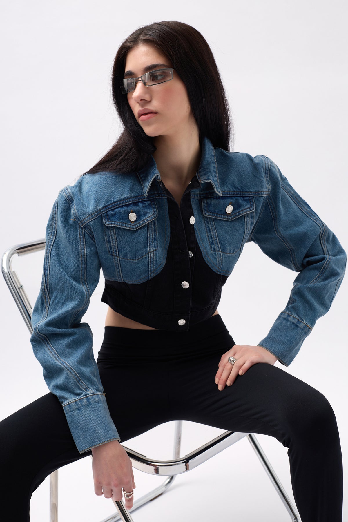 Two-Tone, Metal Button Detailed, Pocket Crop Denim Jacket