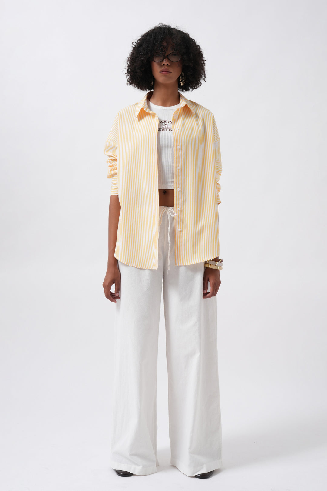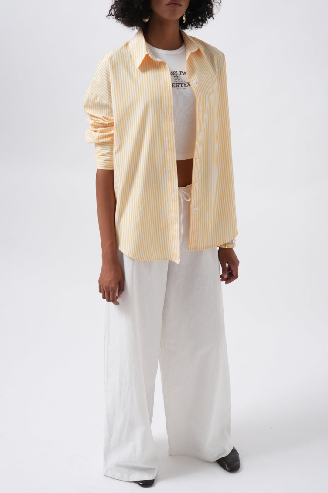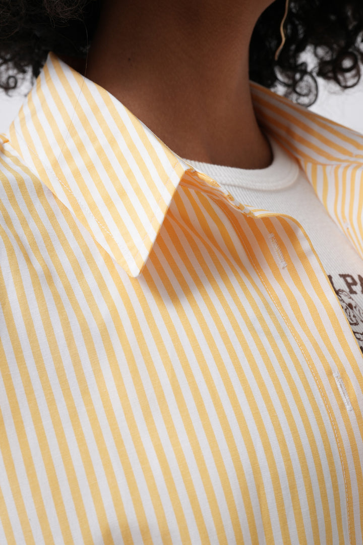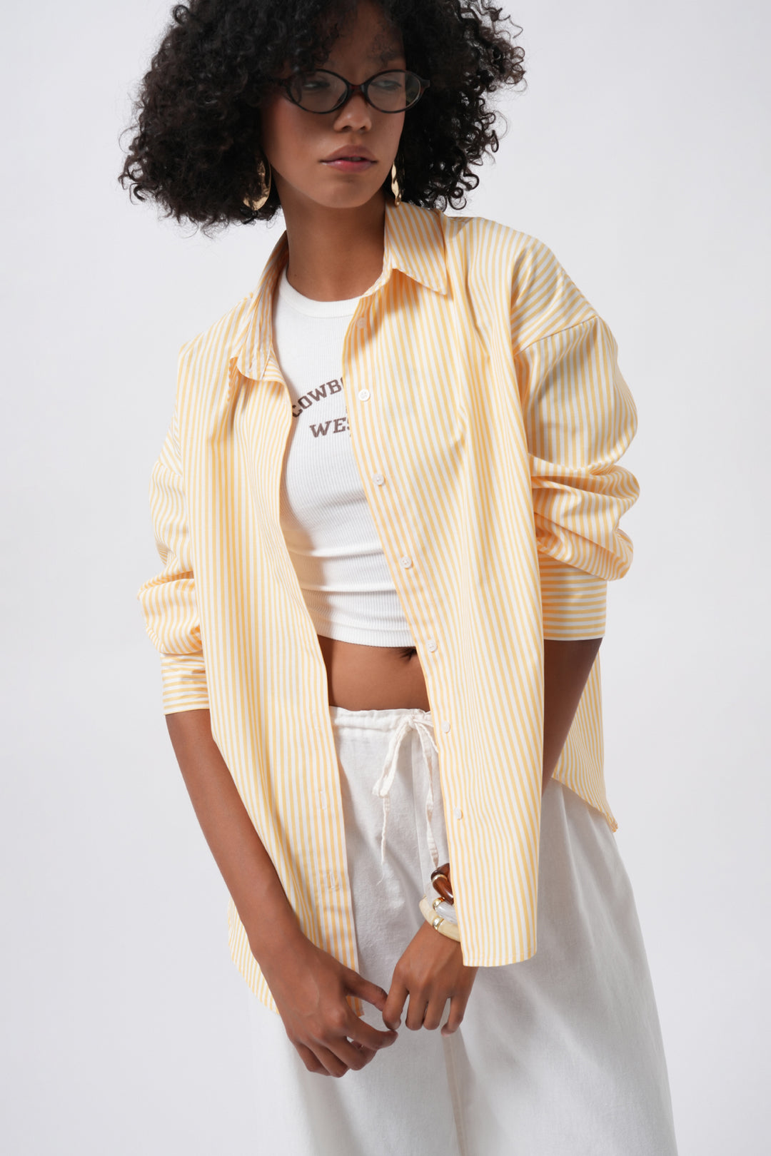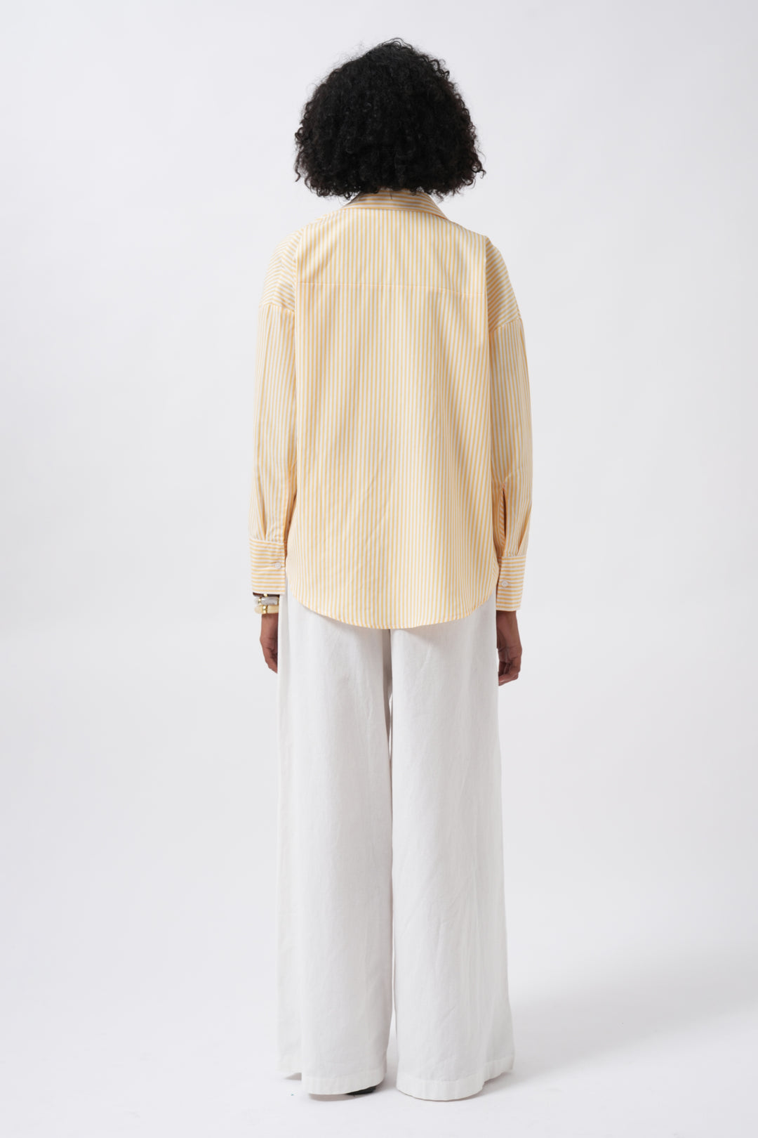 Shirt with Striped Weaving, Cotton Fabric, No Pocket, Sleeve Slit, Ten Buttons, Cuffs