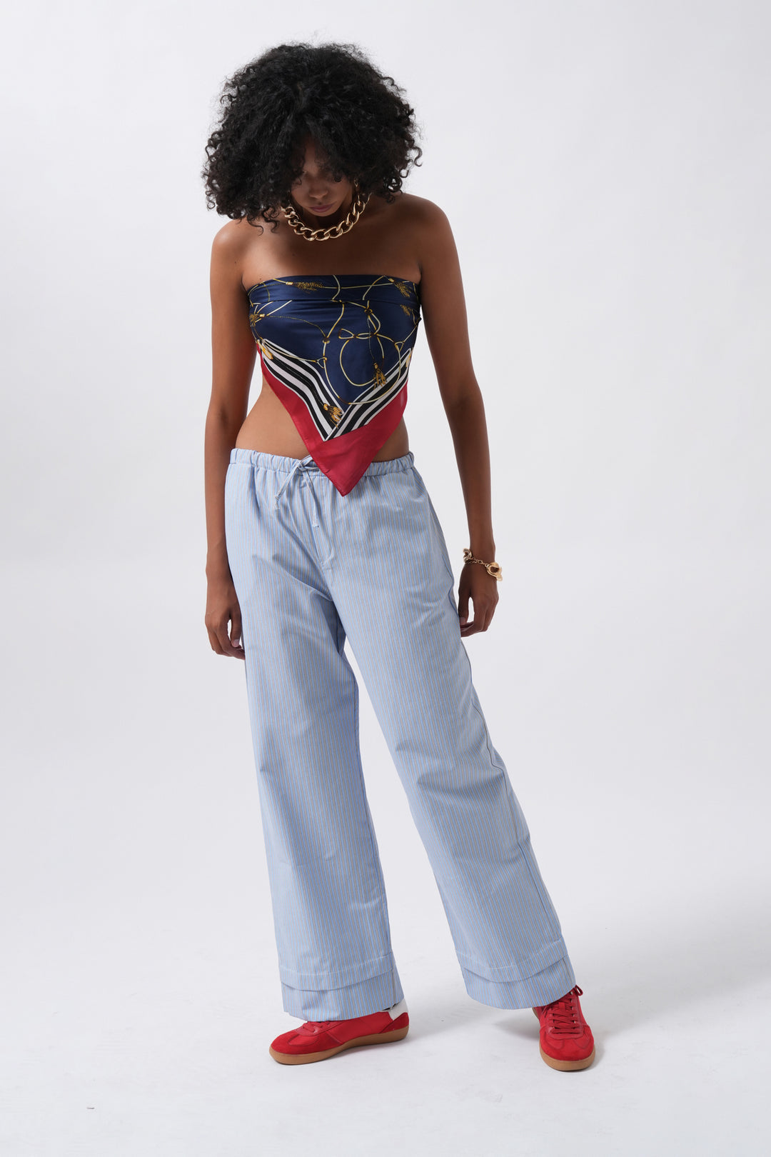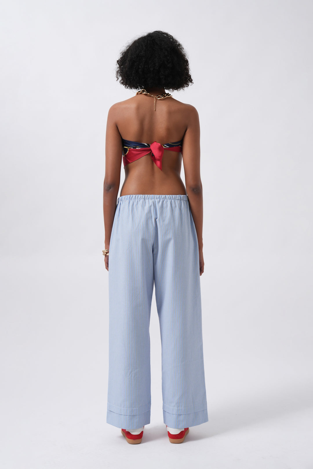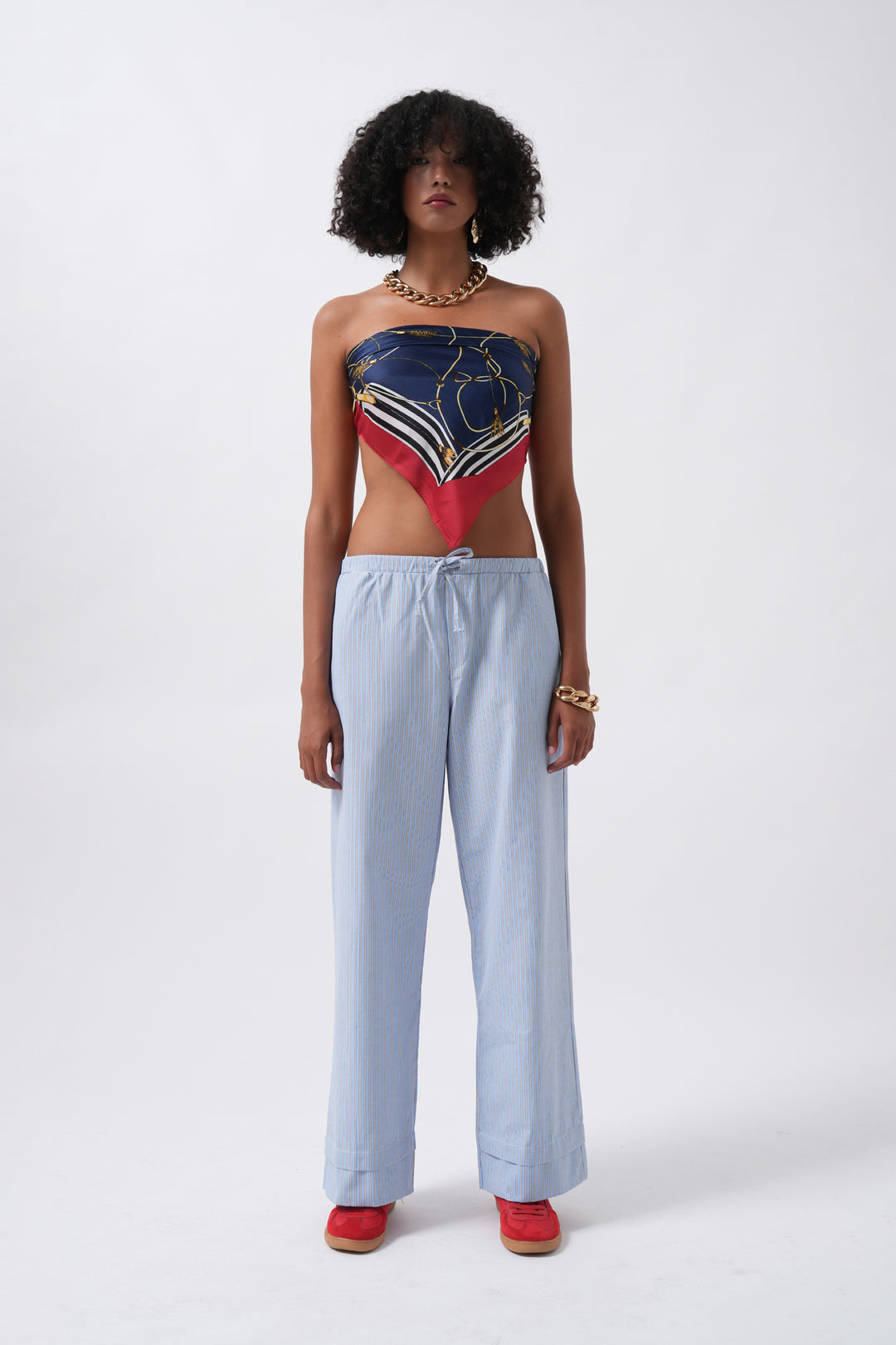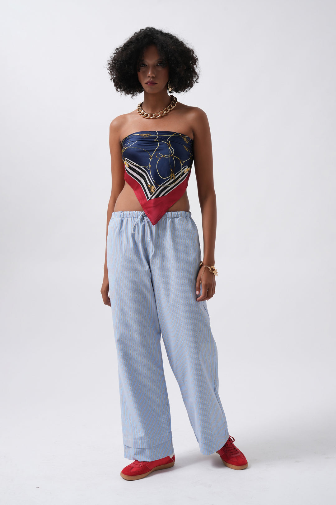 Cotton Fabric, Lace-Up, Elastic Waist, Double Leg, Double Pocket Trousers