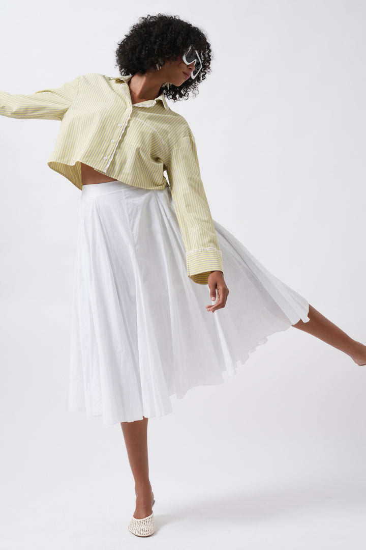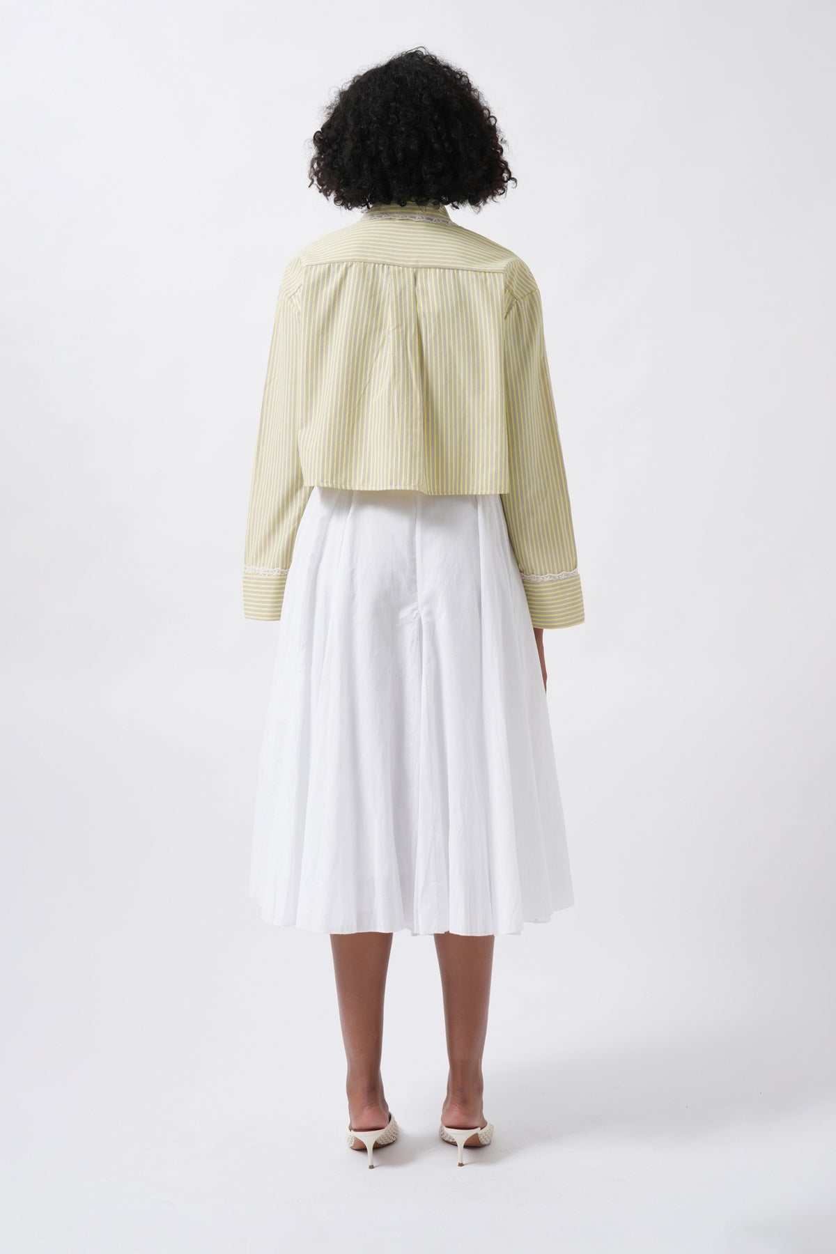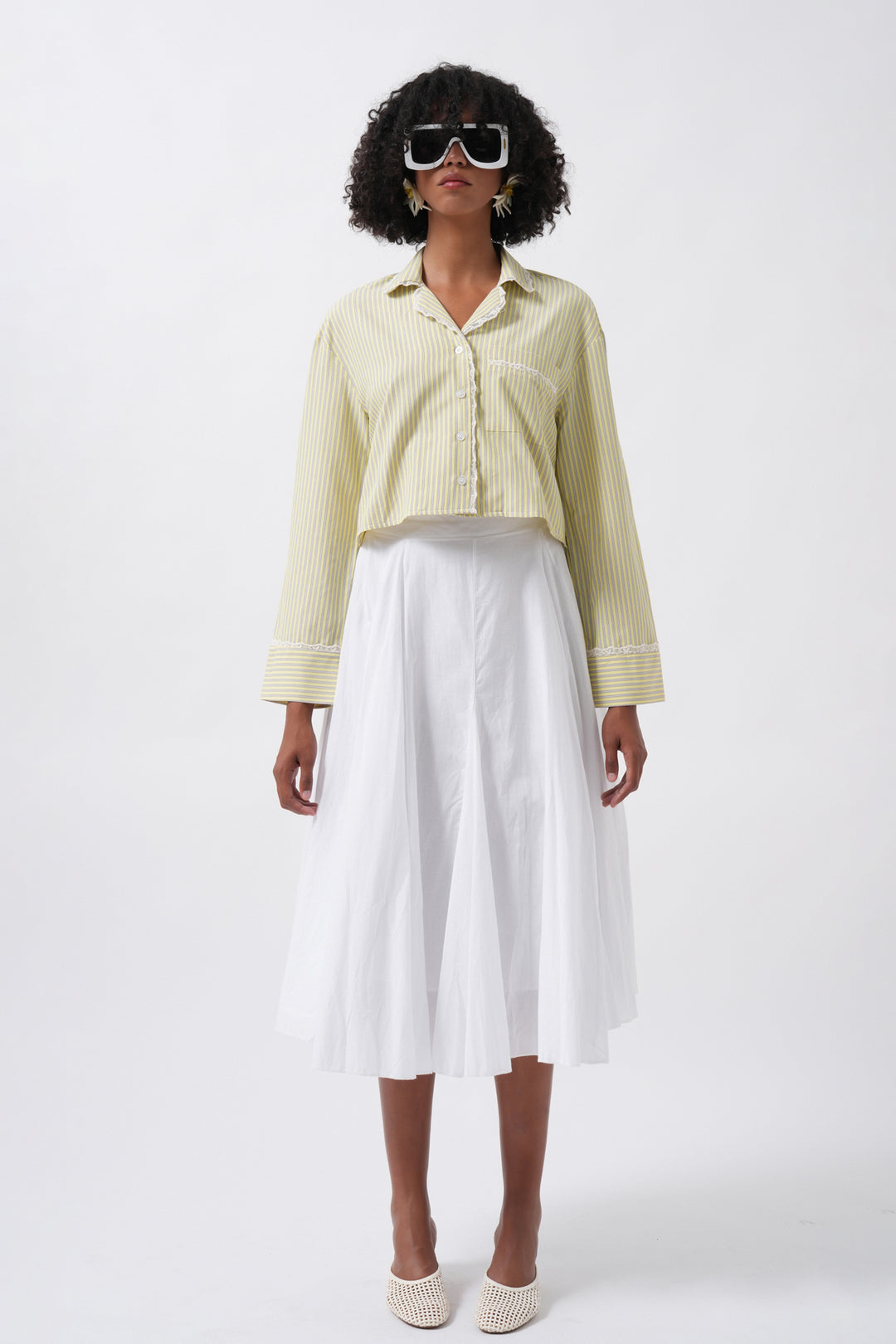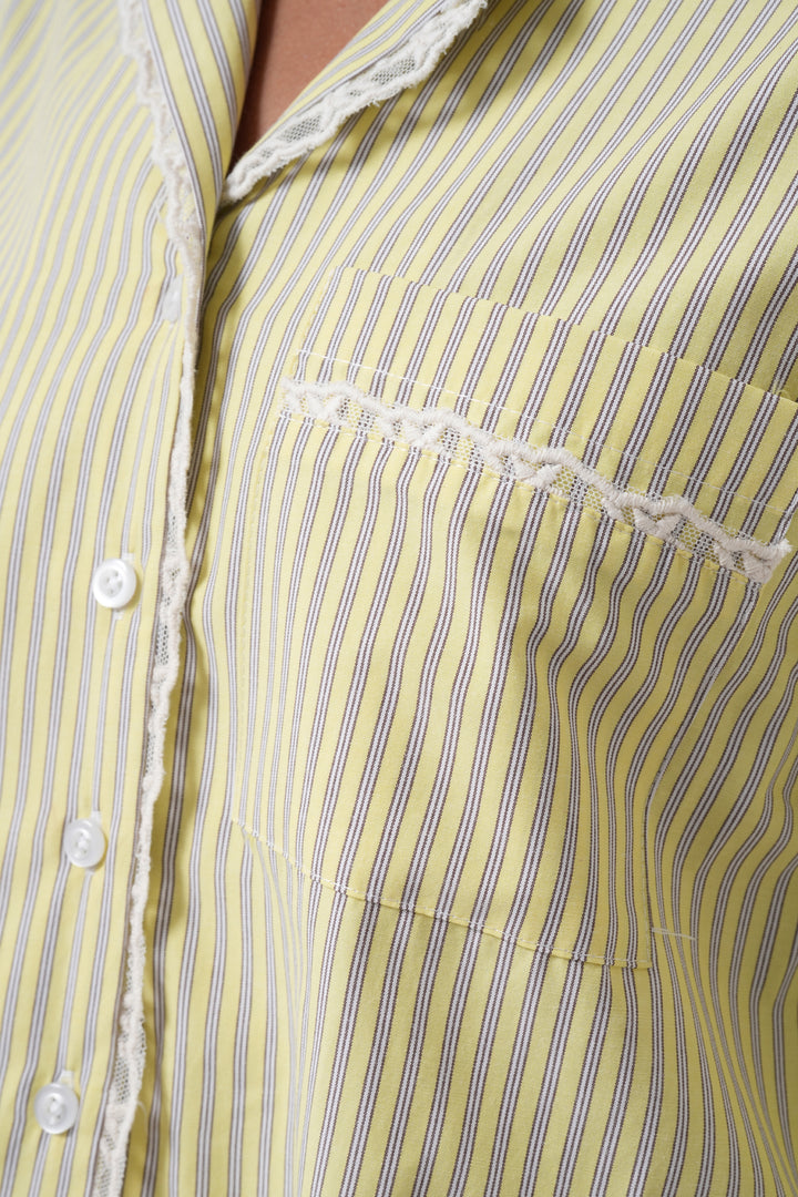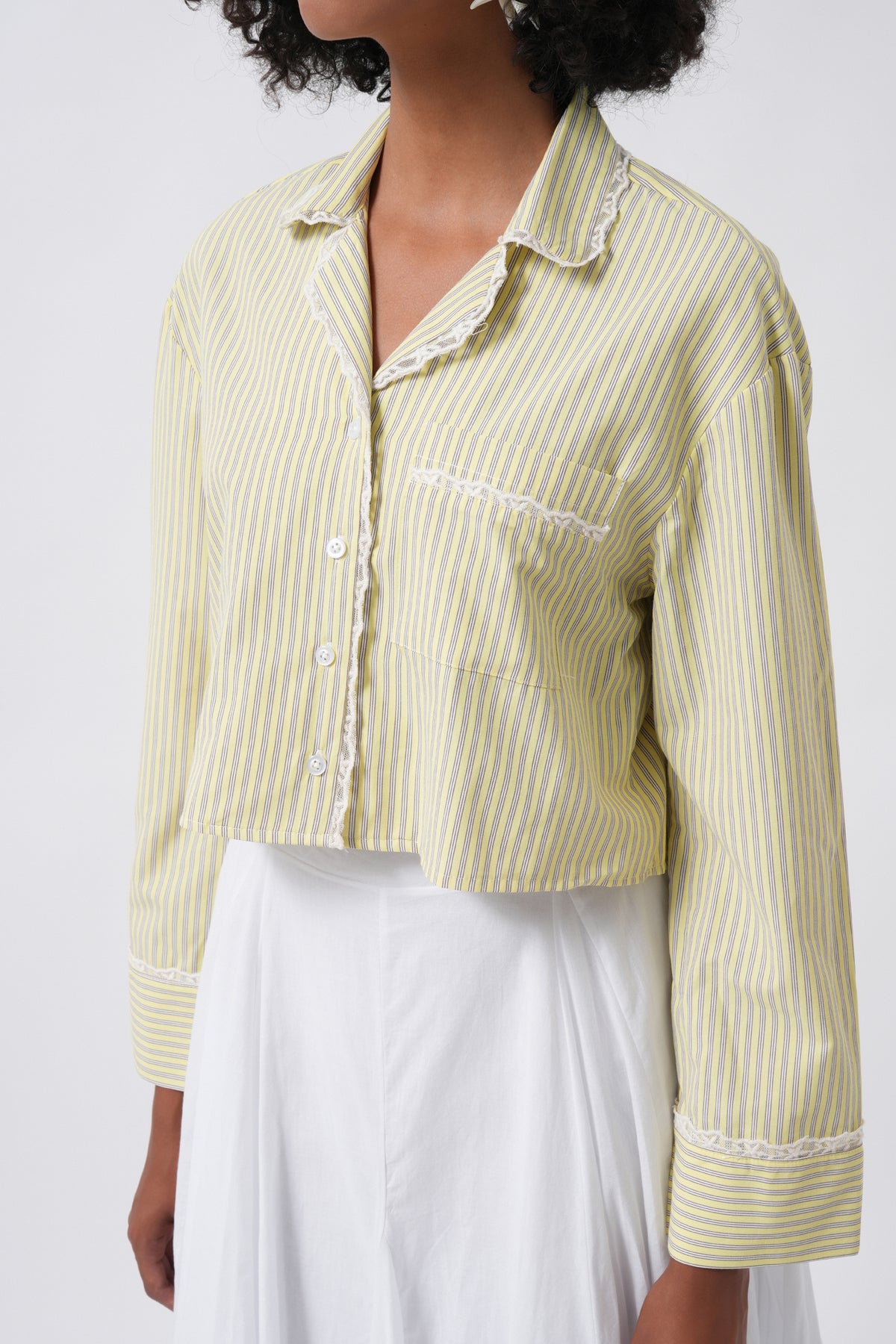 Lace Embroidered, Front Pocket, Cotton Fabric Crop Shirt