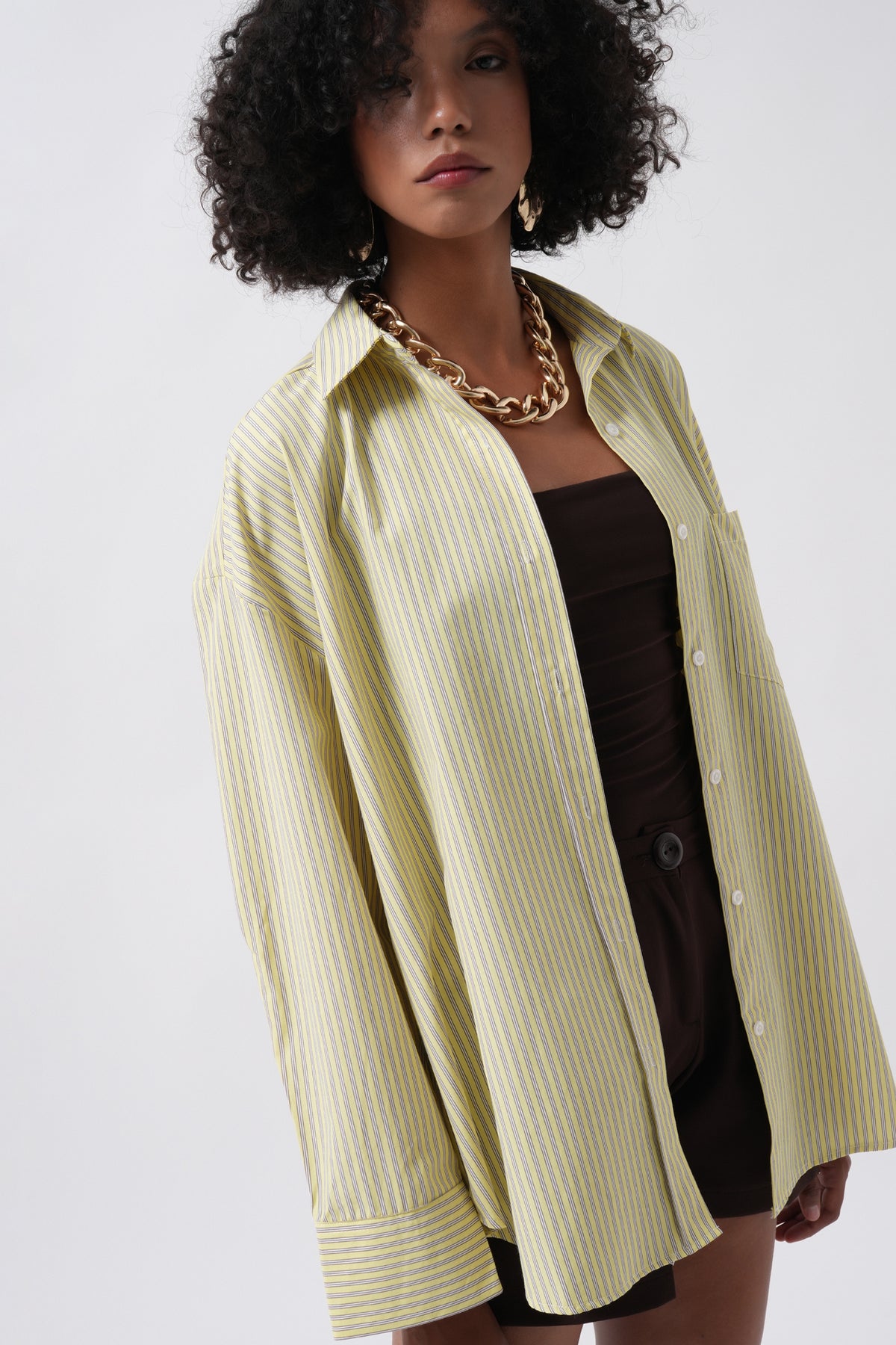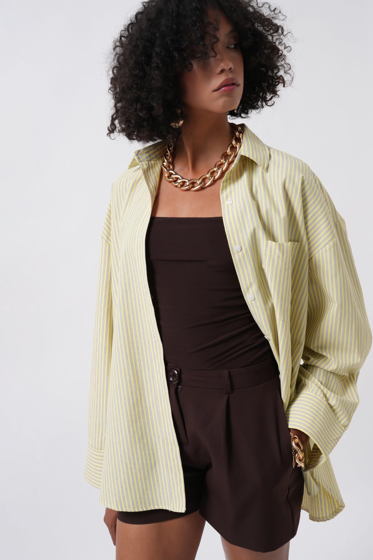 Striped Pocket Detail Yellow Shirt