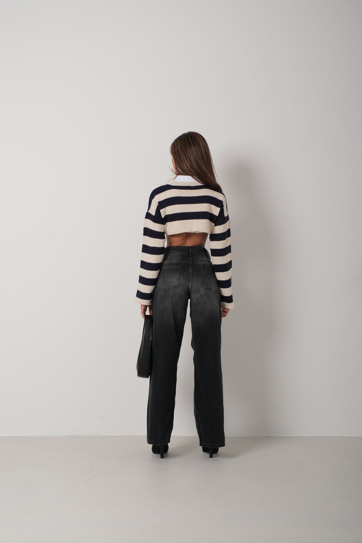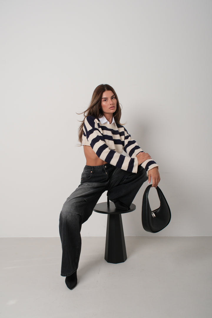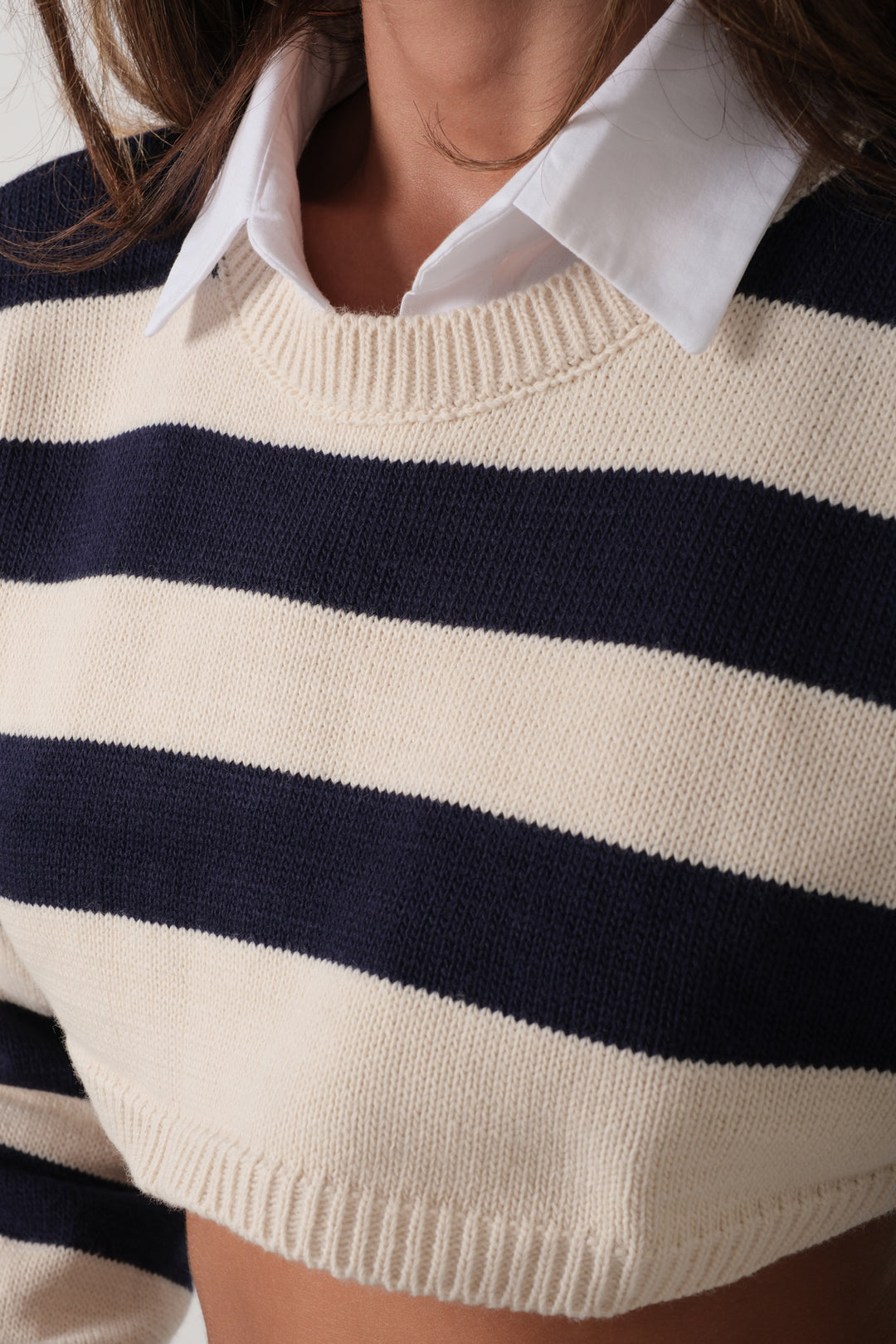 Horizontal Striped, Long Sleeve, Ultra Crop, Sweater