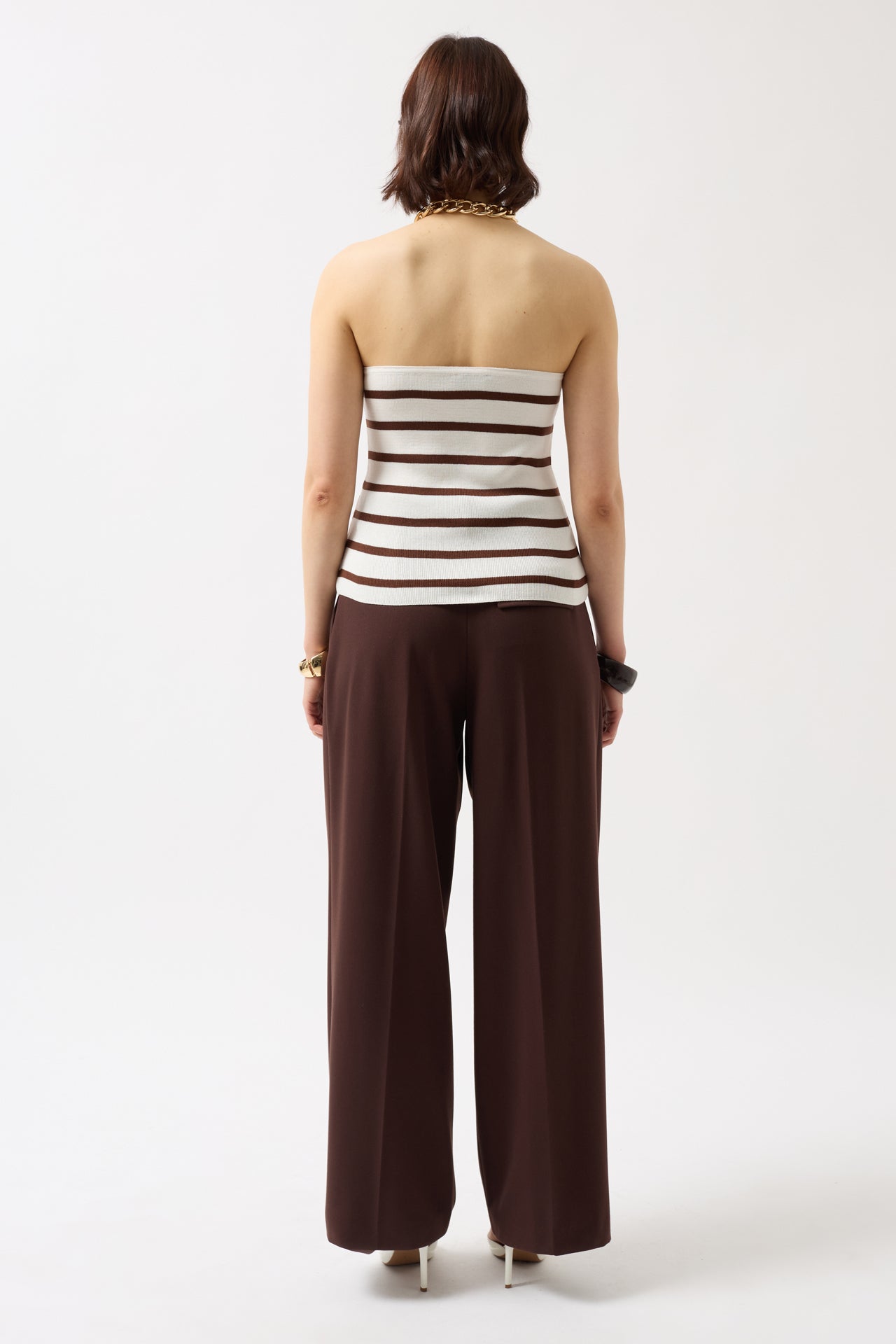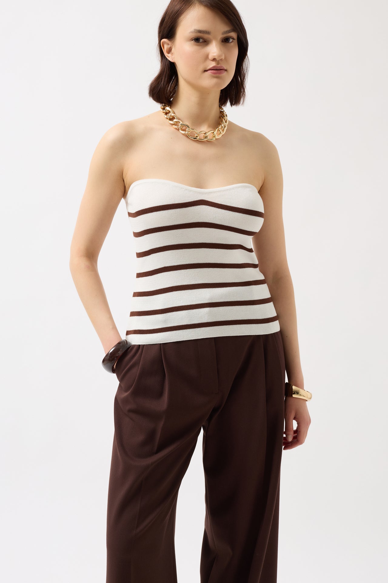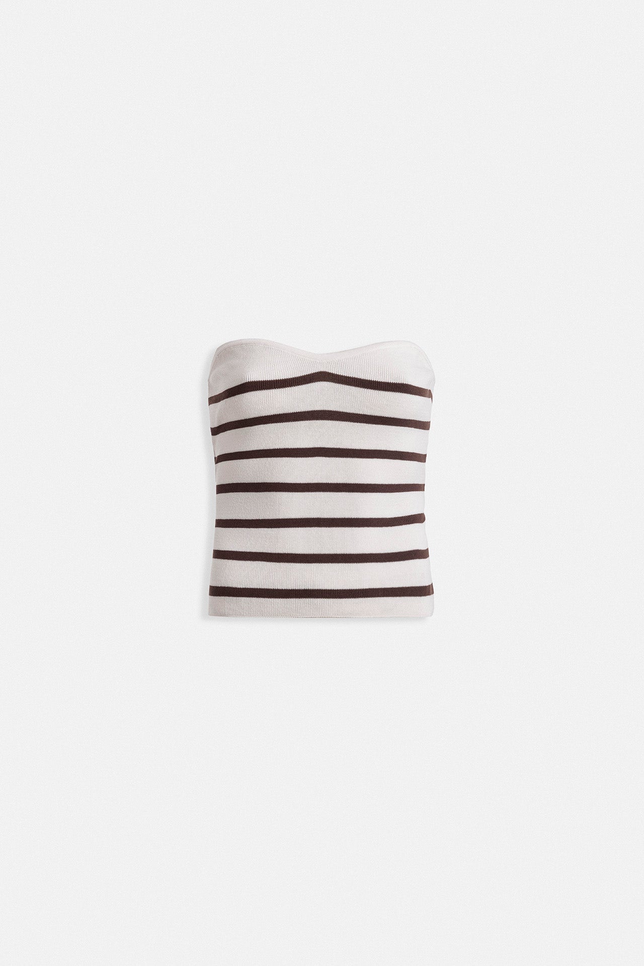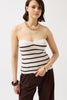Striped Strapless Textured White Brown Blouse