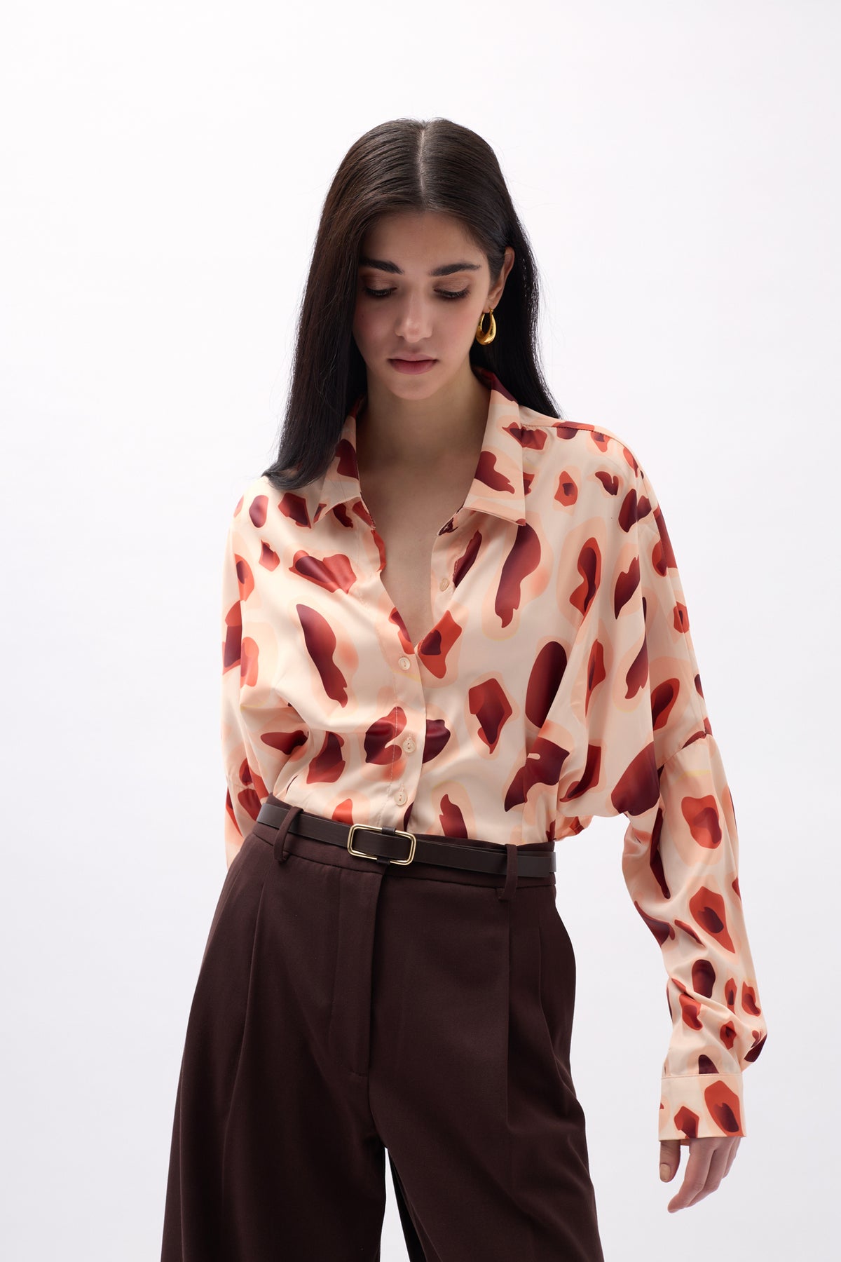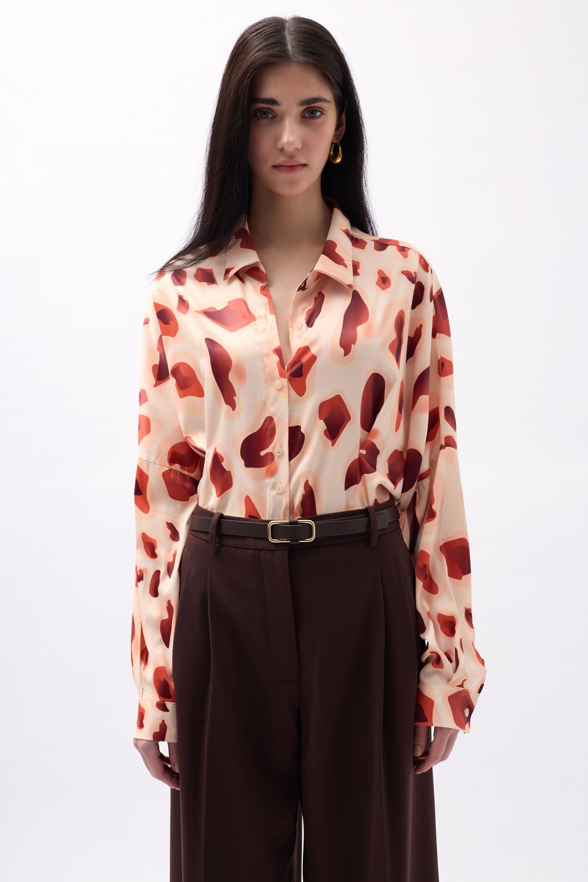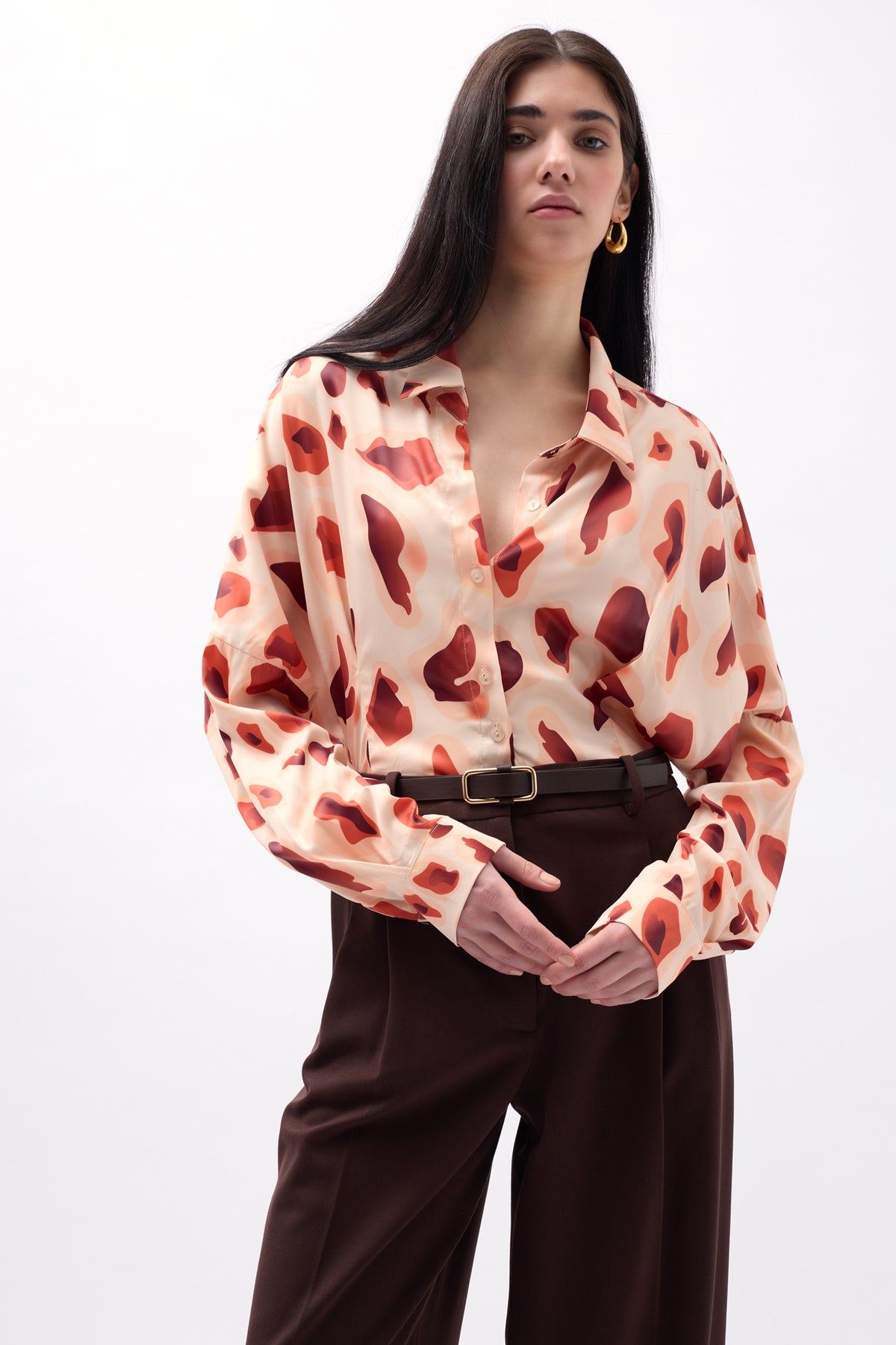 Patterned, Crop, Cuff Detailed, Long Sleeve, Buttoned, Shirt