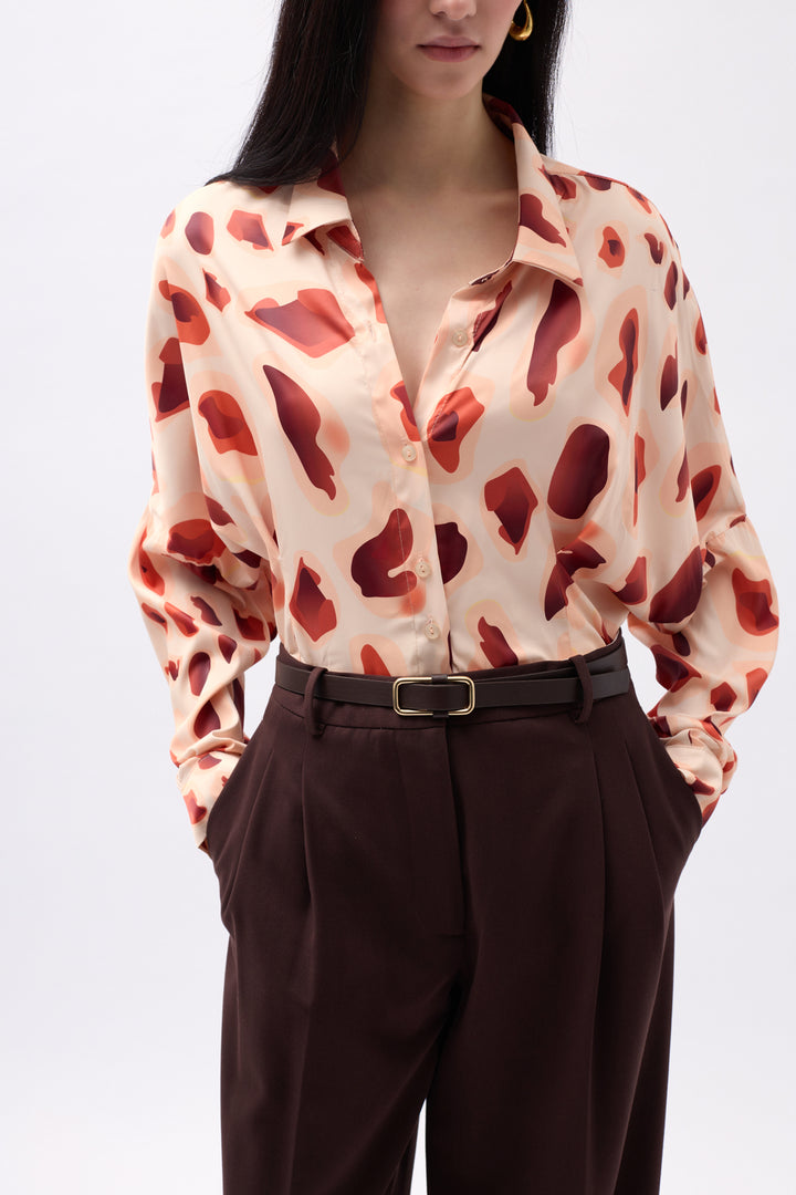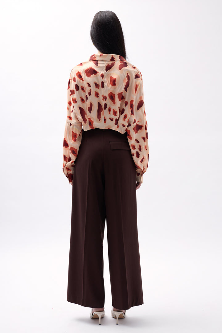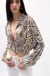 Patterned Beige Crop Shirt