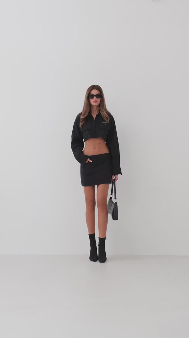 Button Detail Black Crop Jacket