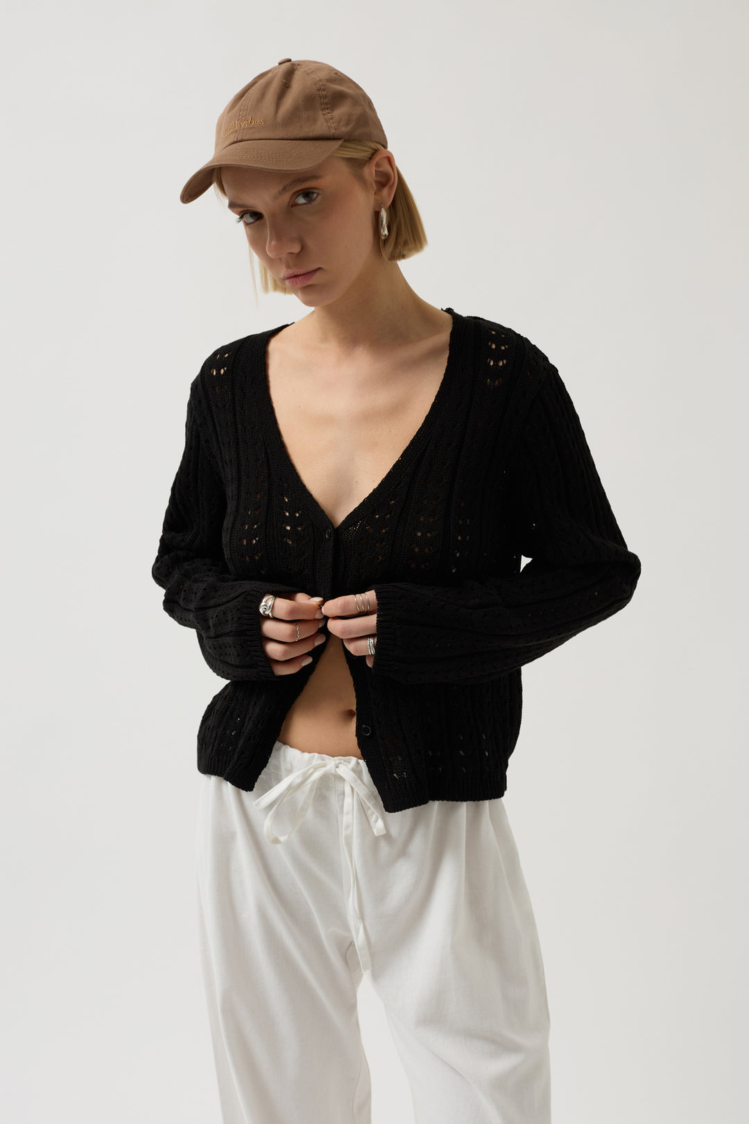 Buttoned, Knitwear, Long Sleeve, V Neck, Casual Knitwear Cardigan