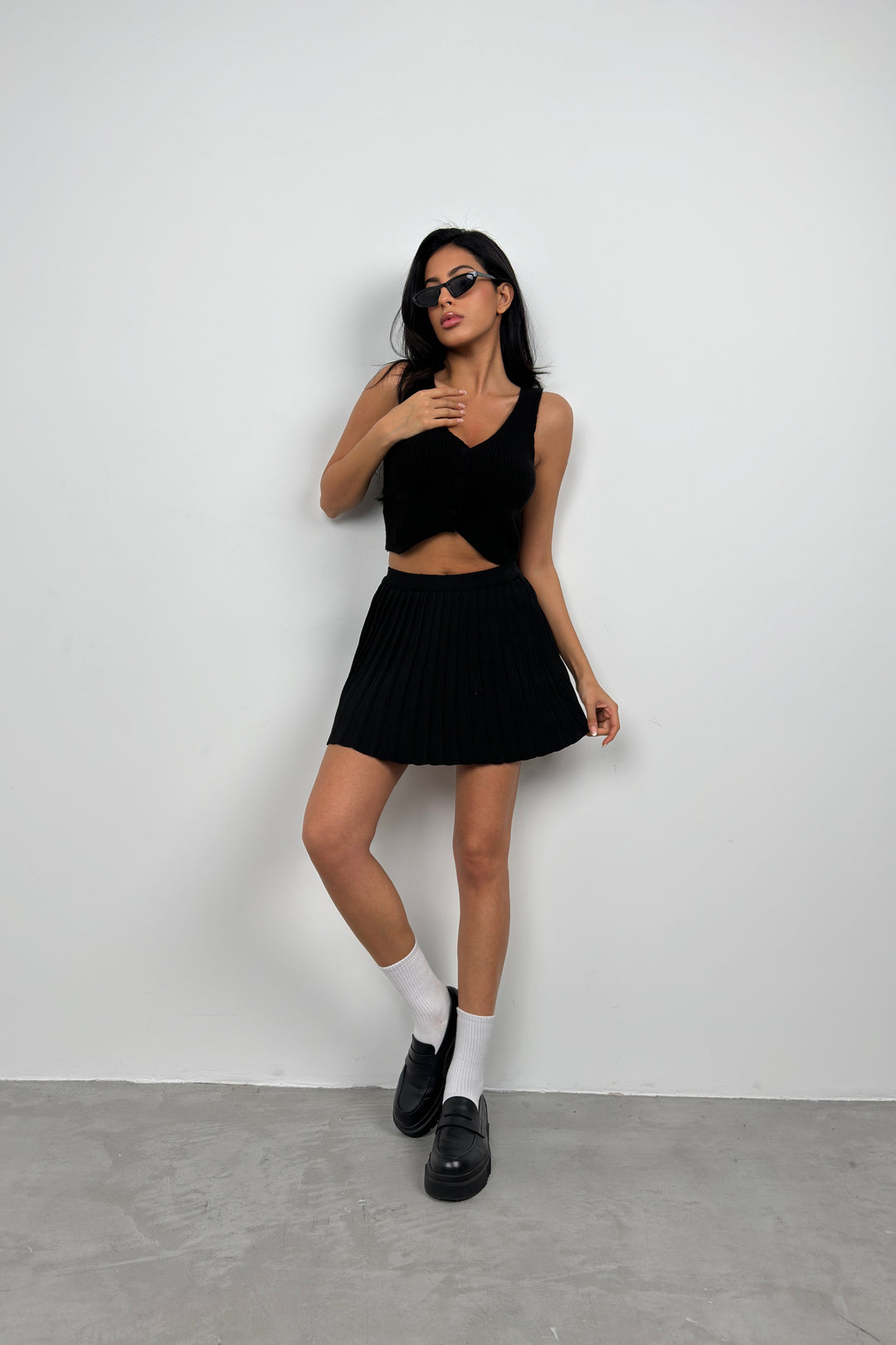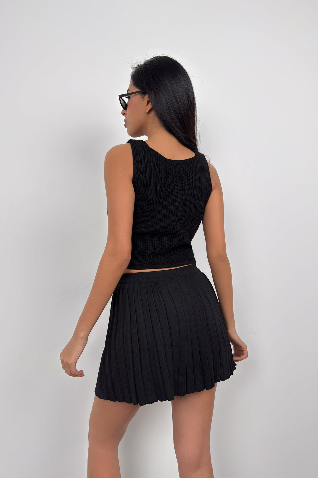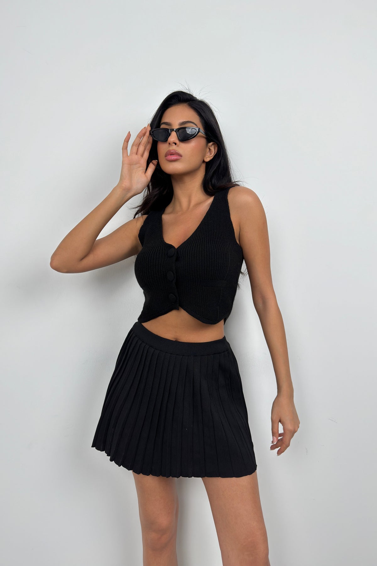 Button Detail Black Knit Vest