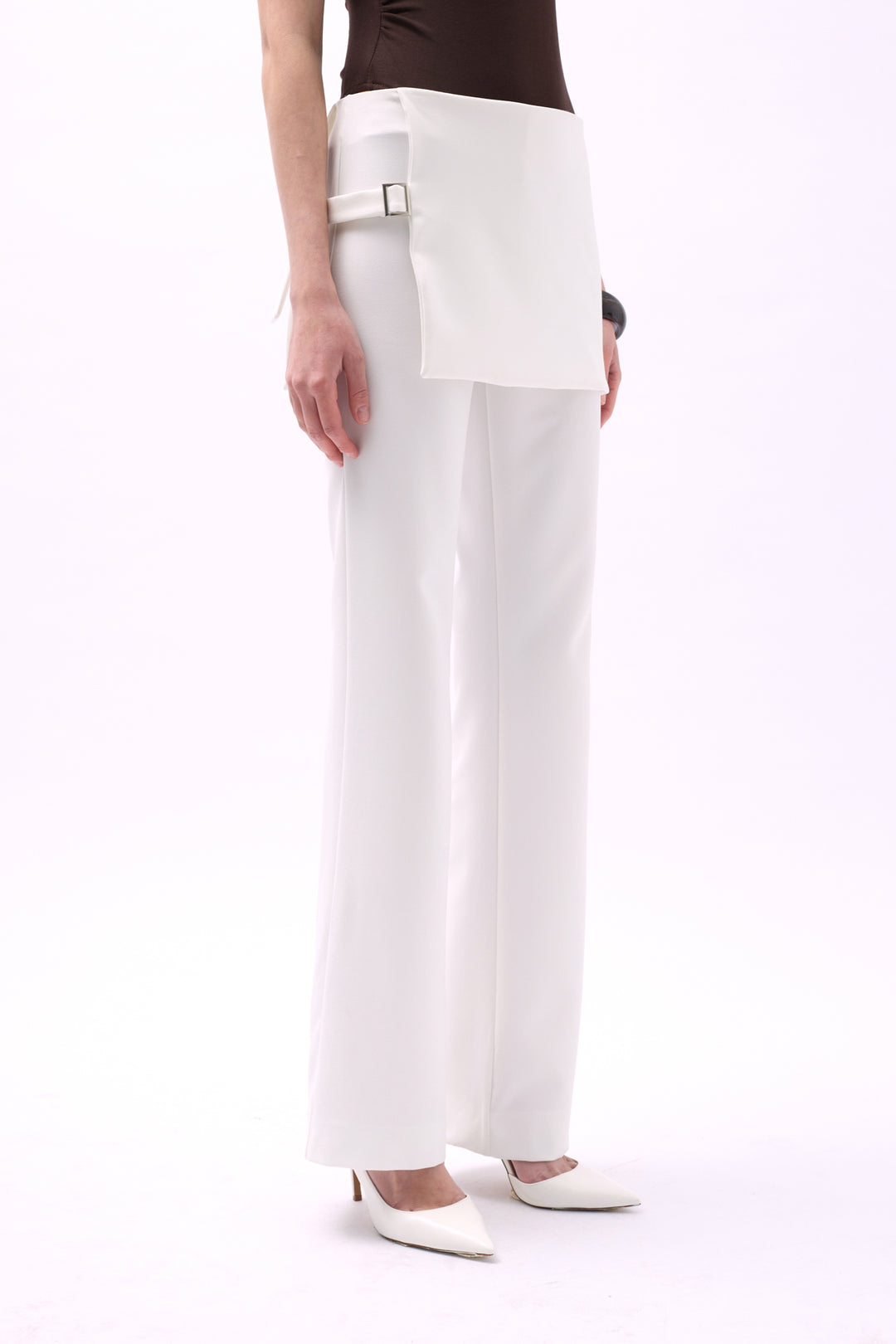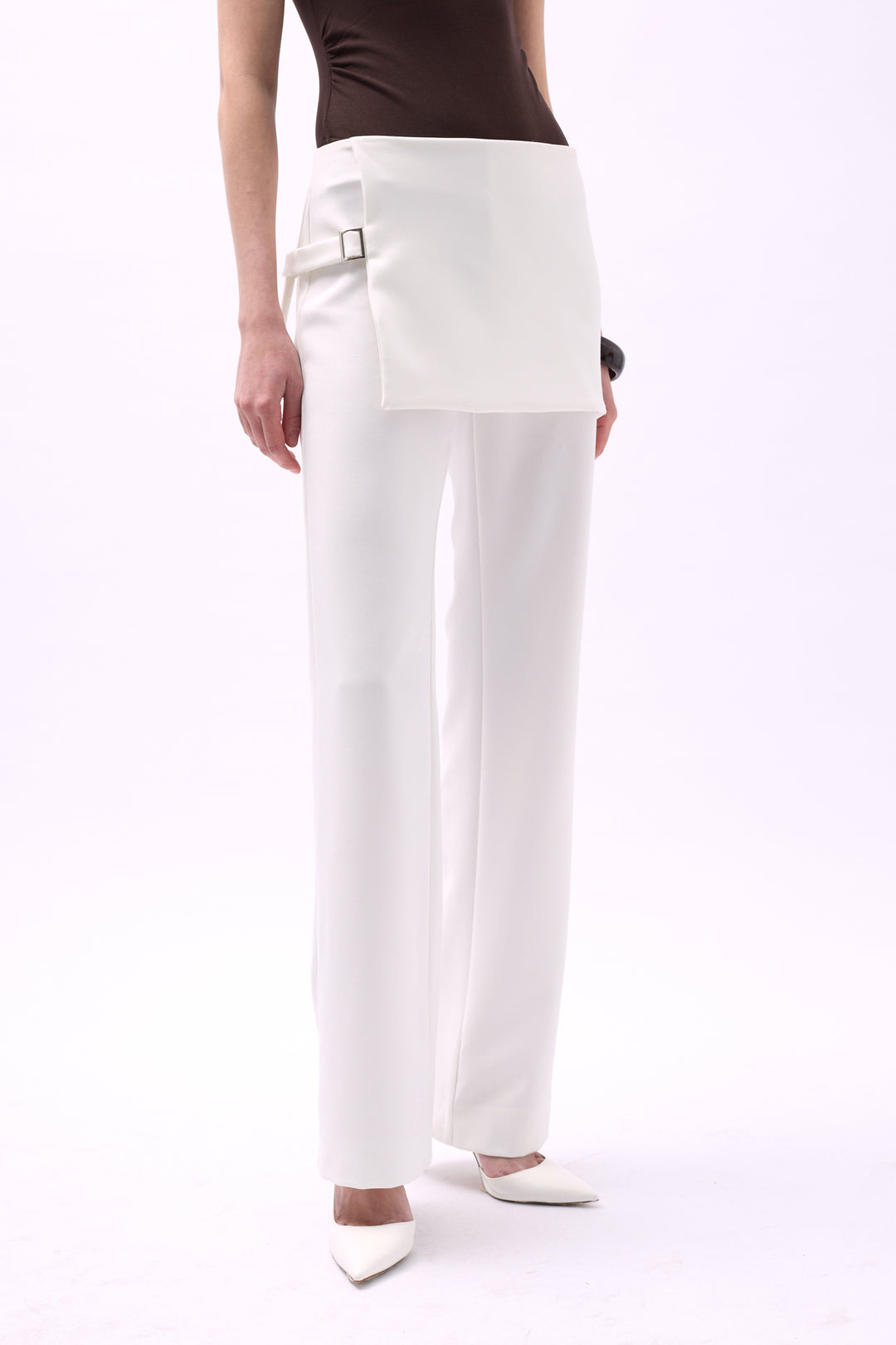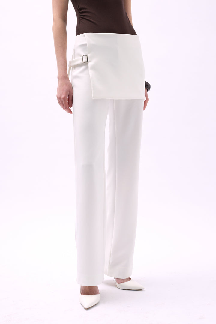 Side Zipper, Belt Buckle Accessory, Skirt-Looking Trousers in Front and Back