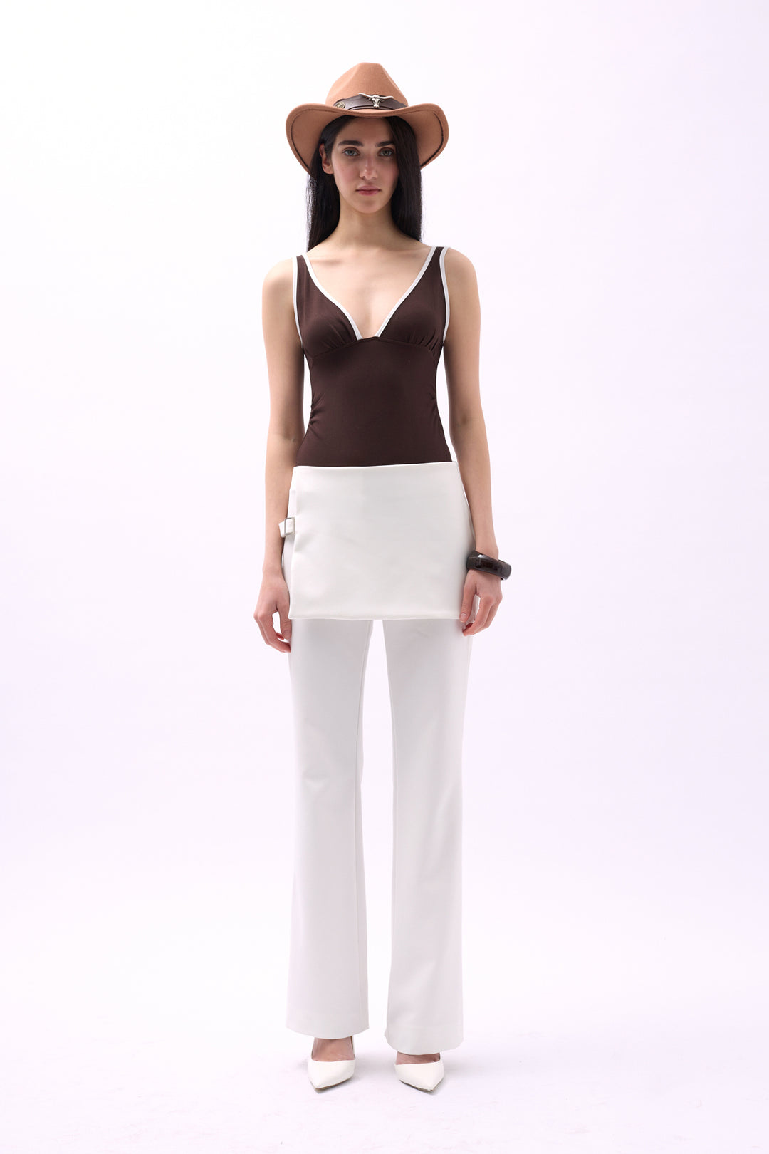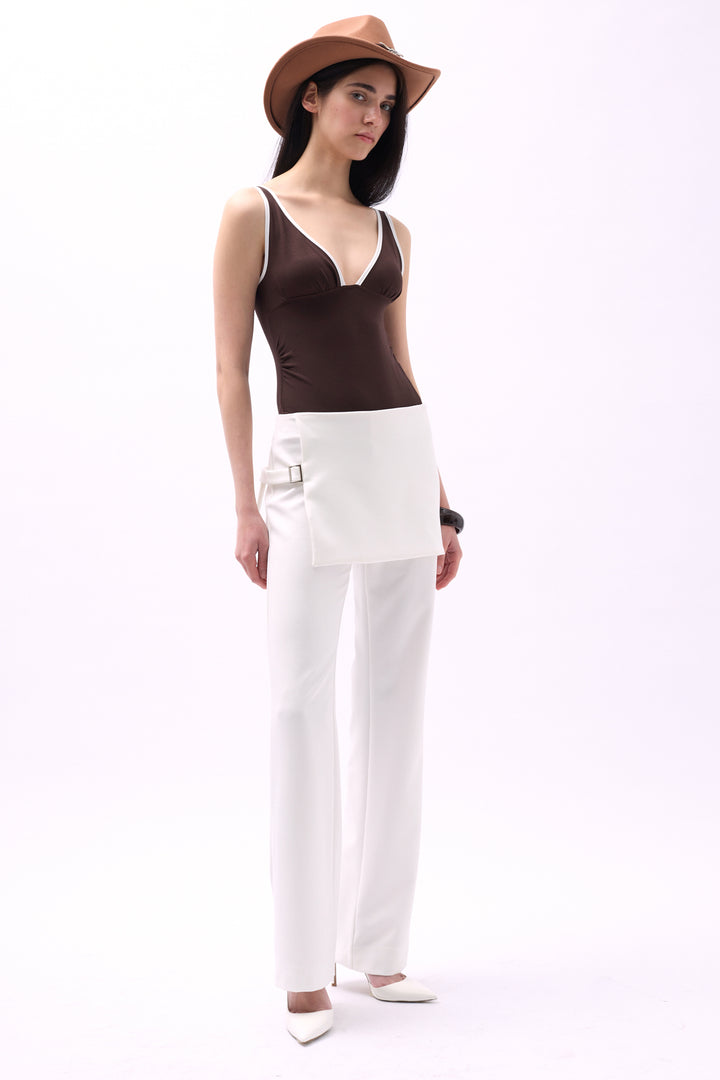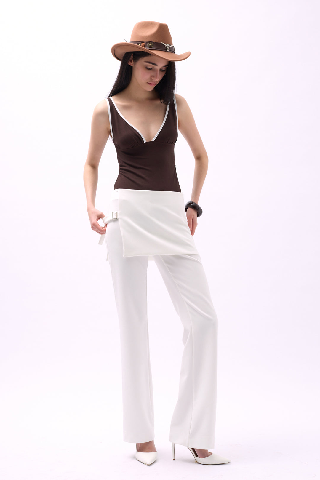 Side Zipper, Belt Buckle Accessory, Skirt-Looking Trousers in Front and Back