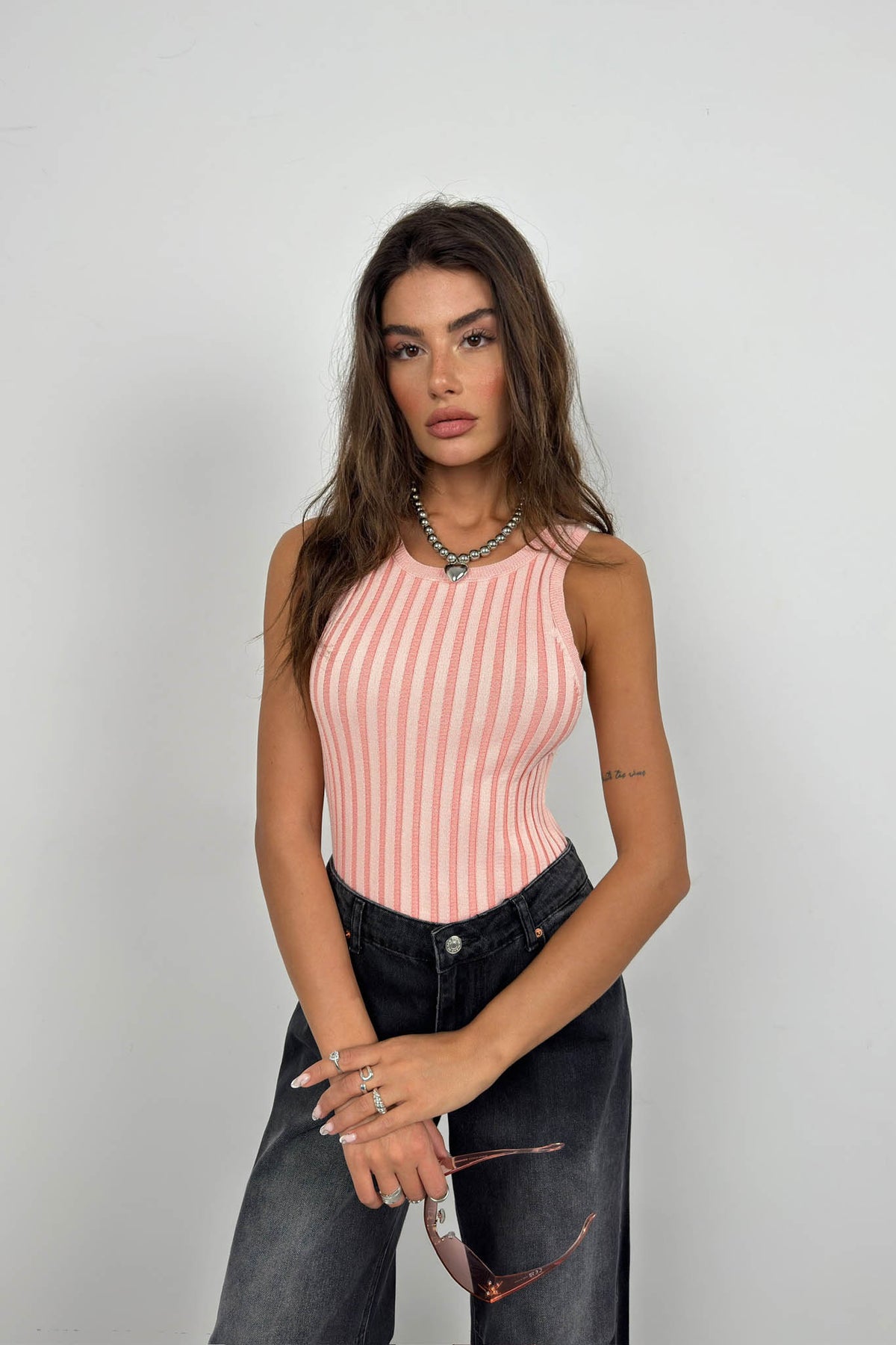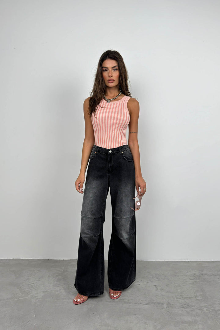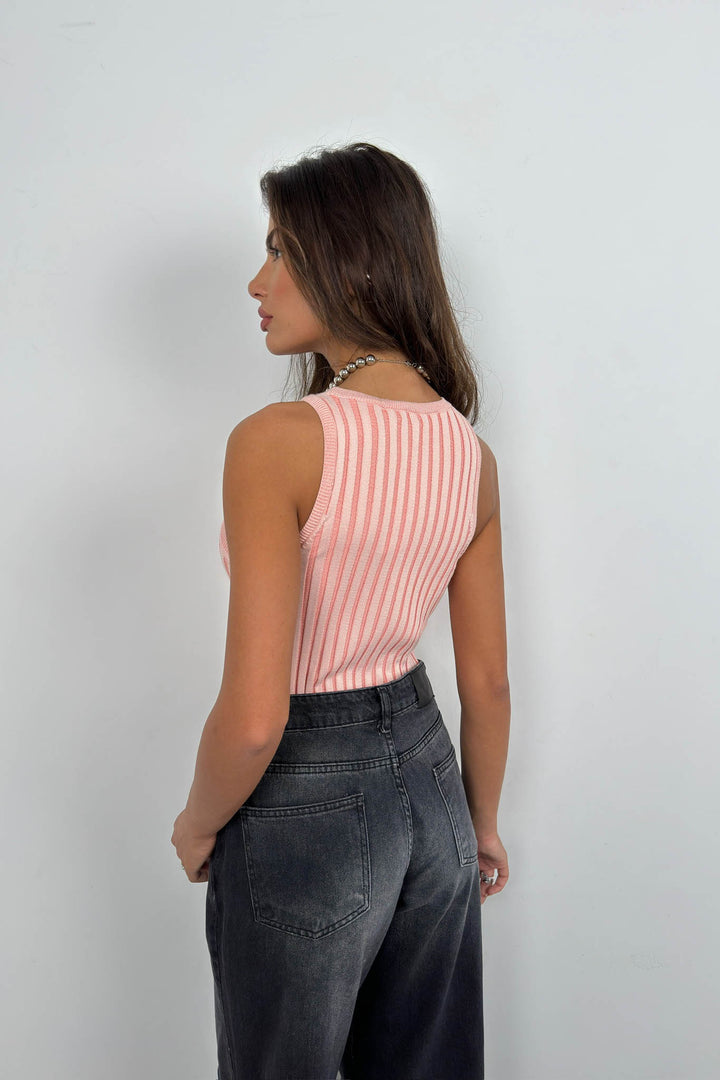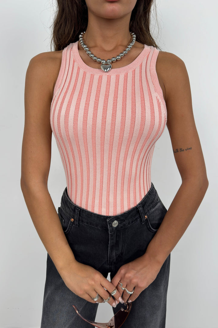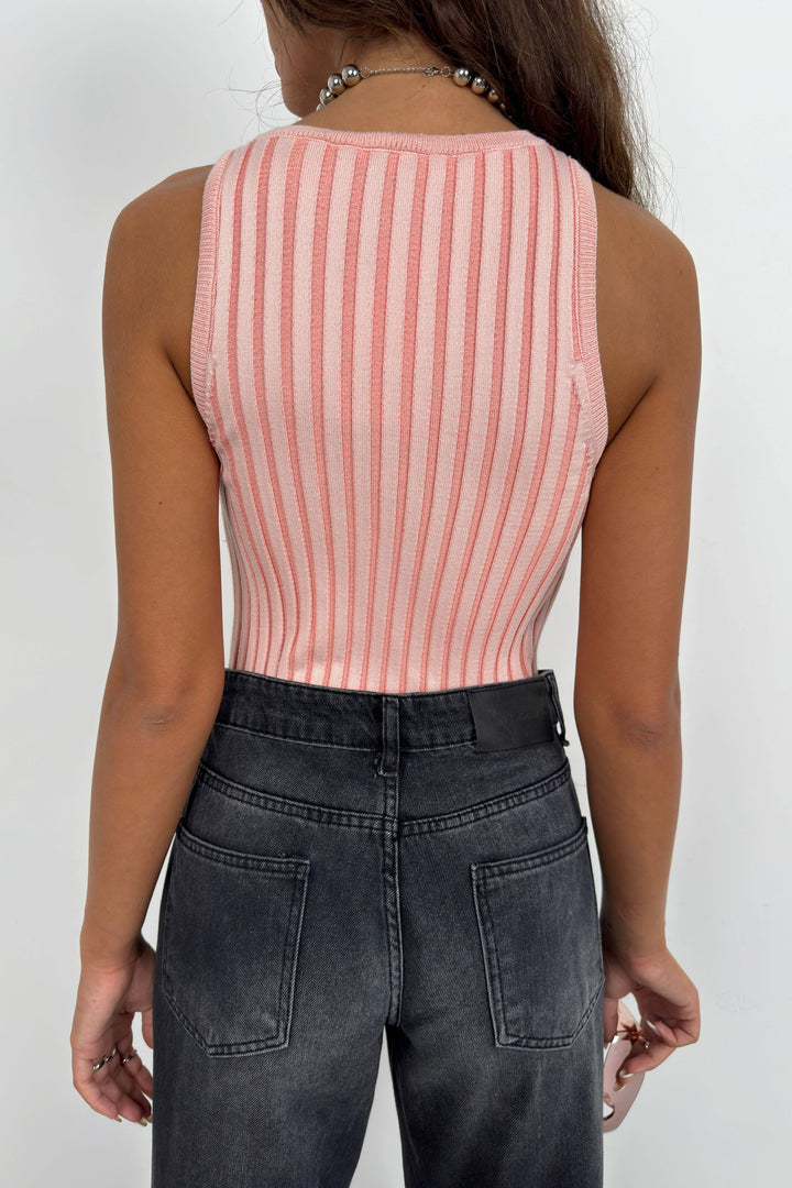 Ribbed, Swimmer Cut, Slim Fit, Zero Collar Sleeveless, Thick Straps, Blouse