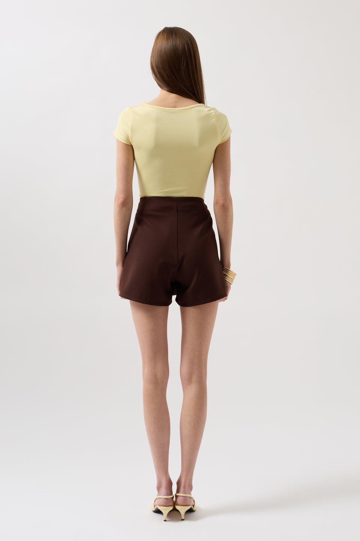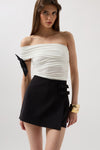 Mini Shorts Skirt with Front Wrap Closure, Ribbon Detail, Side Hidden Zipper