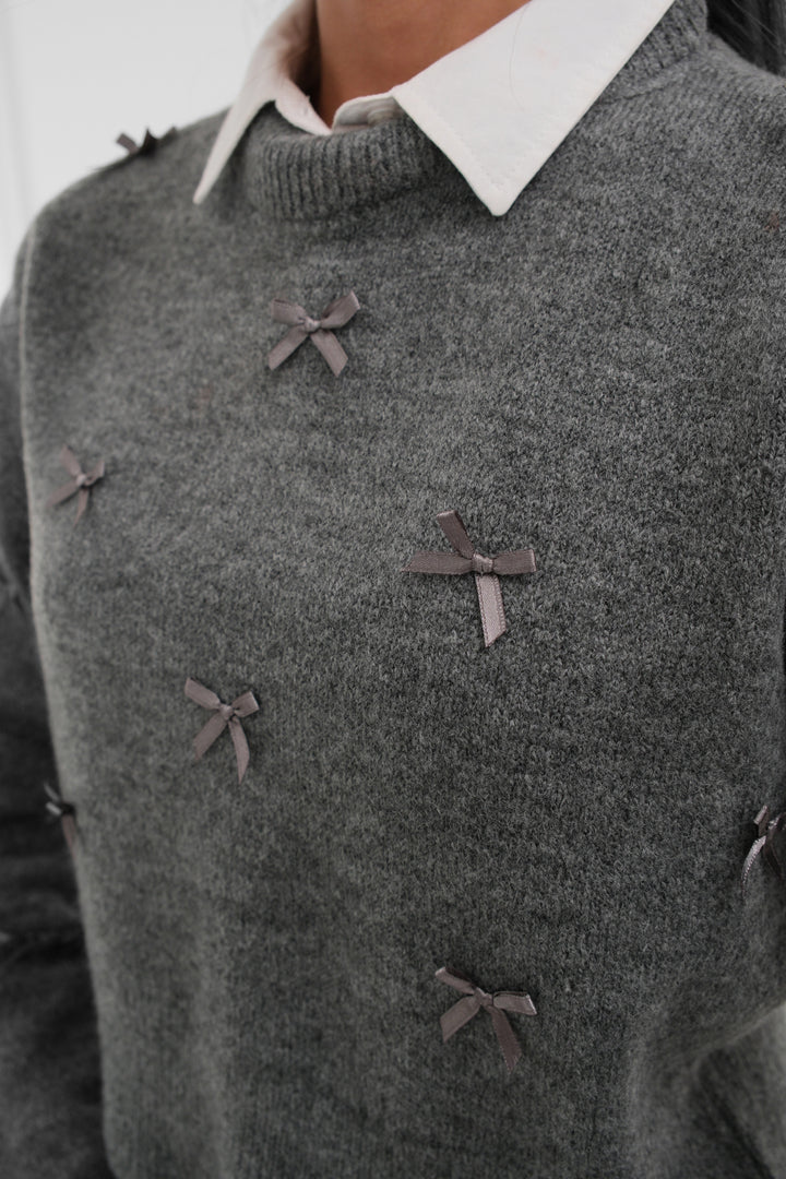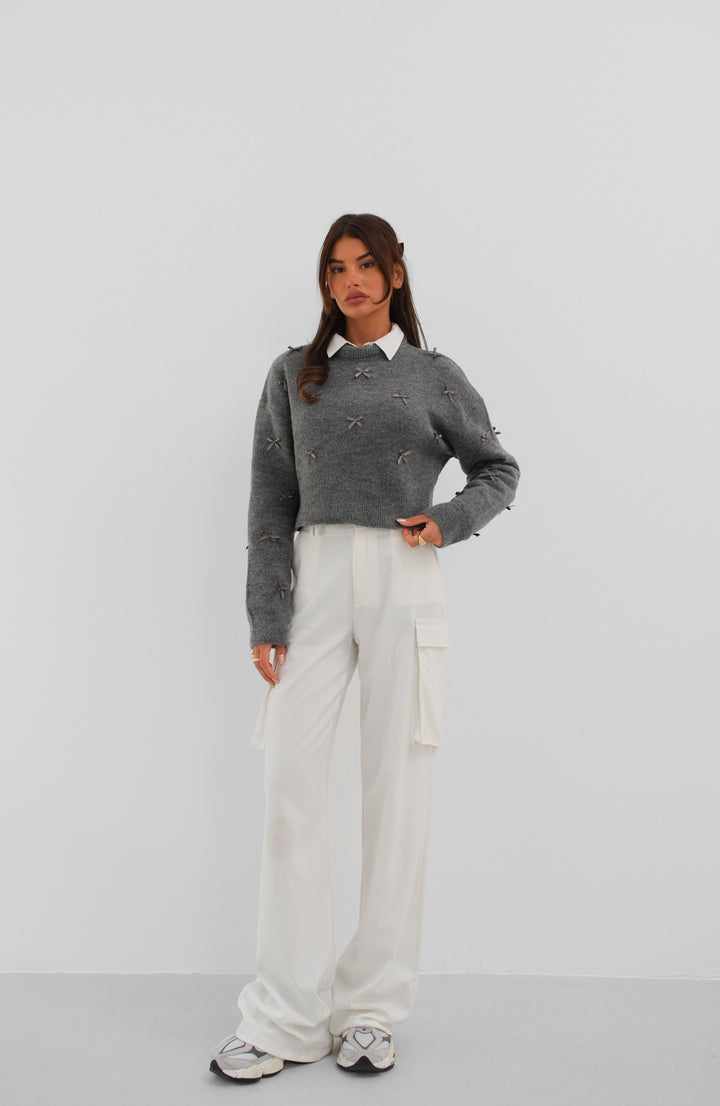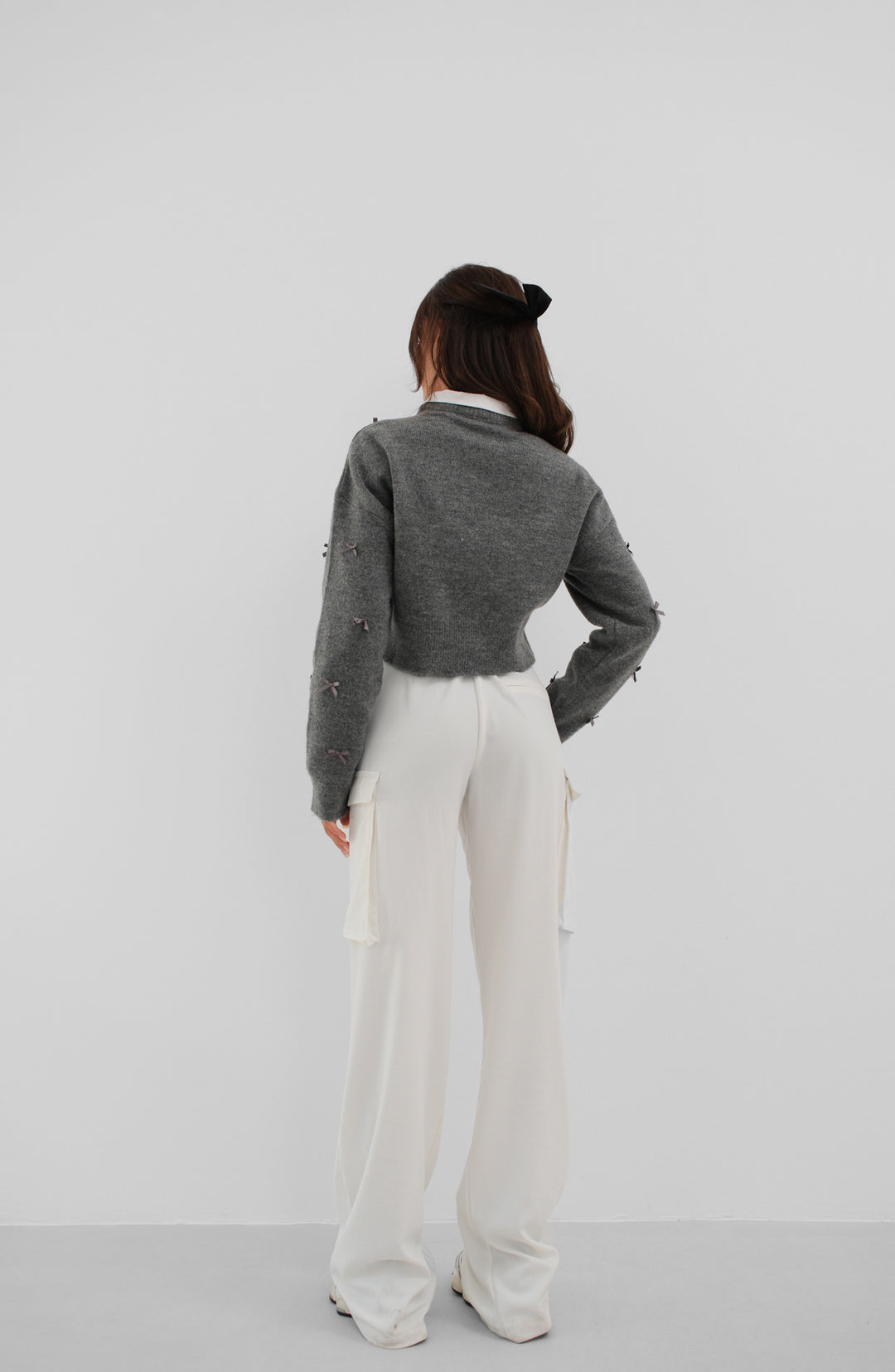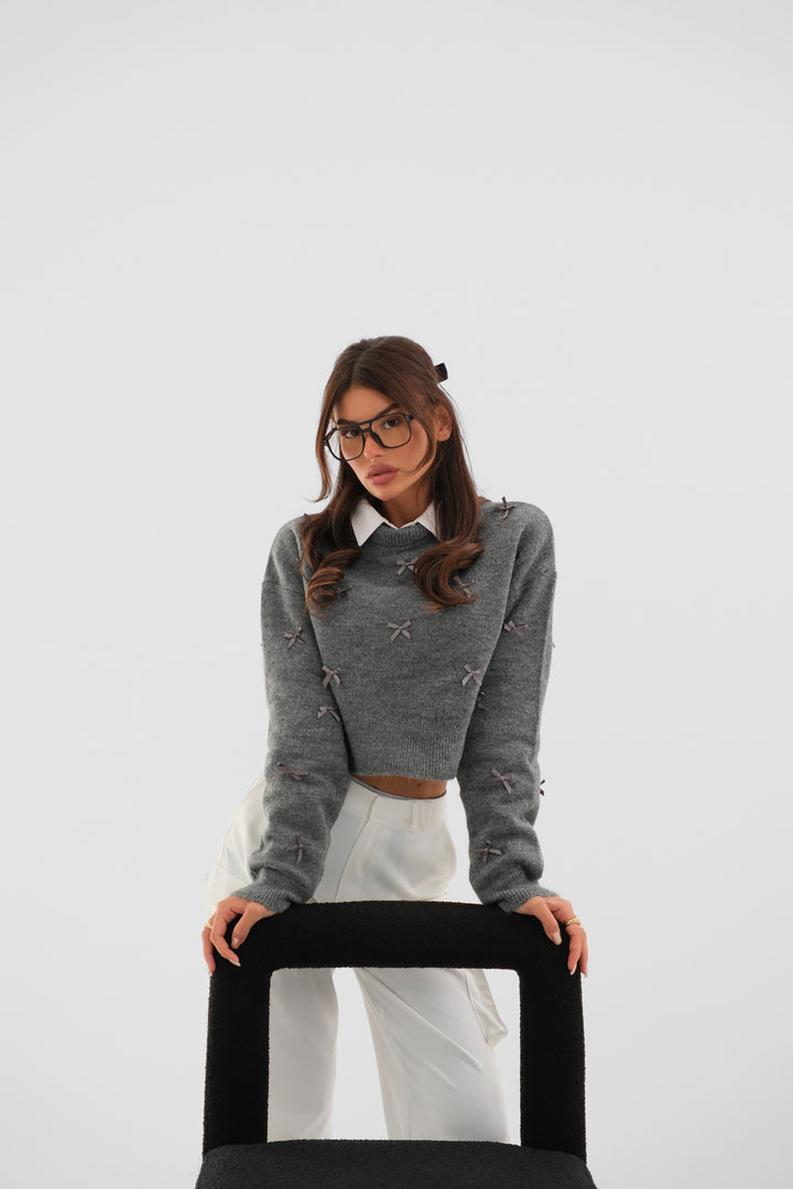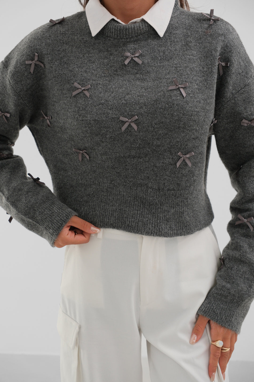 Crew Neck, Bow Detail, Crop, Knitted Sweater
