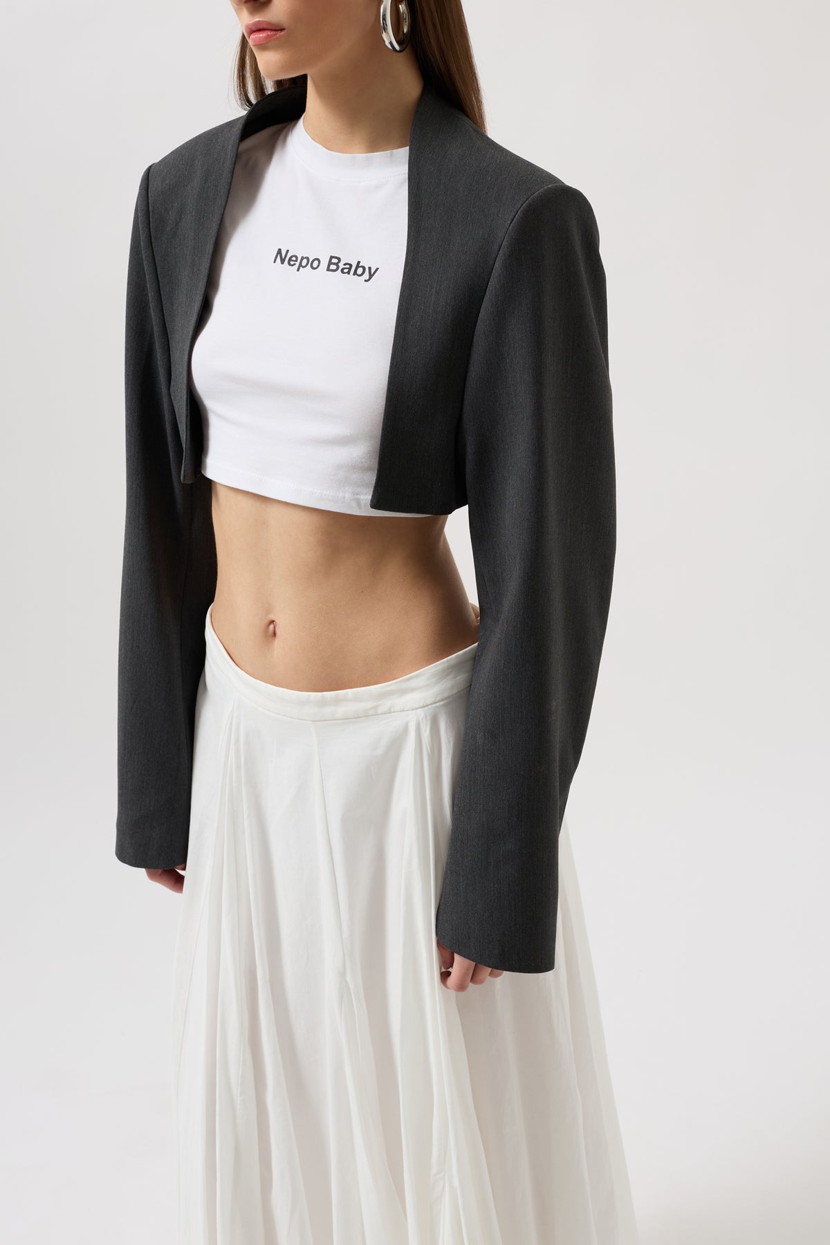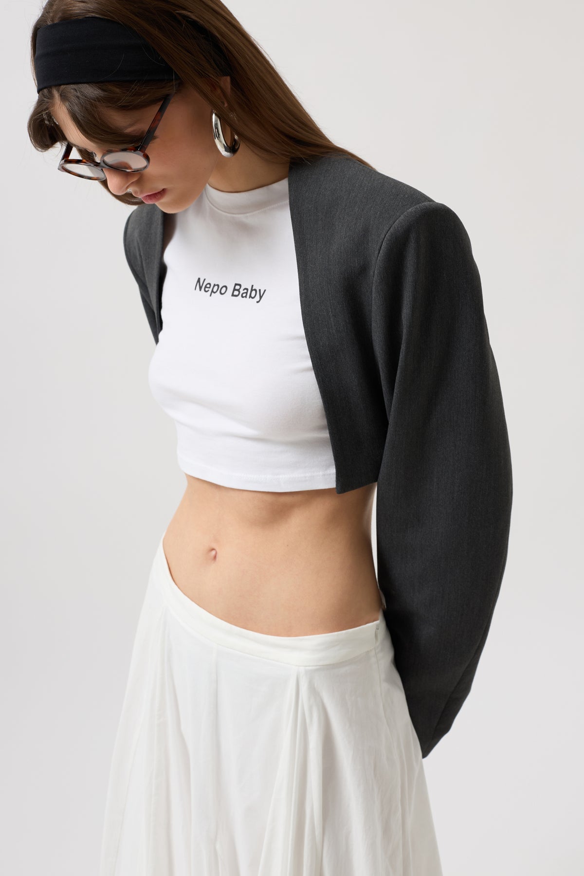 Chest Bra and Piping Detail, Long Sleeve, Crop Jacket