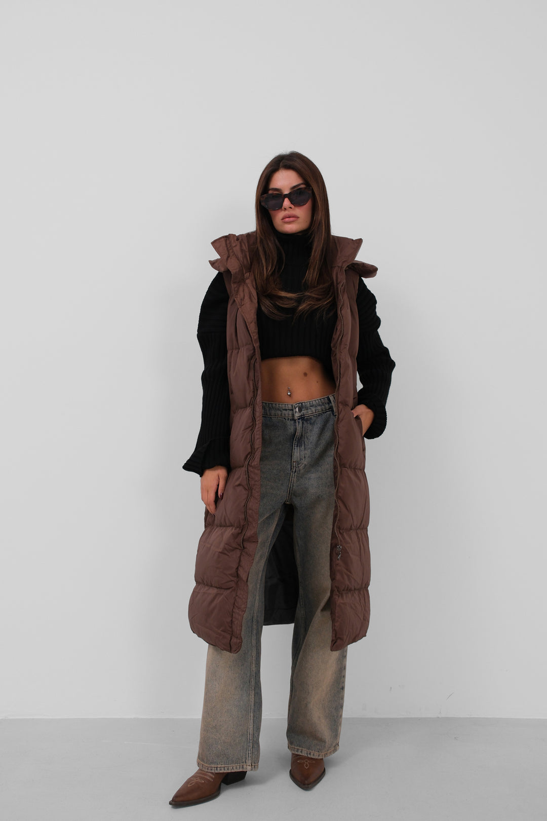Hooded, Maxi, Zipper Detail, Puffer Vest