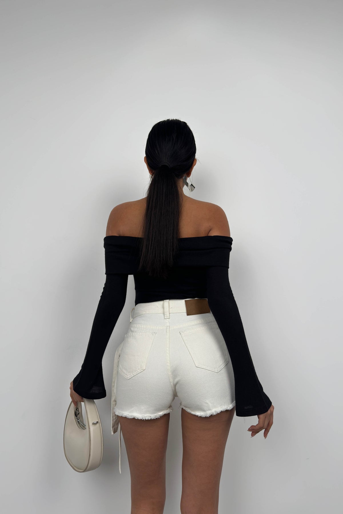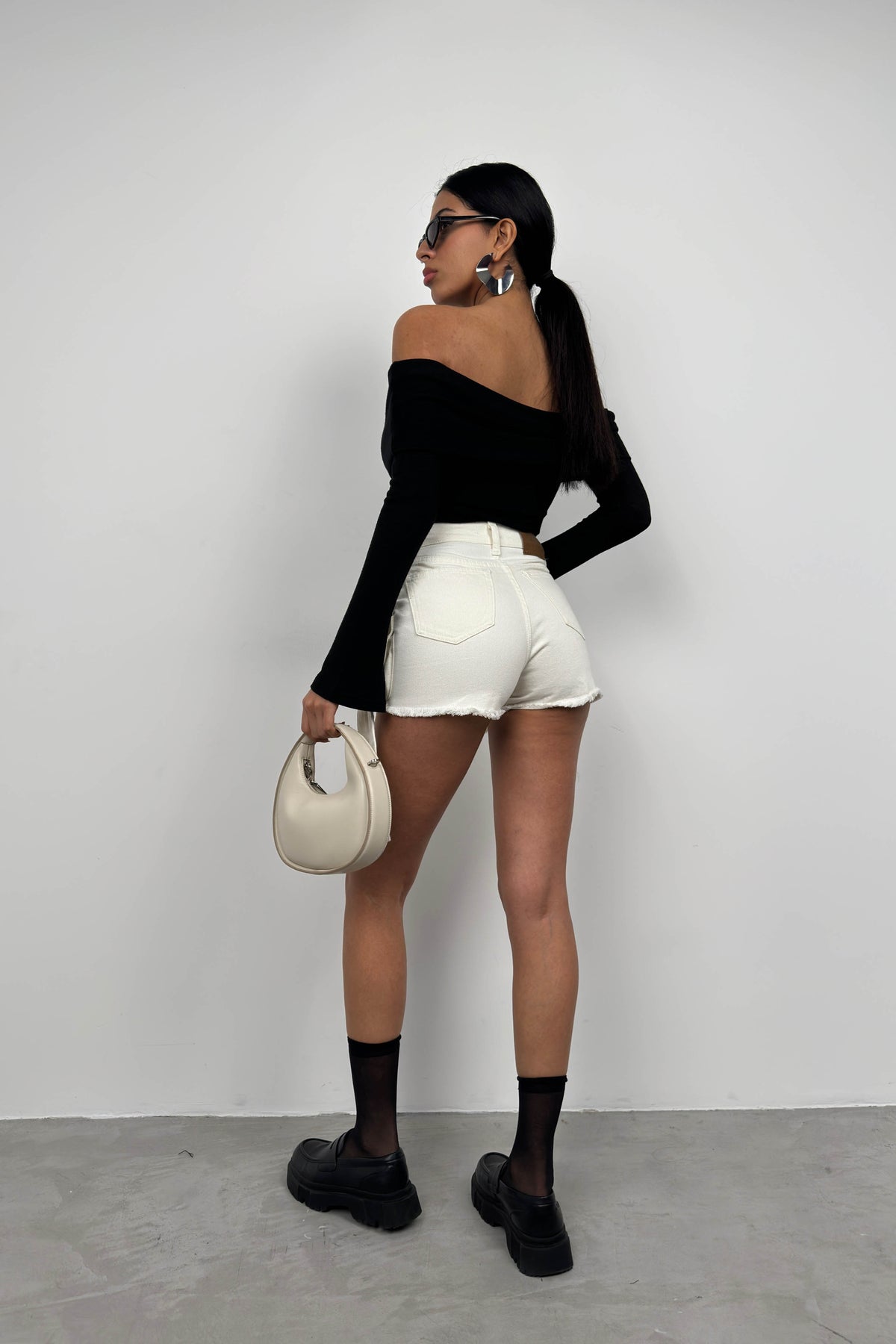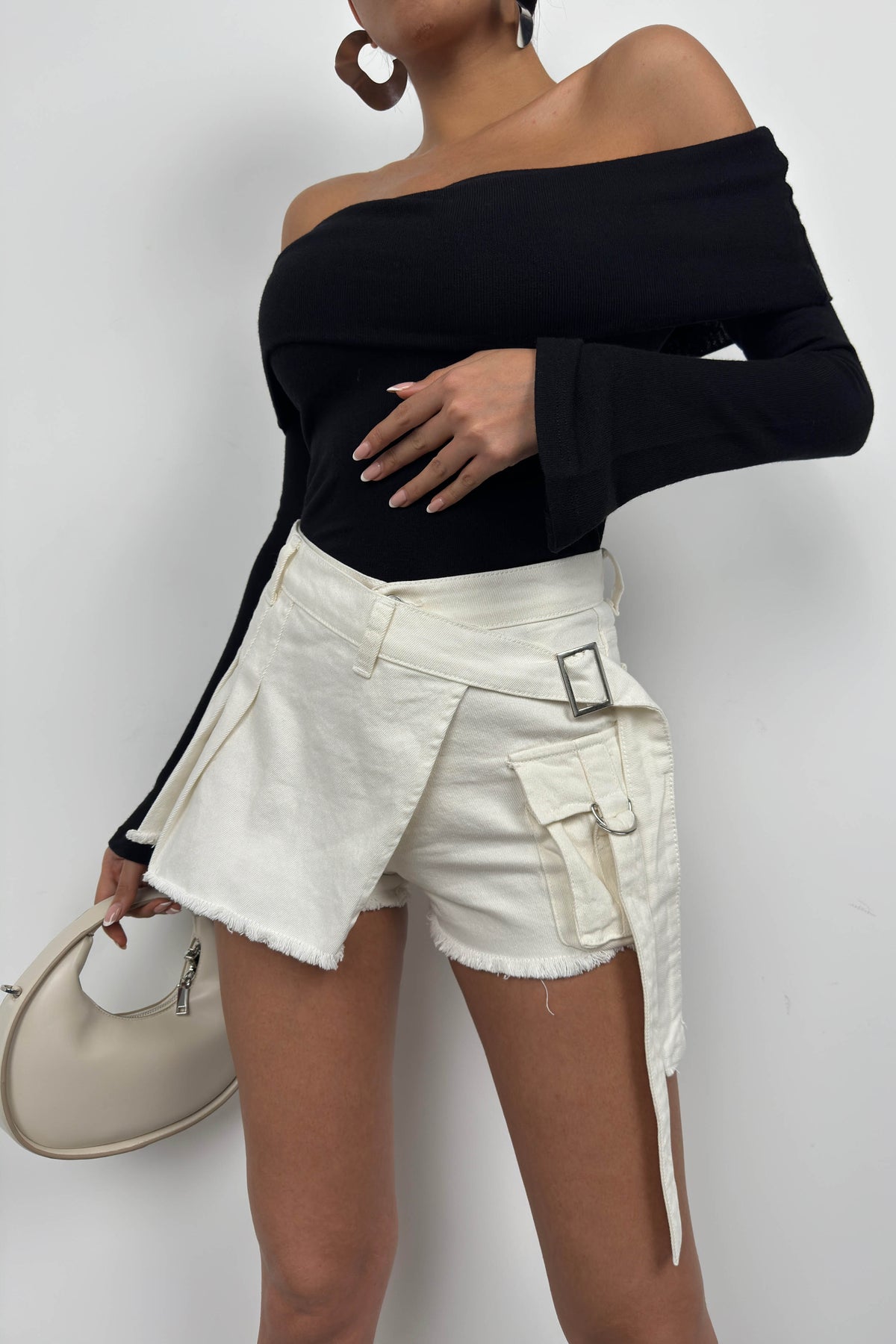 Cargo Pocket Belt Detail White Denim Shorts Skirt