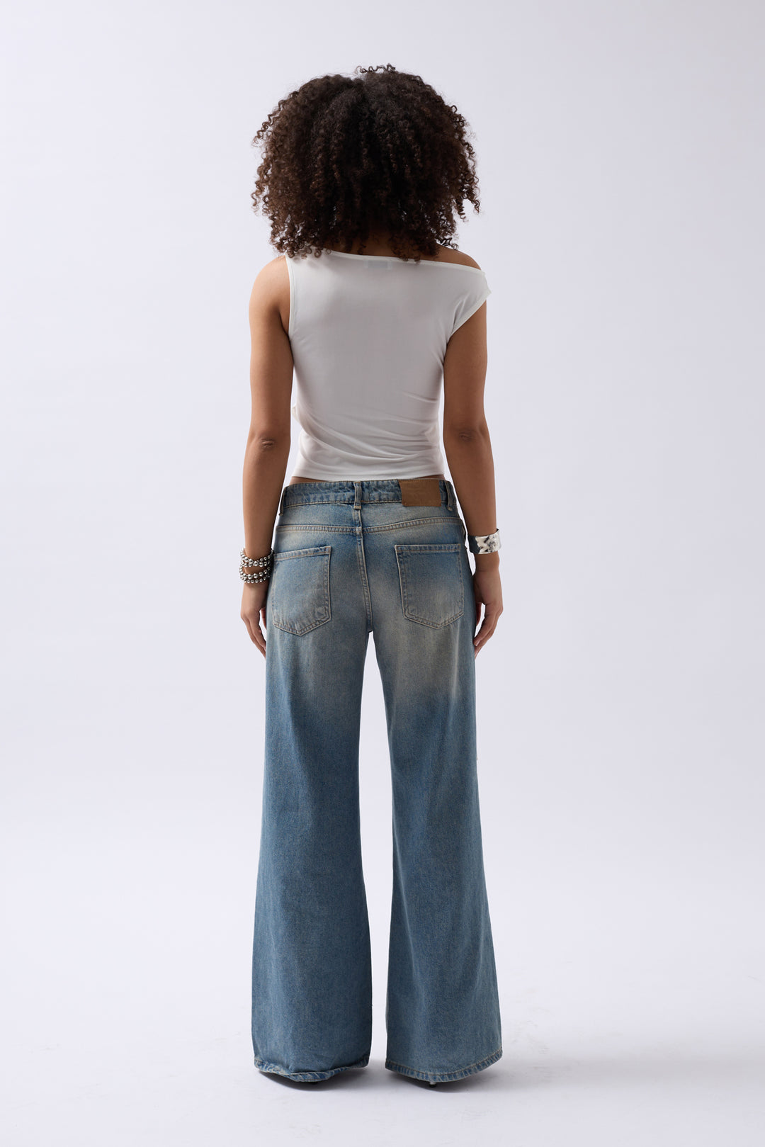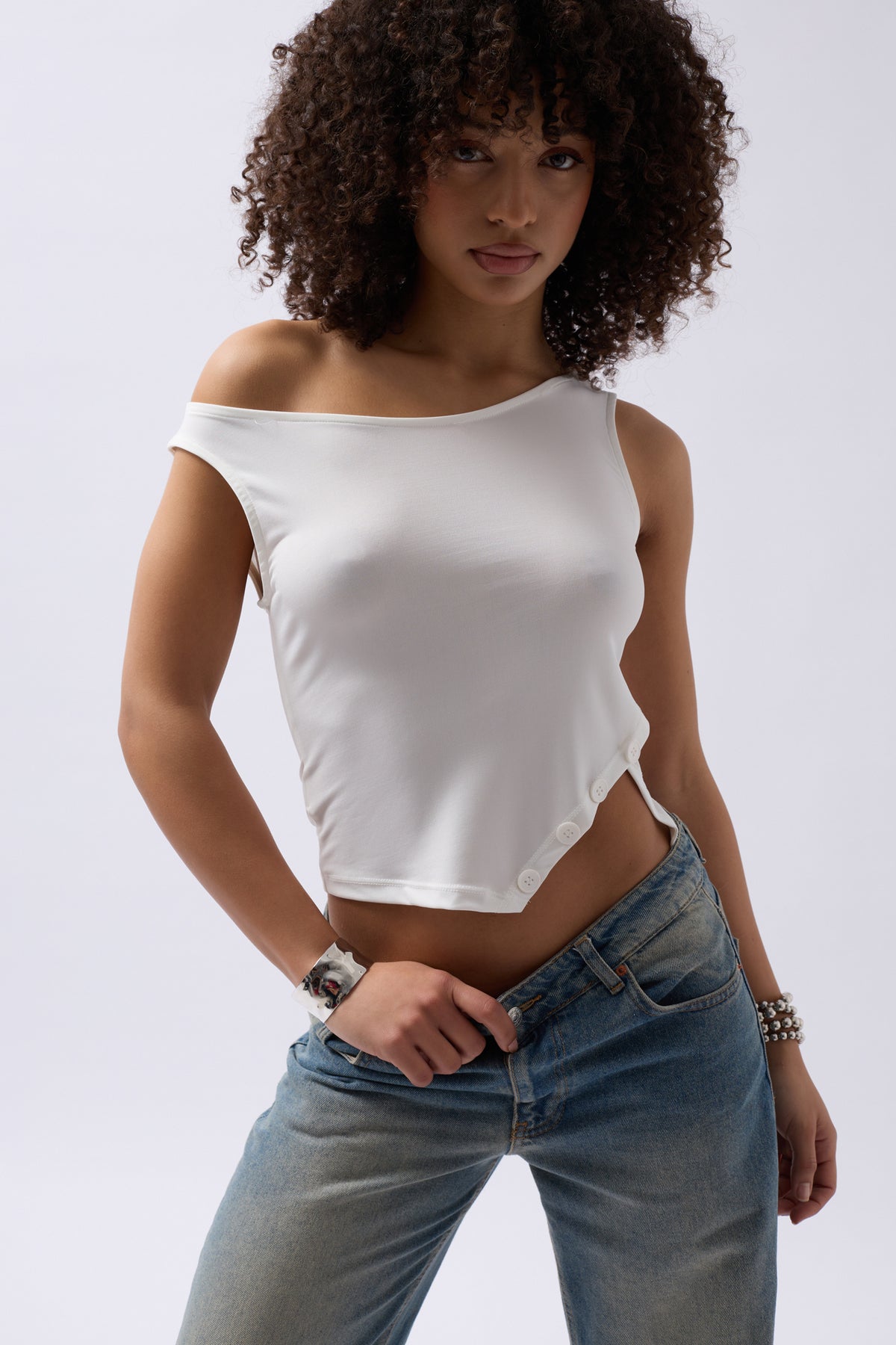 Flexible and Lycra Fabric, Button Detailed, Slit, One Shoulder Down Blouse