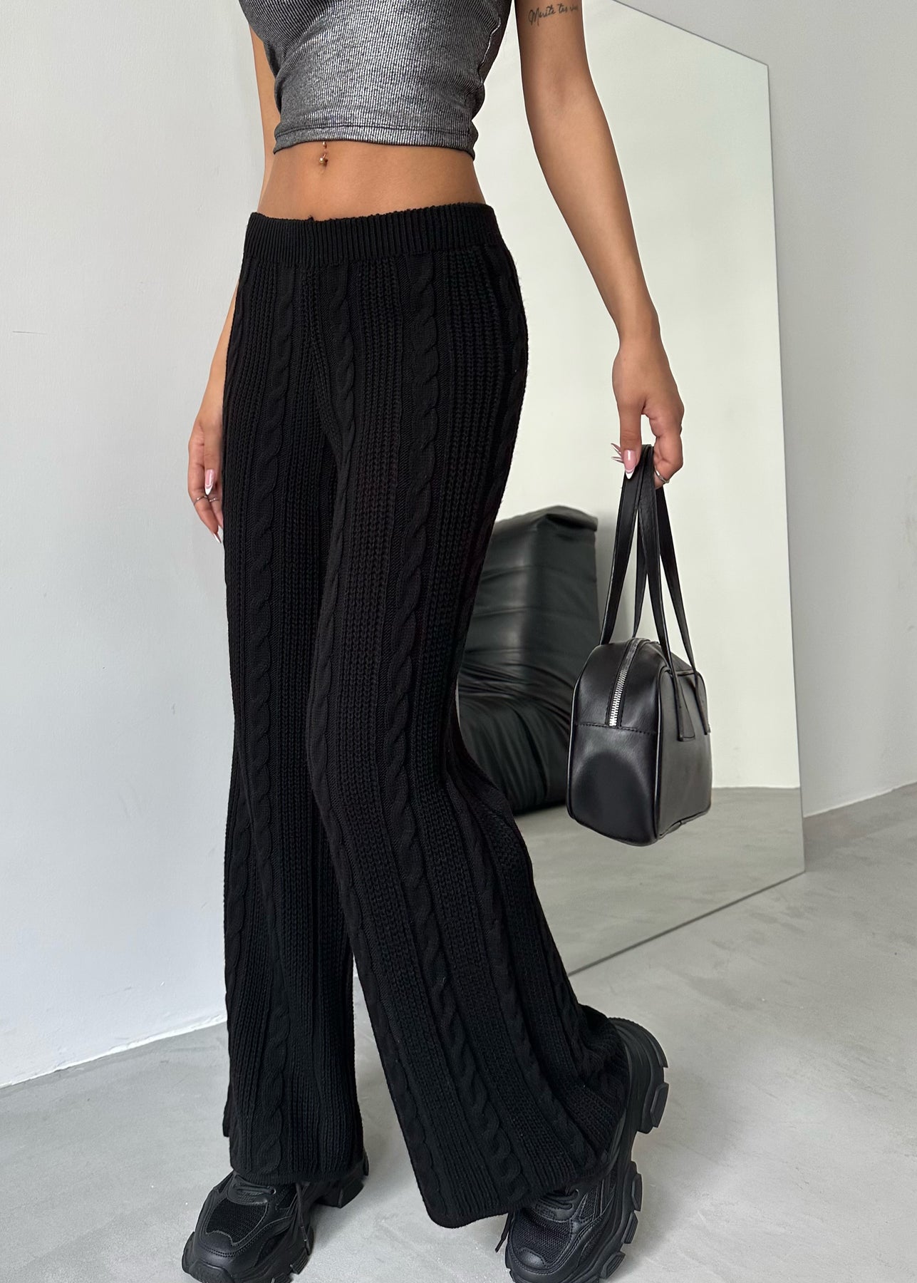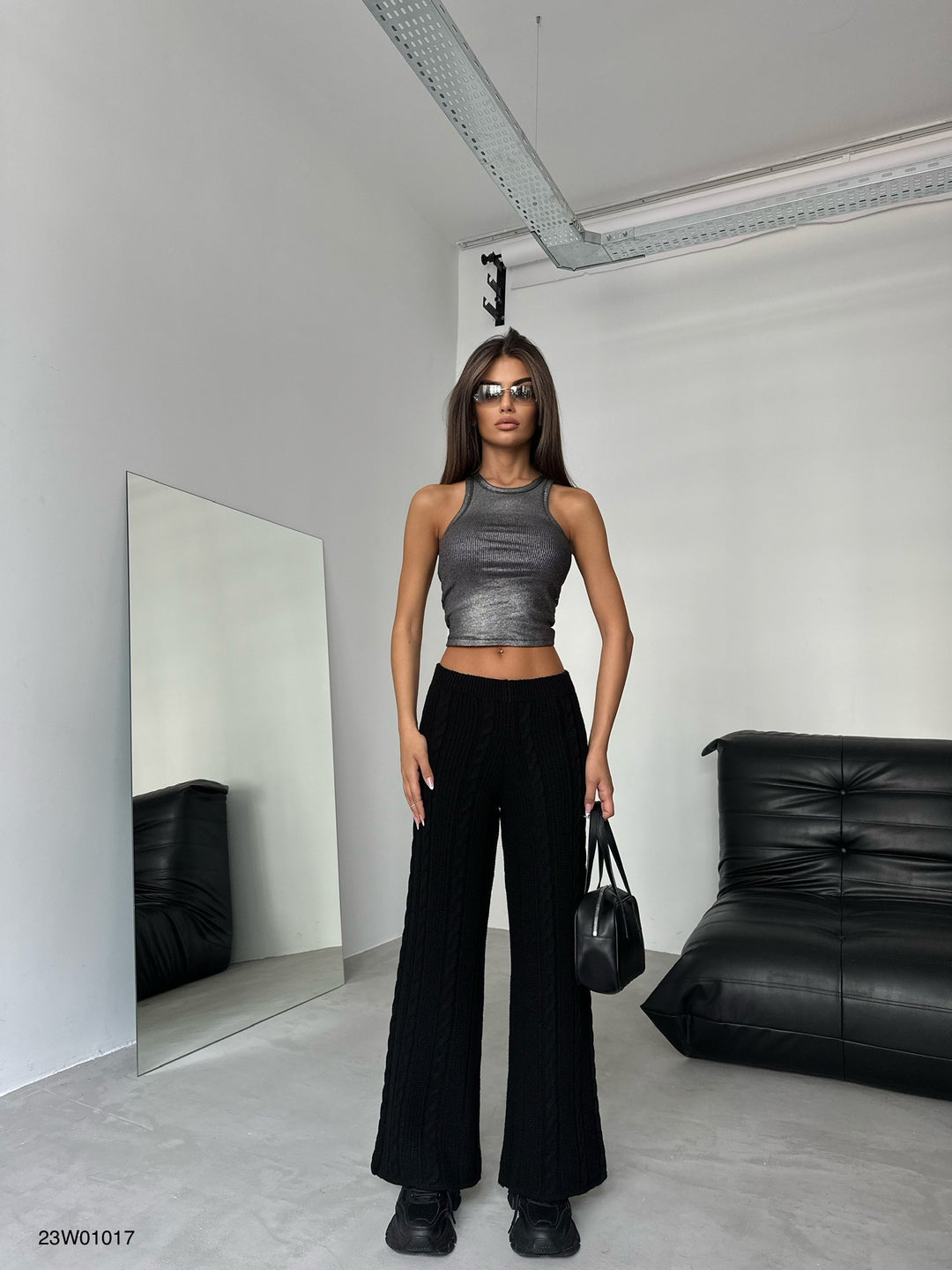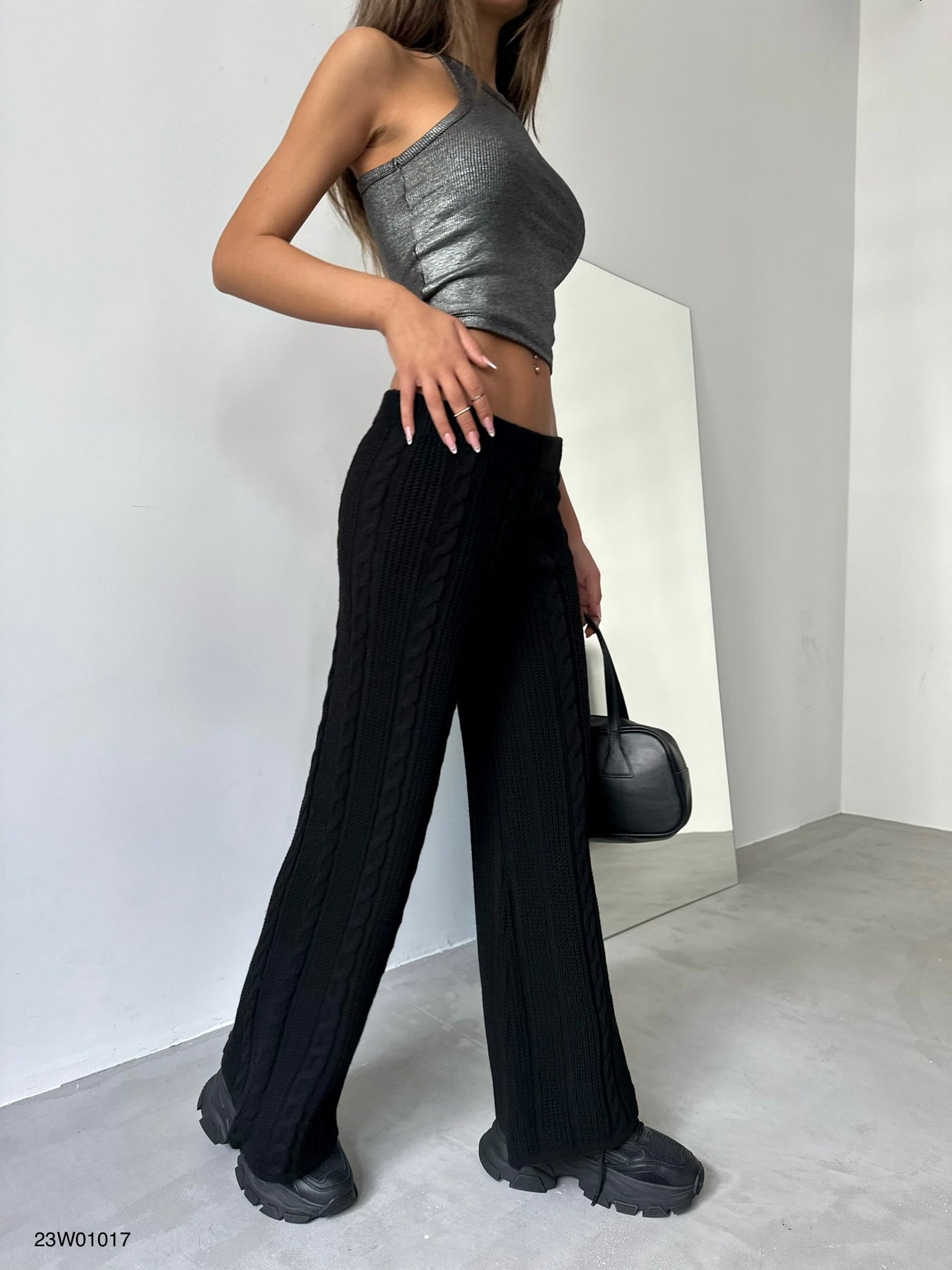 Belted, High Waist, Wide Leg, Knitted Trousers