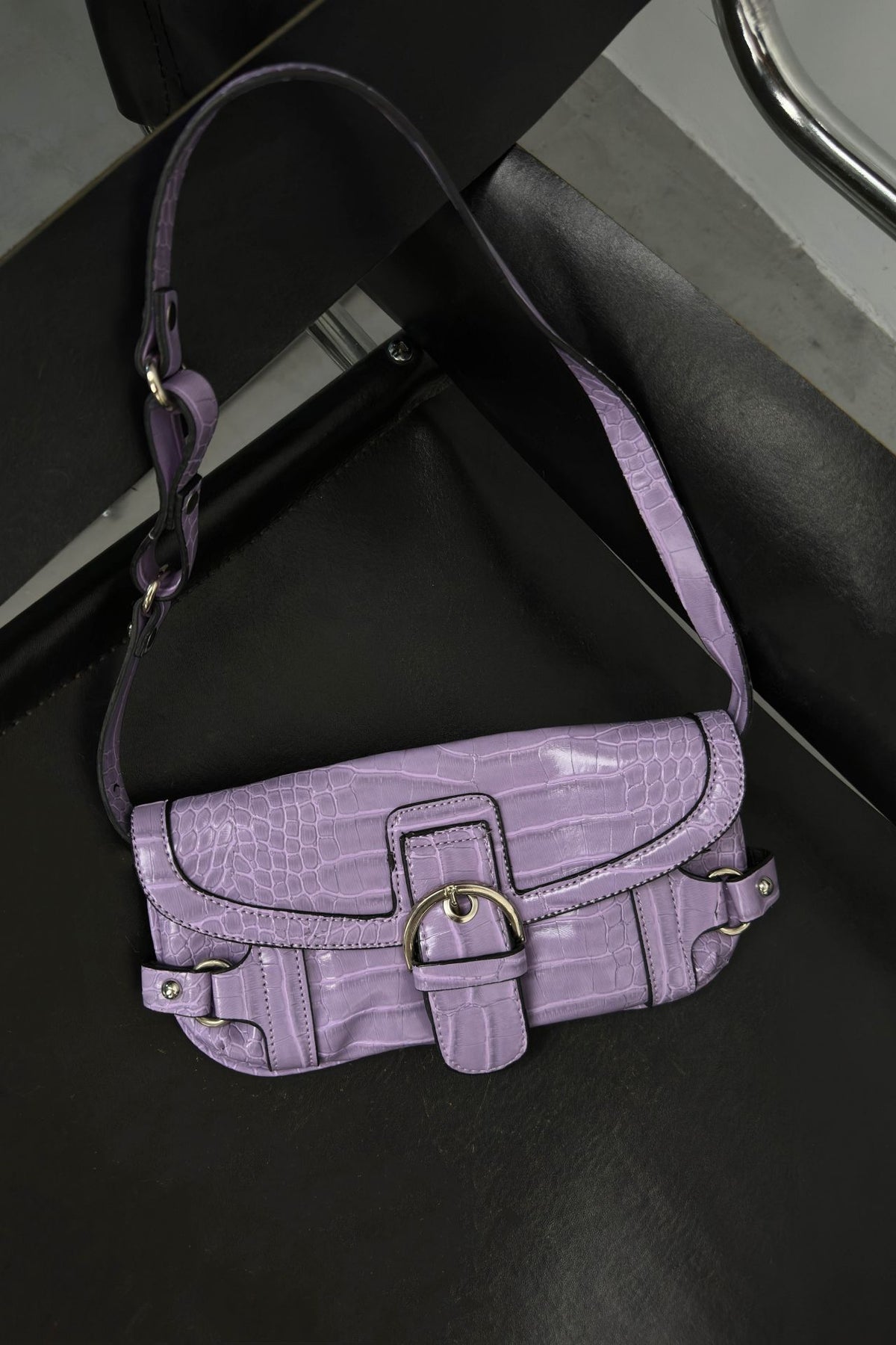 Belt Detailed, Belt Buckle Accessory, Mini Size, Patent Leather, Thin Bag