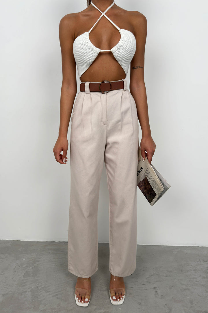 Belted, Wide Leg, High Waist Palazzo Trousers