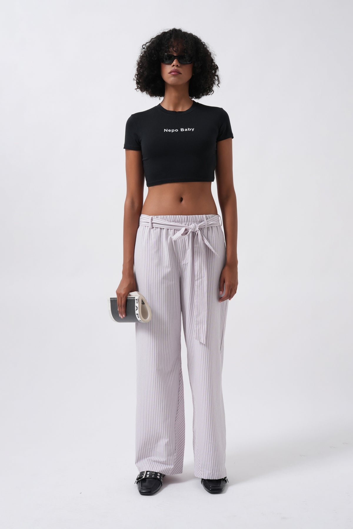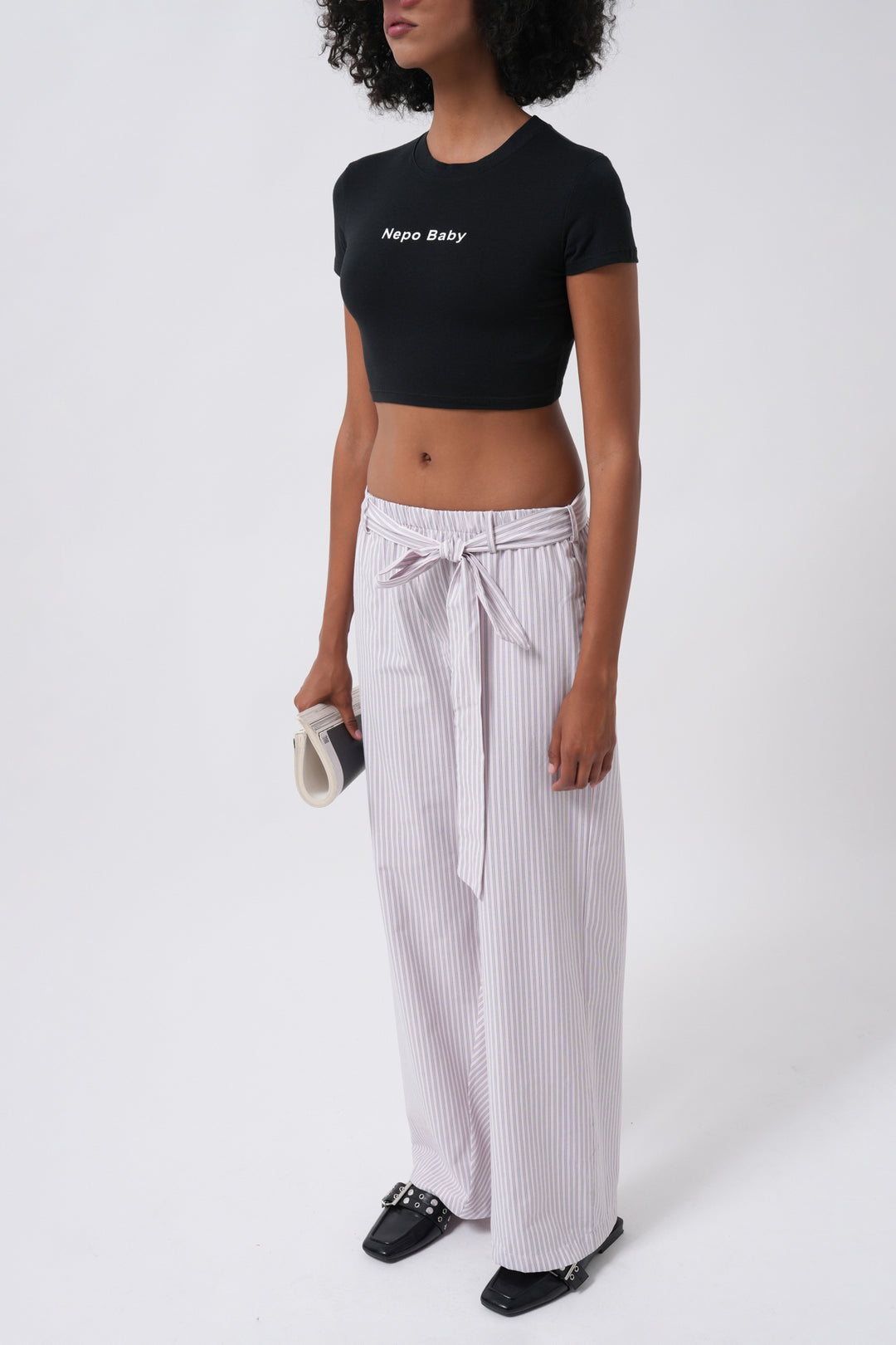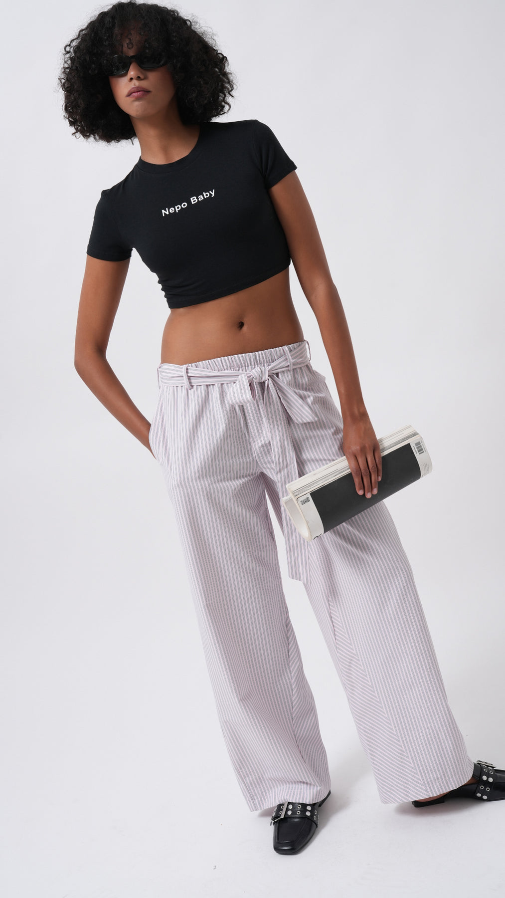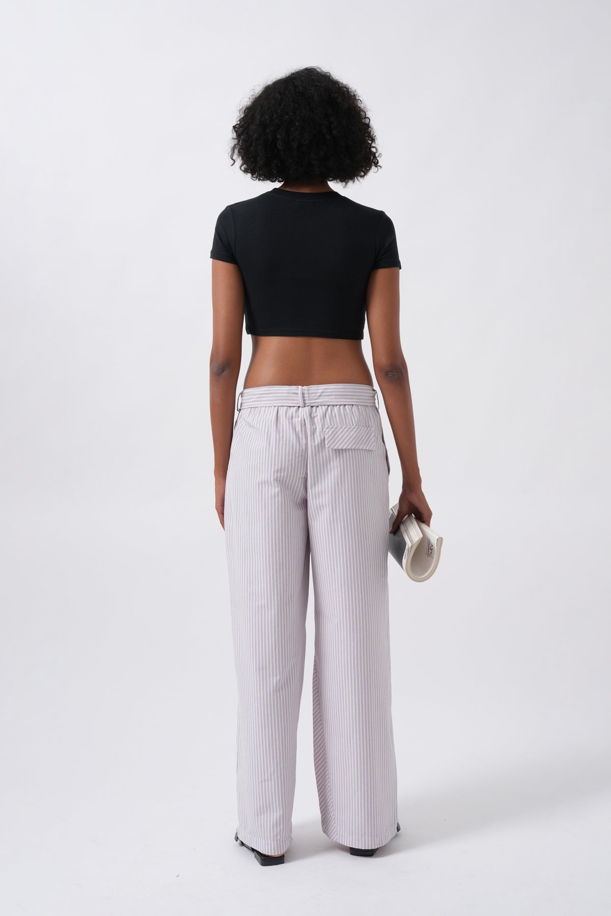 Waist Belted, Double Pocket, Relaxed Cut, Cotton Striped Trousers