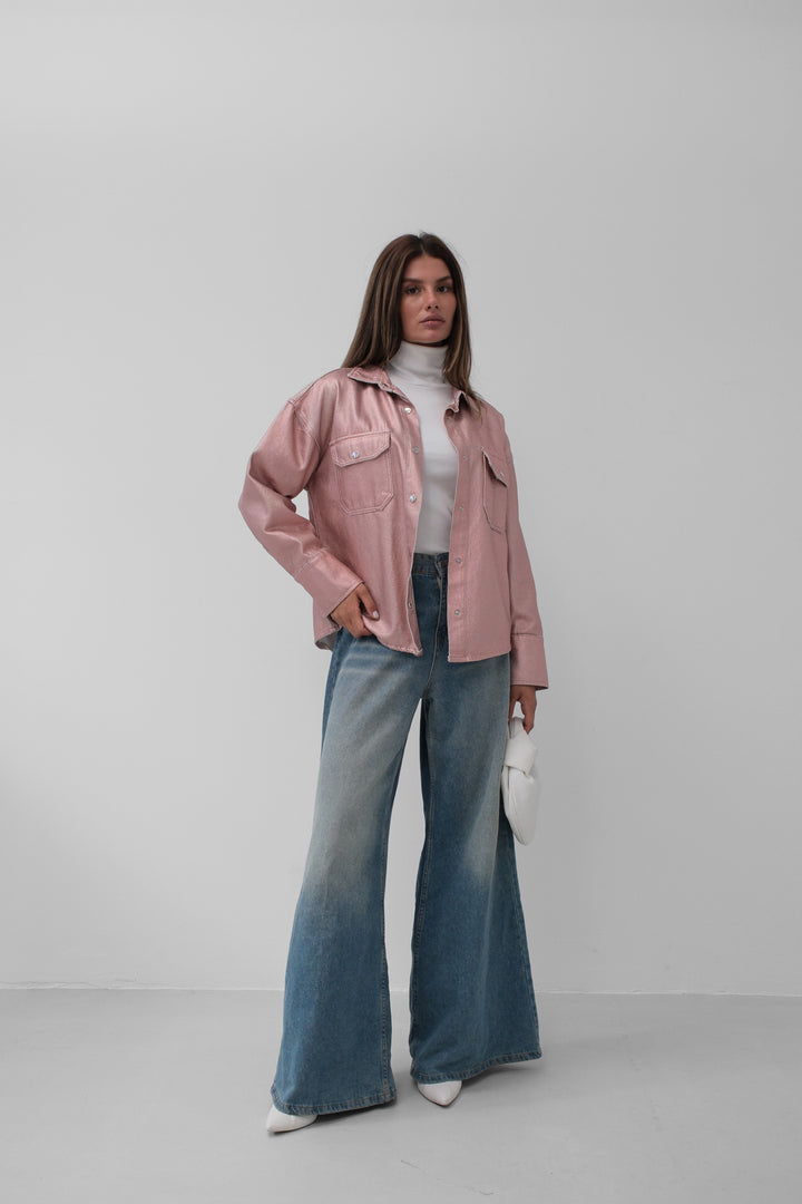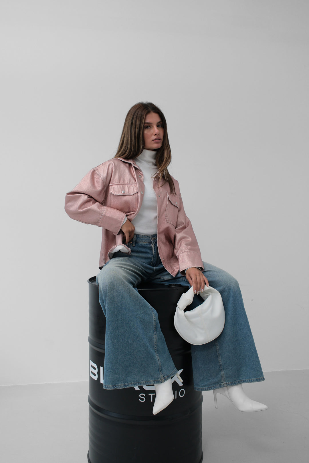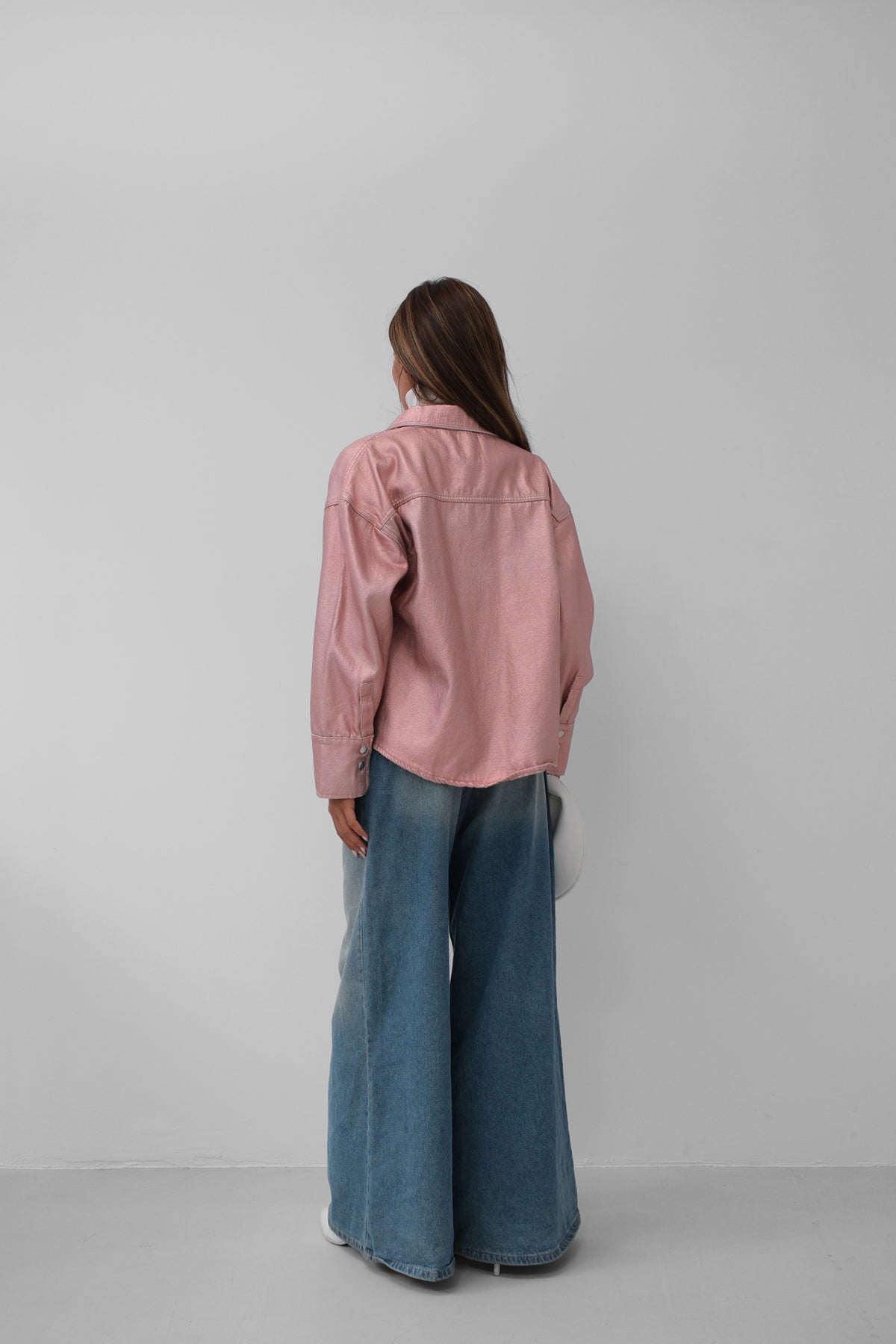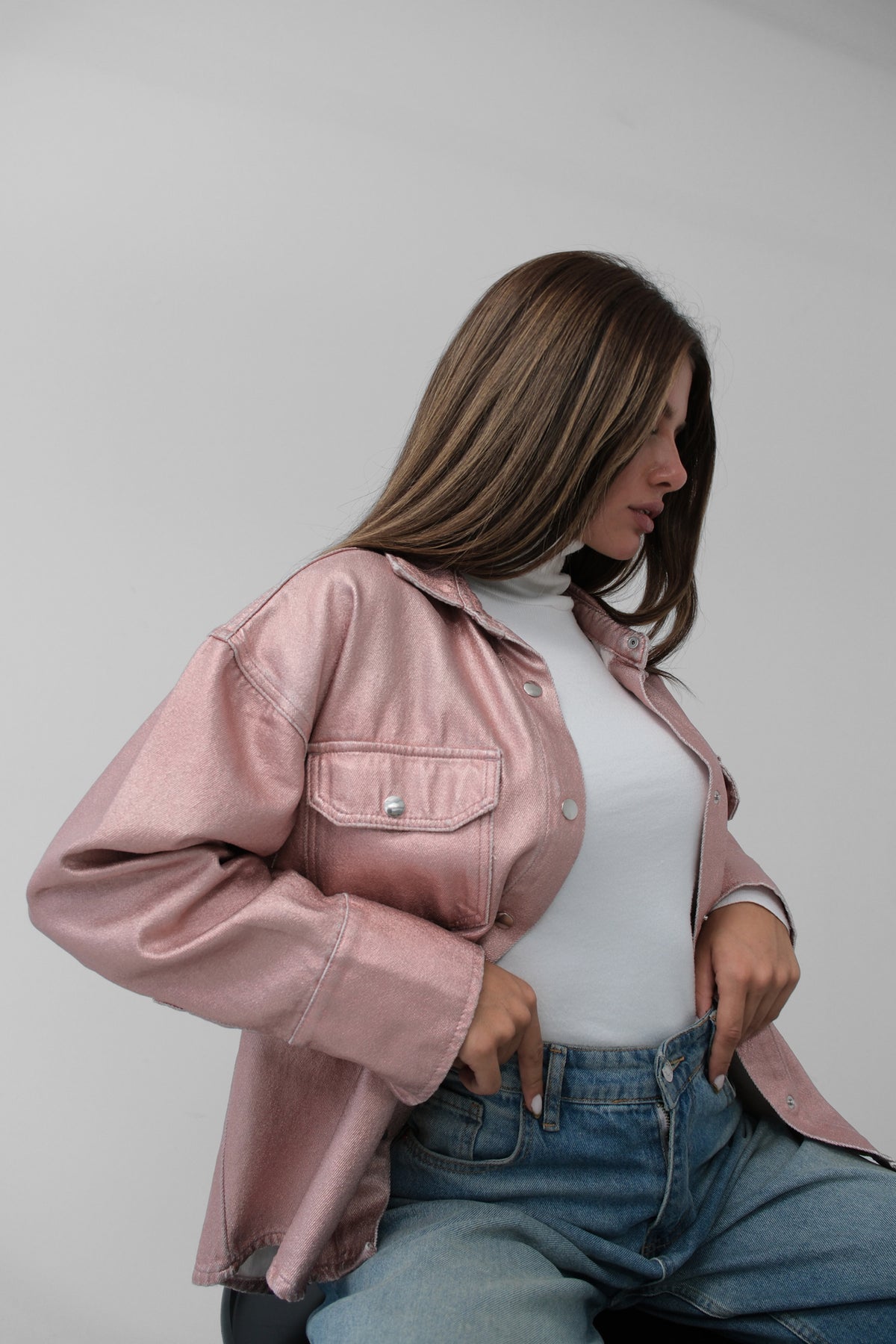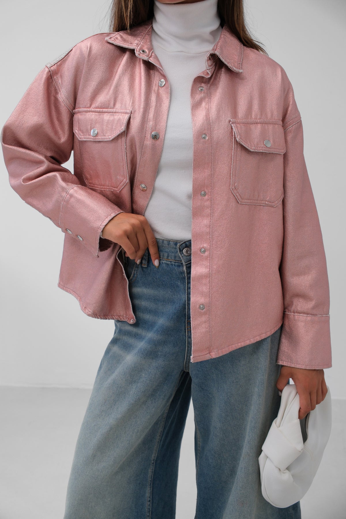 Metallic Color, Pocket, Regular Length, Folded Edge, Long Sleeve, Lapel Collar, Jacket
