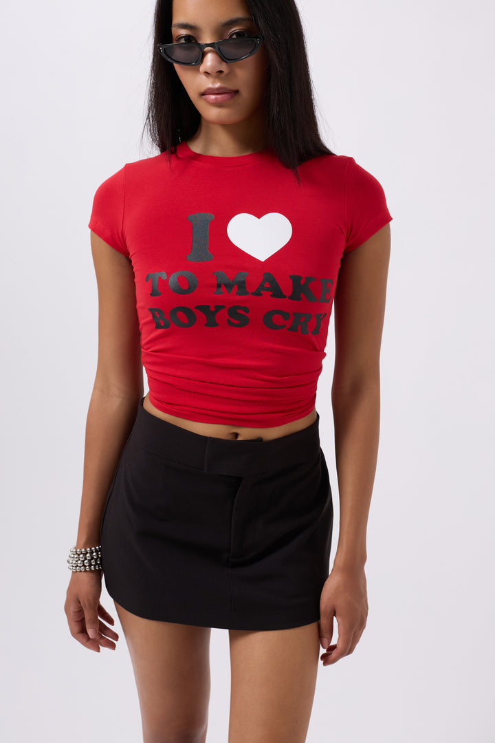 Front Printed, Short Sleeve, Lycra Cotton Fabric Crop T-Shirt