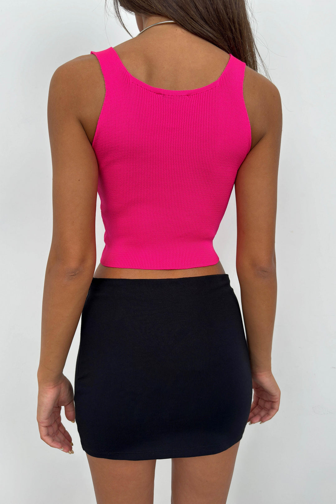 Fuchsia Crop Blouse with Front Pleats
