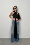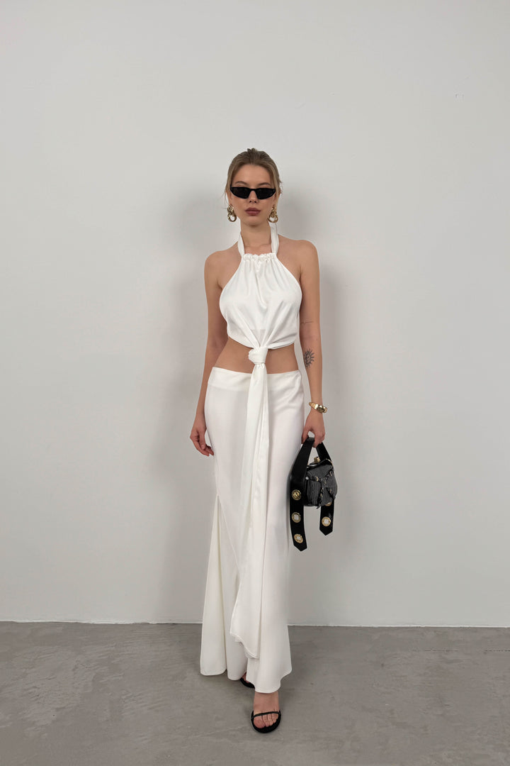 Front Tie, Back Opening, Neck Tie, Sleeveless, Satin Fabric, Blouse