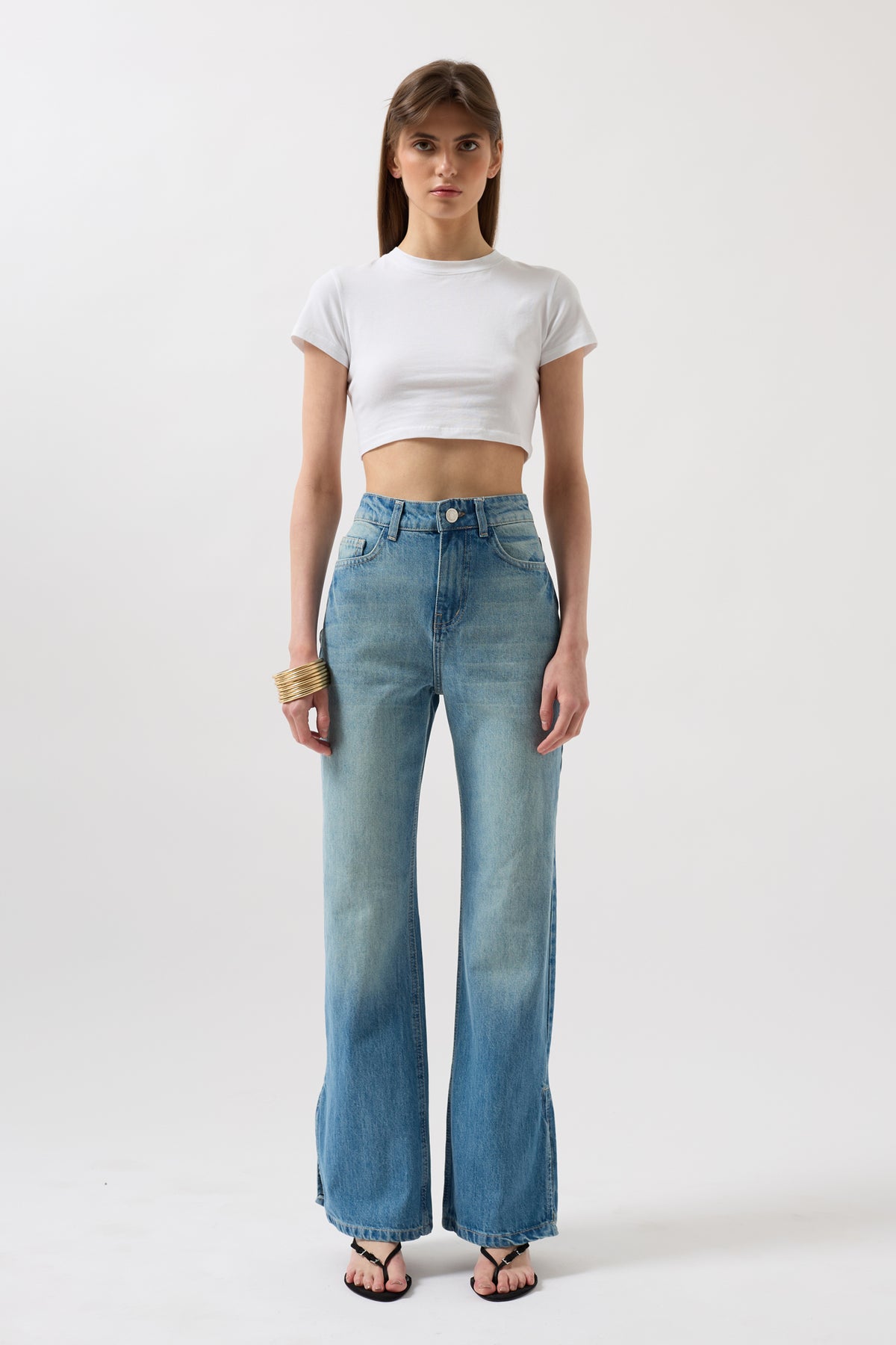 High Waist Blue Jeans with Leg Slits