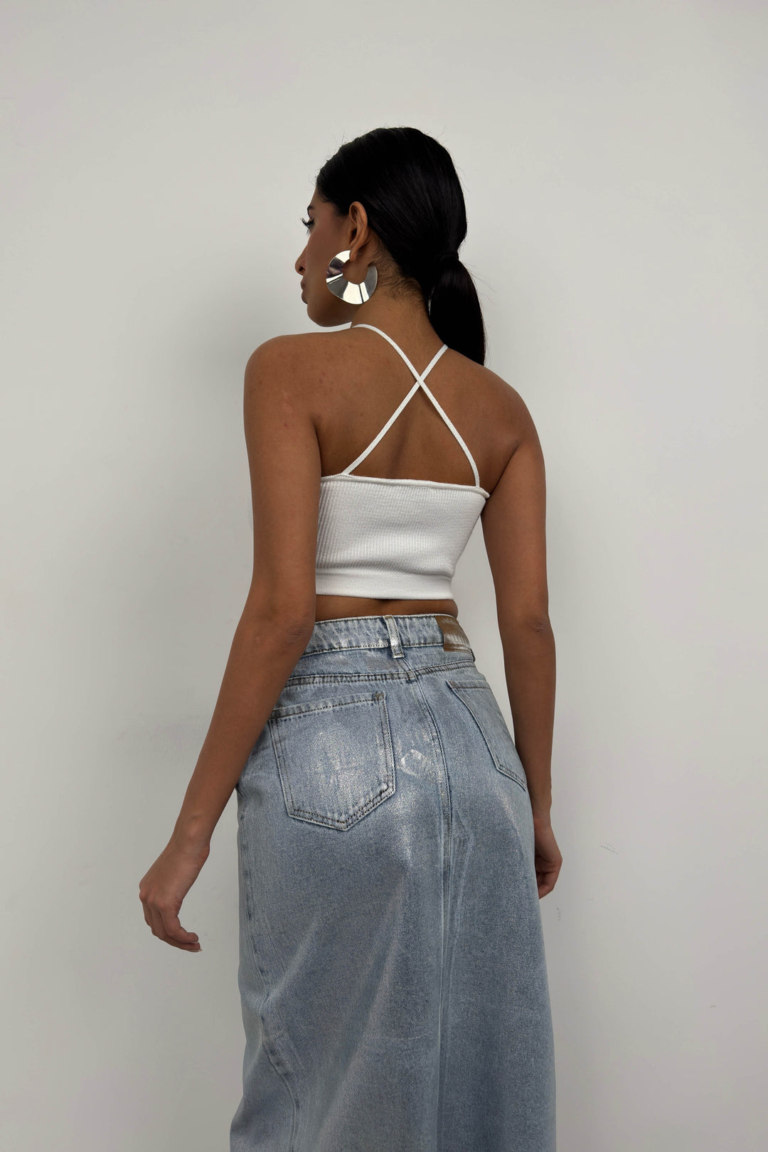 Window Detail, Thin Straps, Ribbed Knitwear, Body-Clinging, Crop