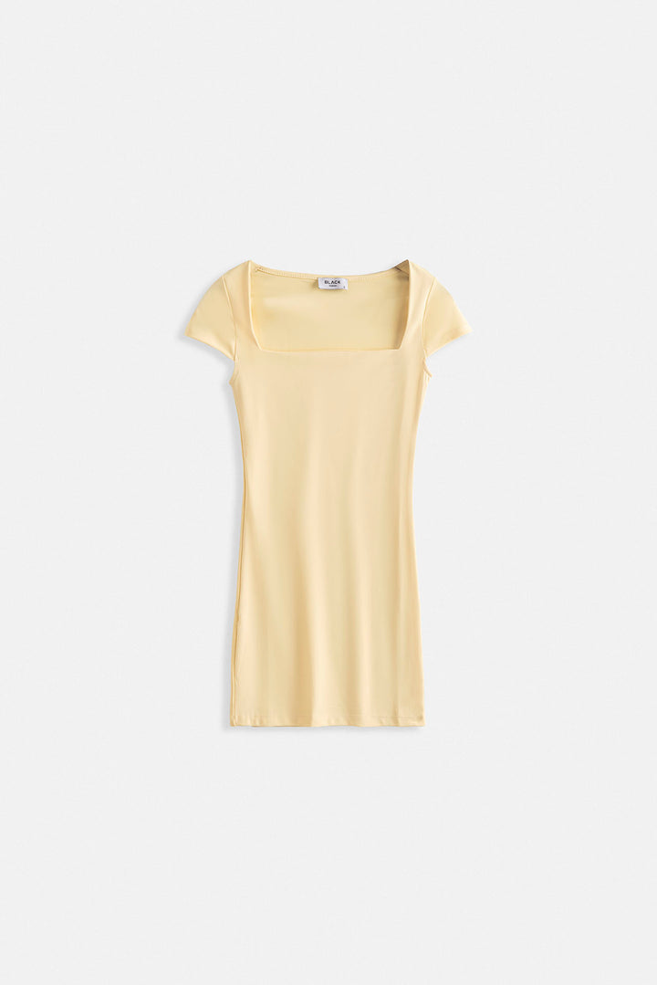 Square Neck, Lycra and Flexible Fabric, Short Sleeve Mini Dress