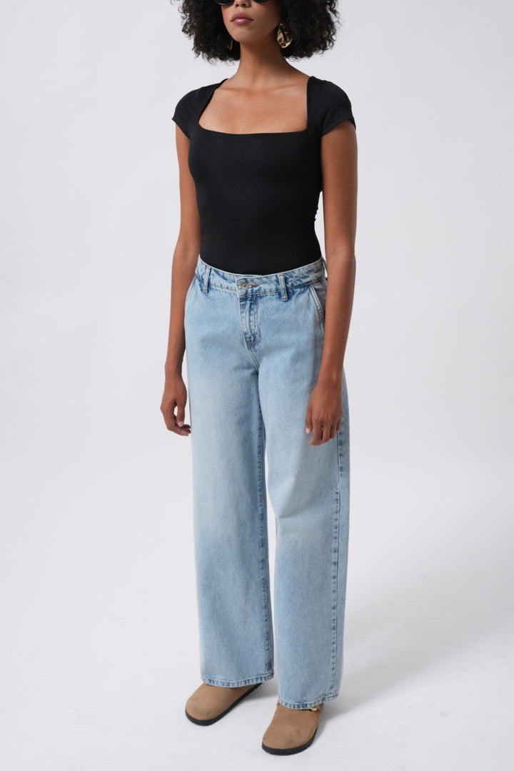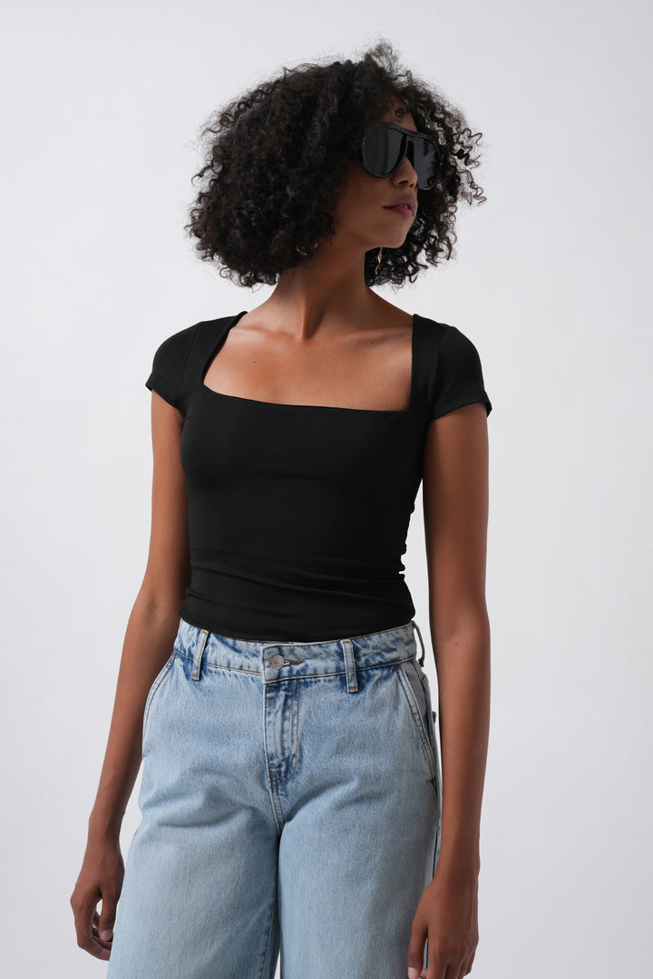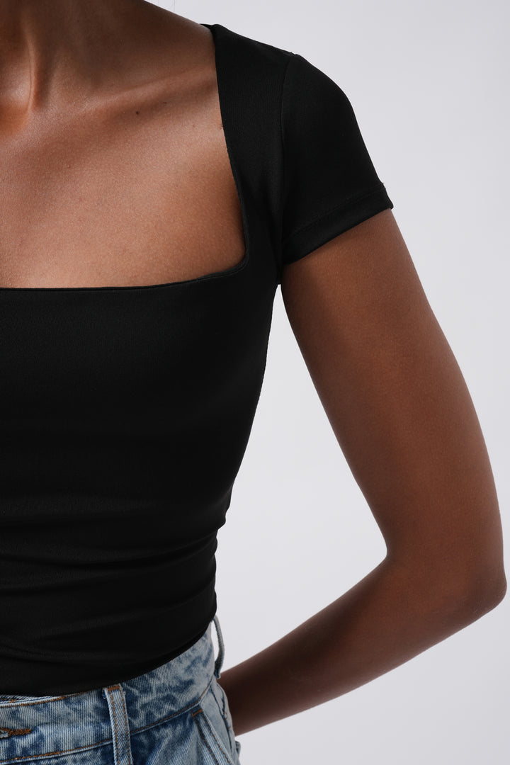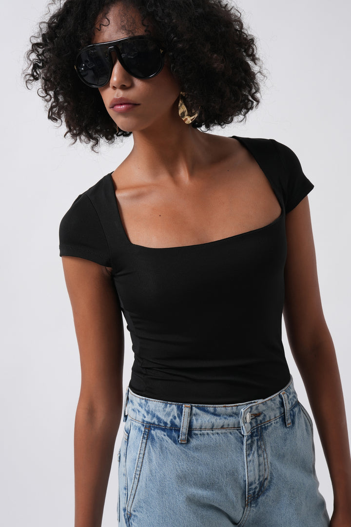 Window Detail Mini Low Cut Black Blouse