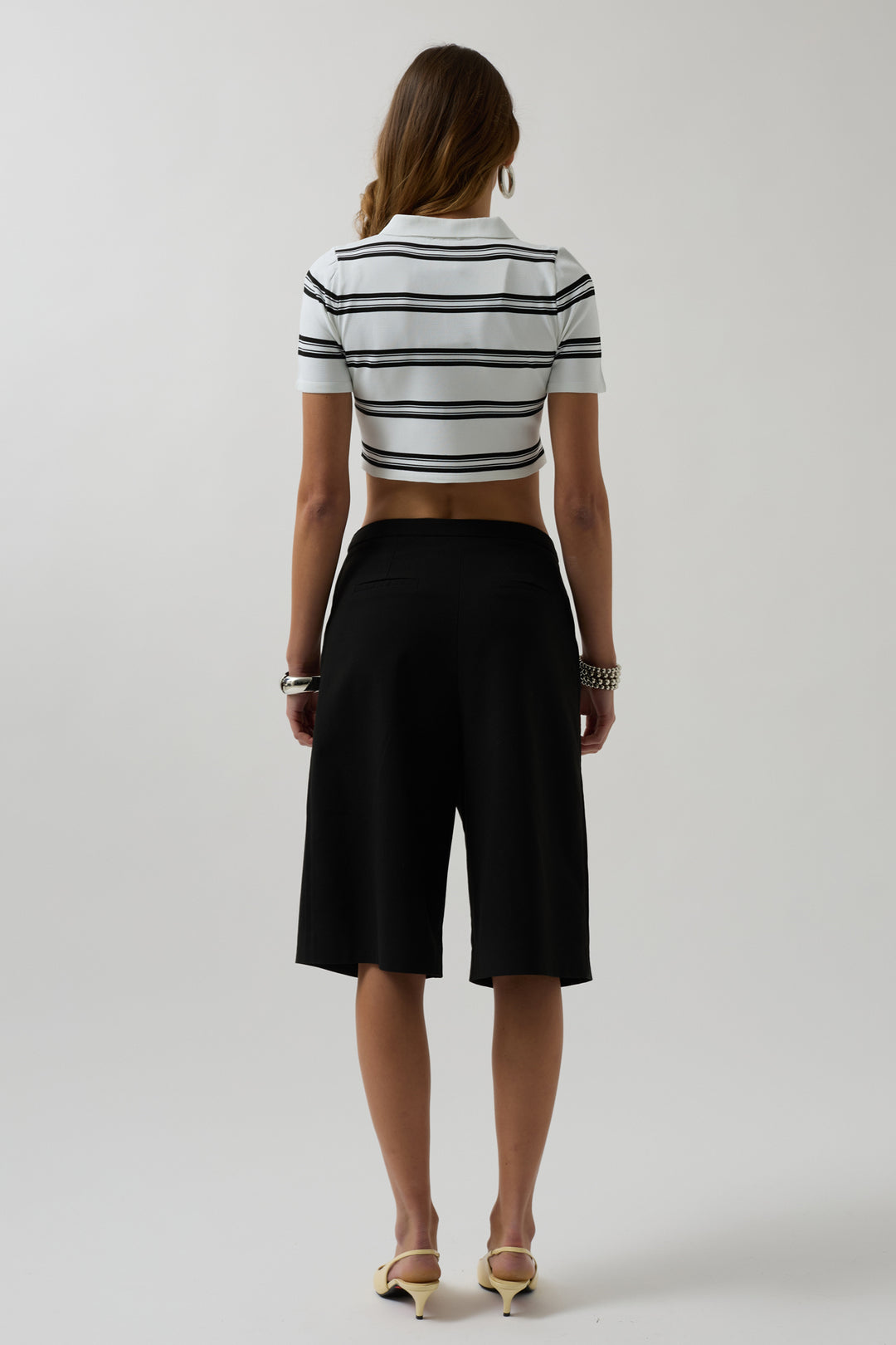 Two-Colored, Striped, Buttoned, Knitted Crop Blouse