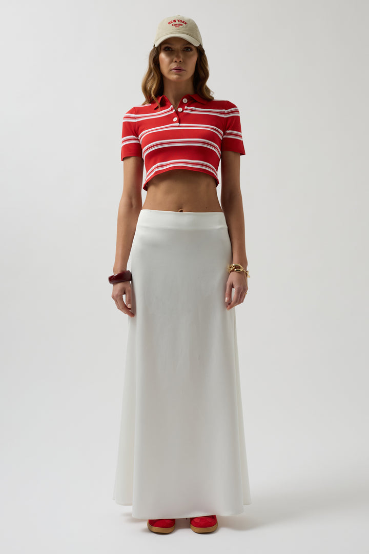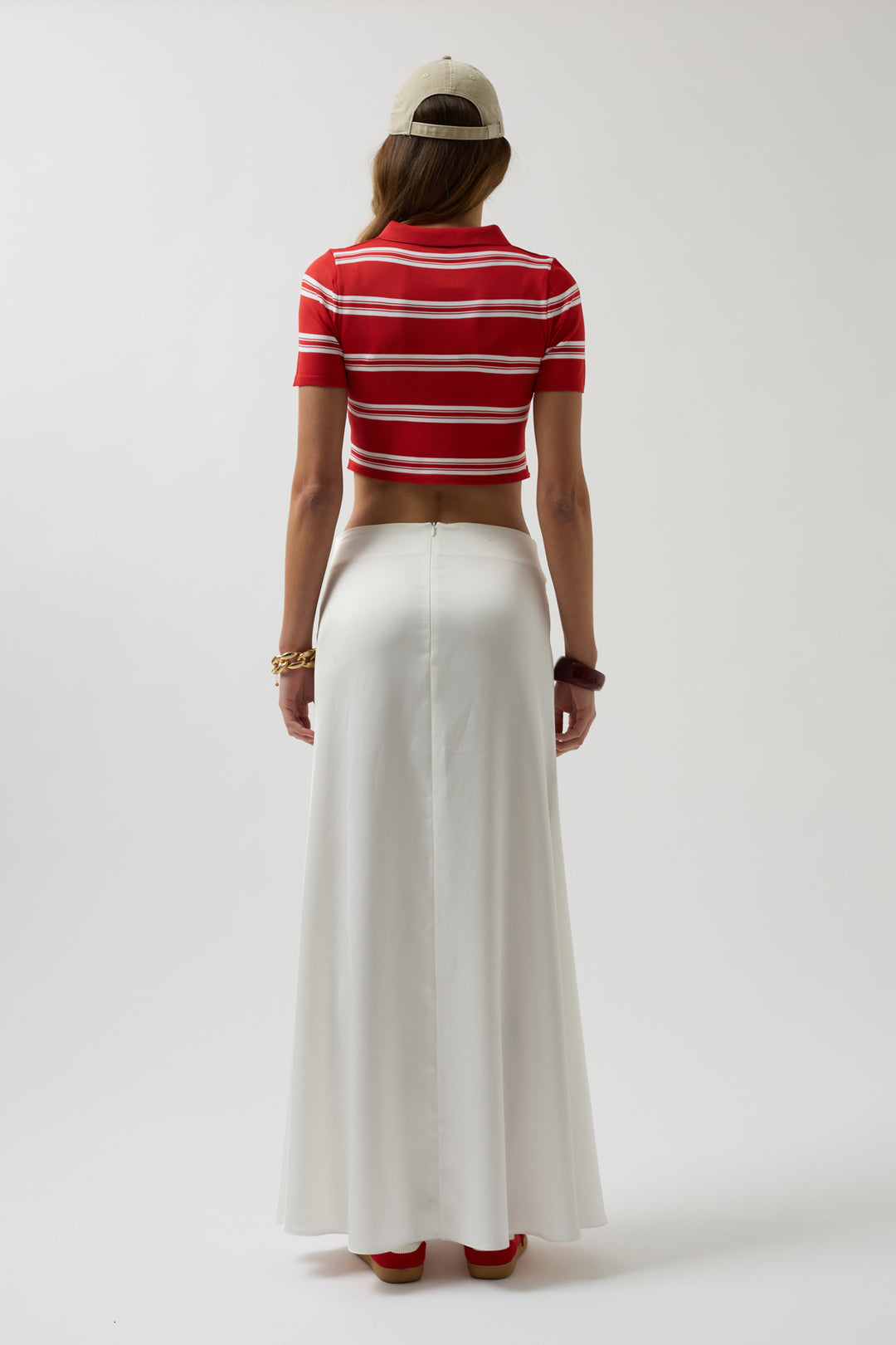Two-Colored, Striped, Buttoned, Knitted Crop Blouse