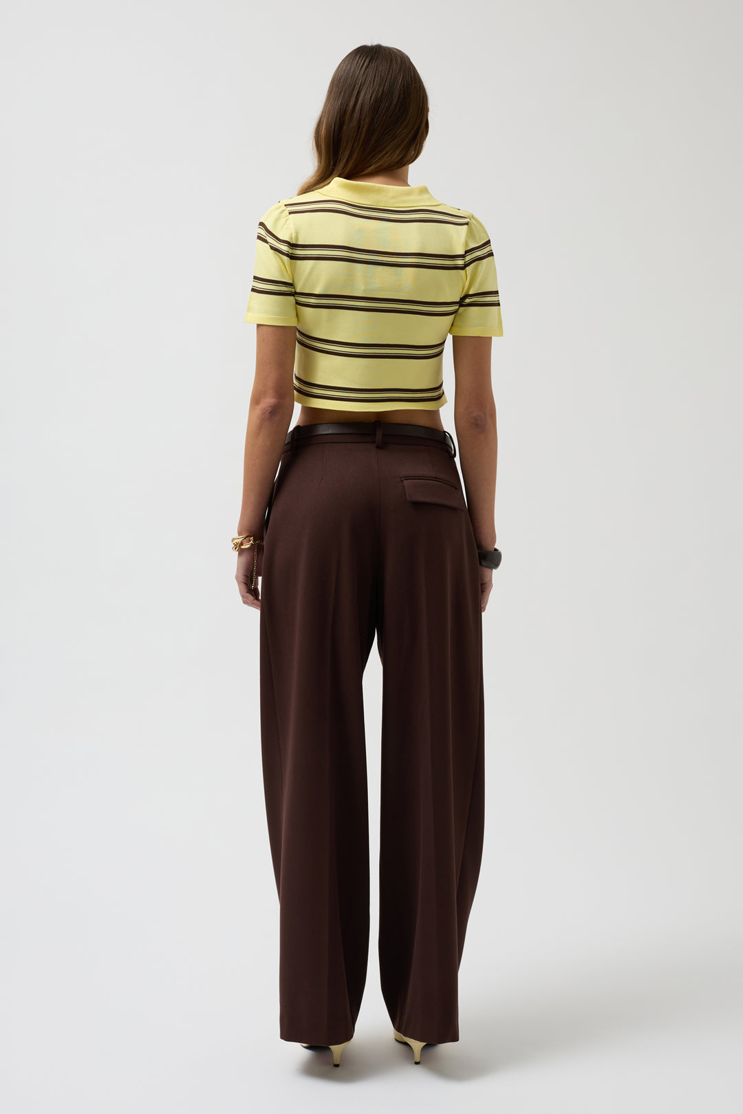 Two-Colored, Striped, Buttoned, Knitted Crop Blouse