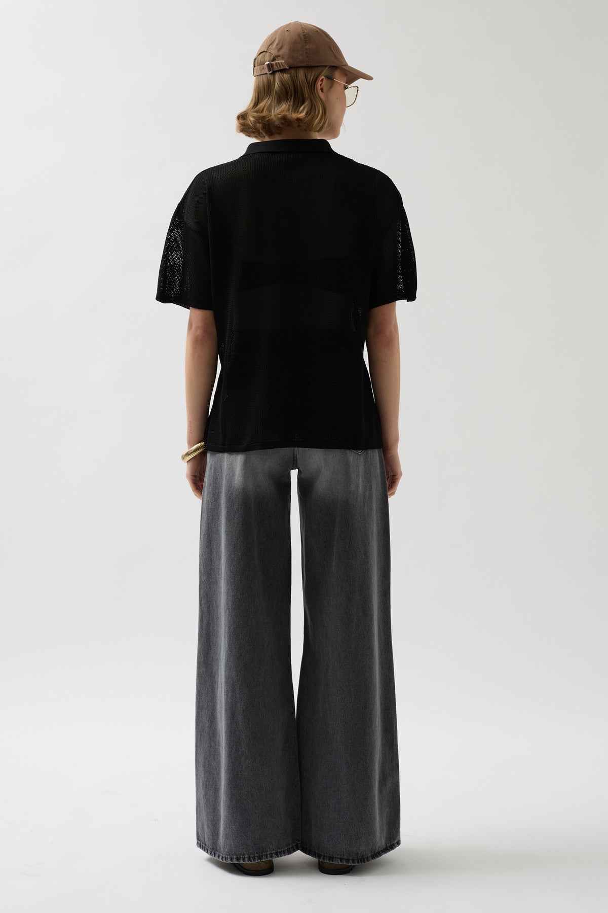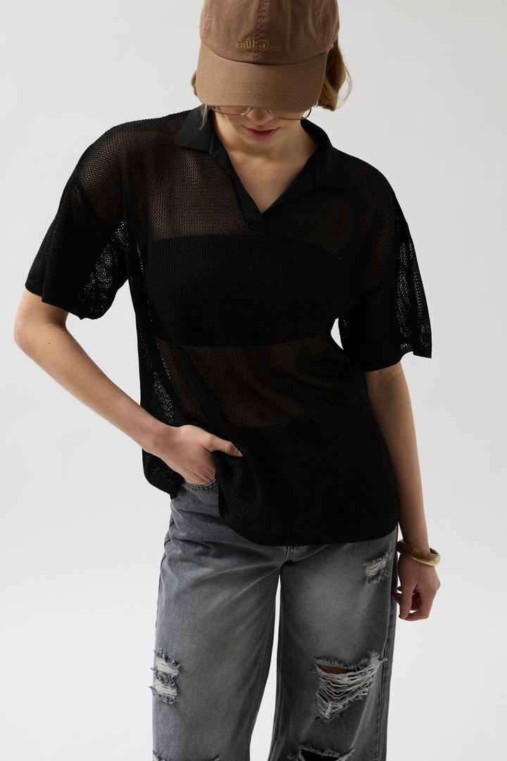 Polo Neck, Short Sleeve, Normal Length, Basic, Transparent T-Shirt