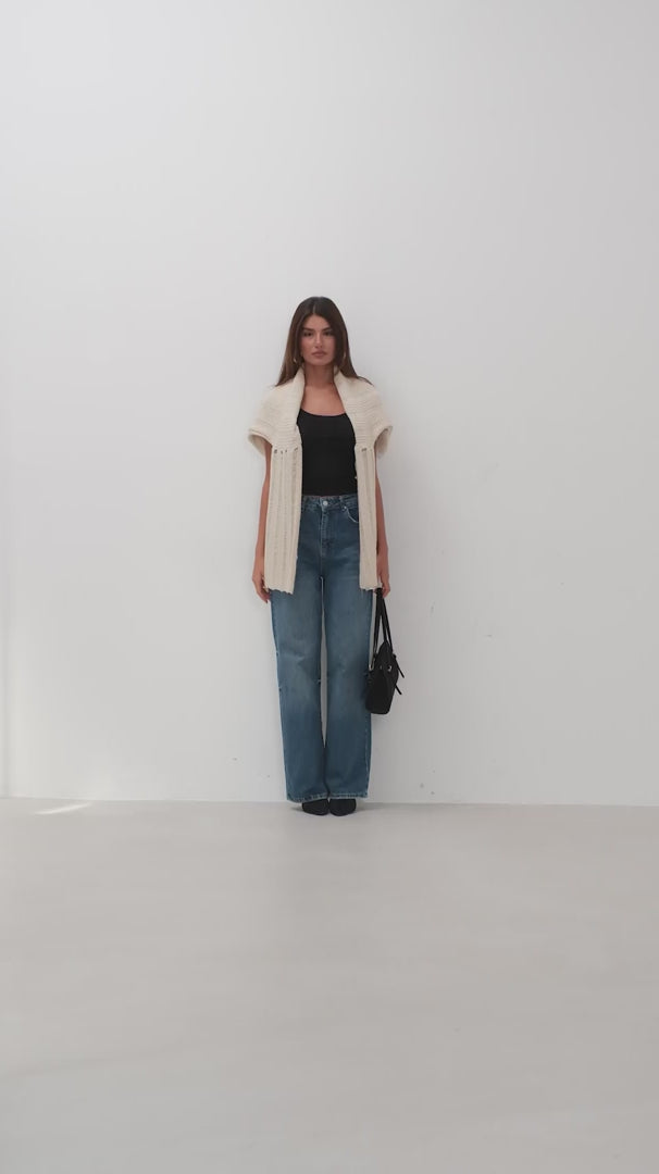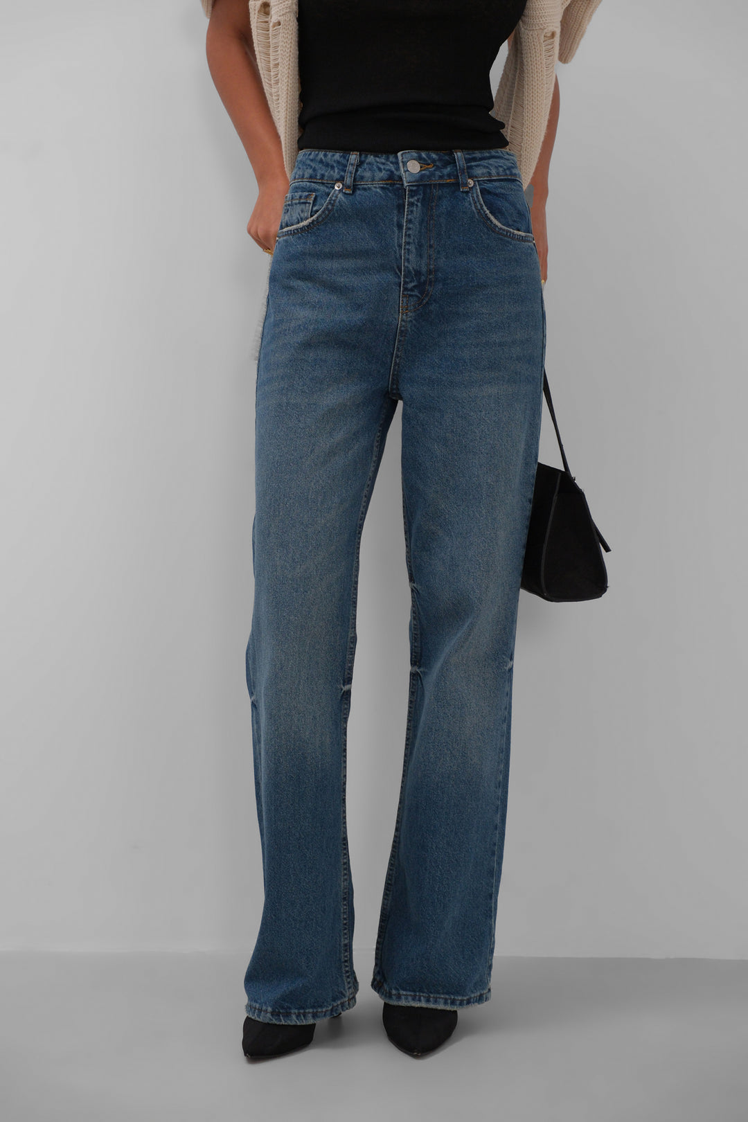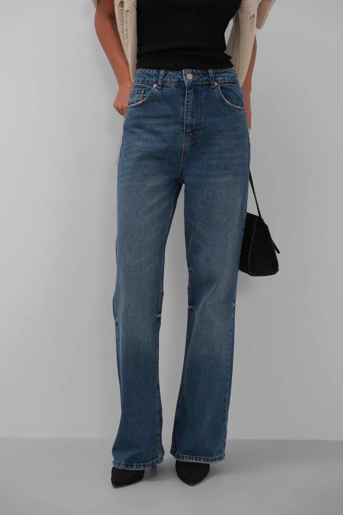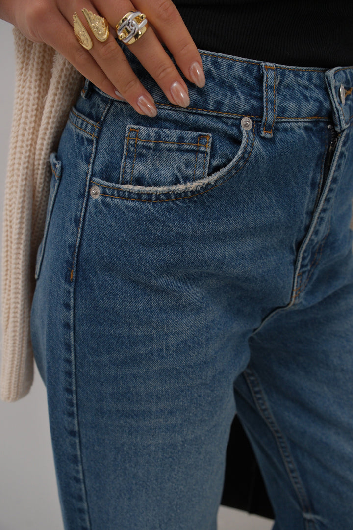 Stitch Detail Wide Leg Blue Jeans