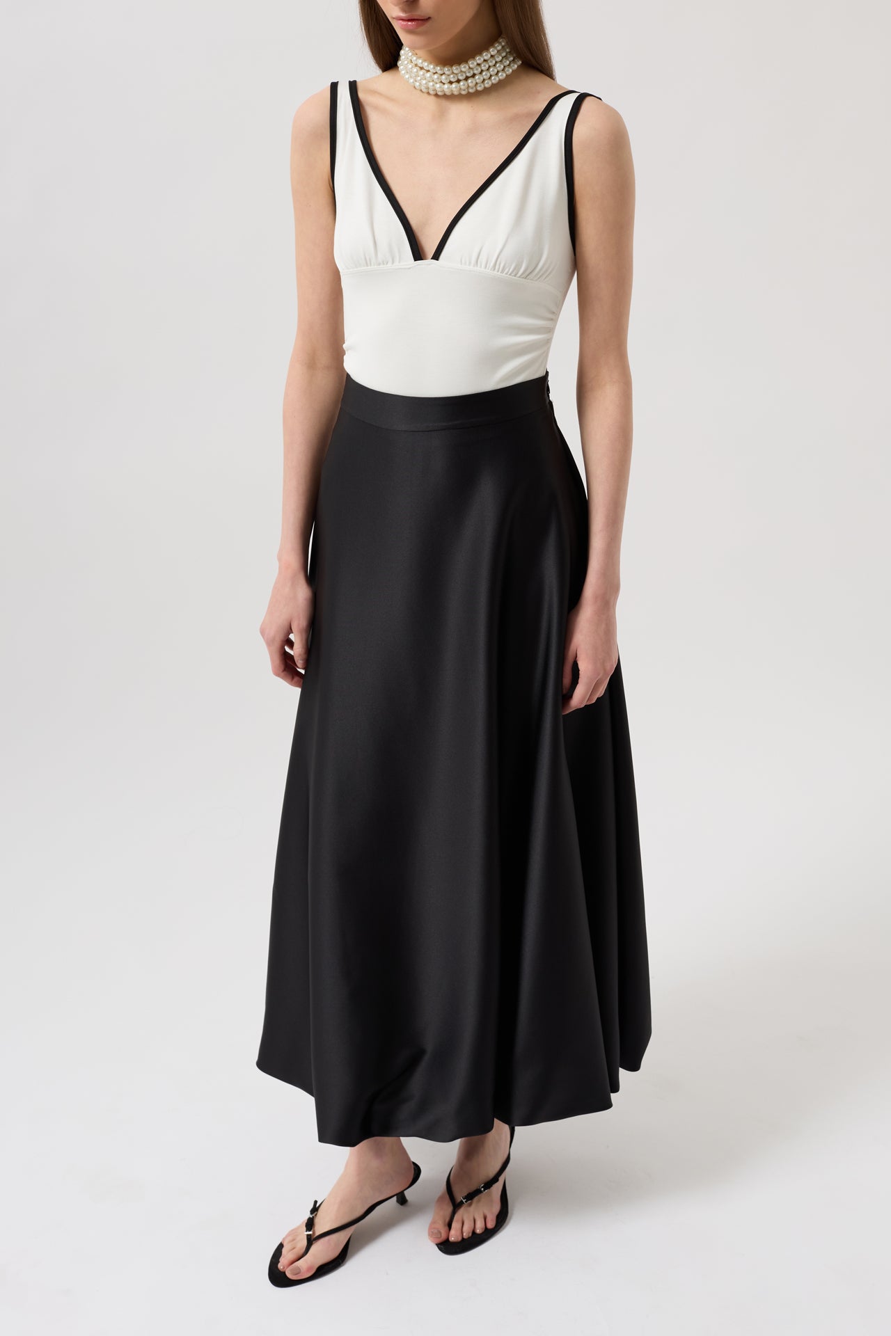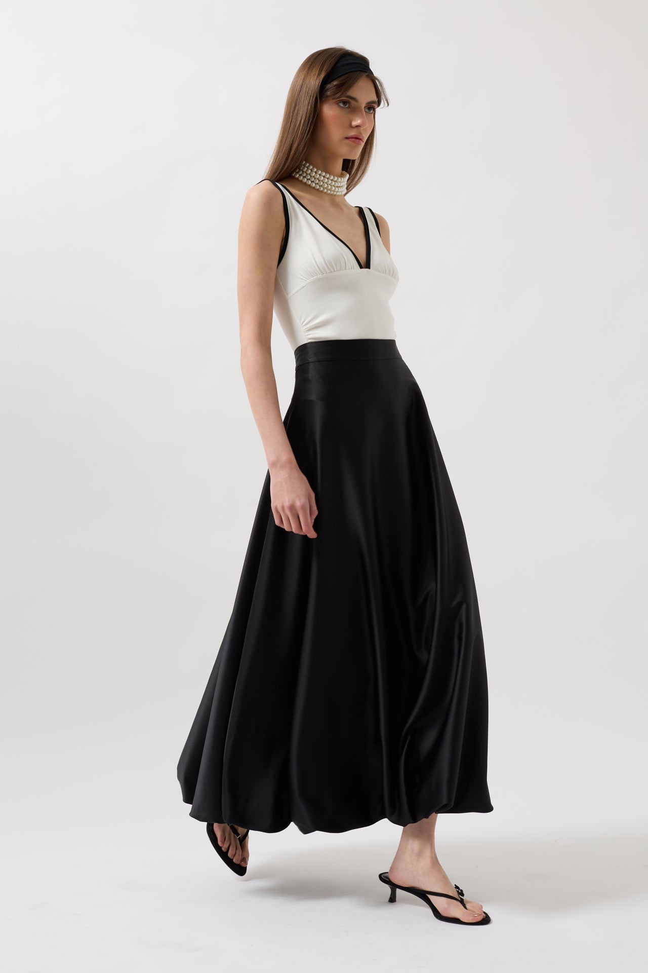 Balloon Form Long Skirt with Side Hidden Zipper, Double Layer Lining Inside