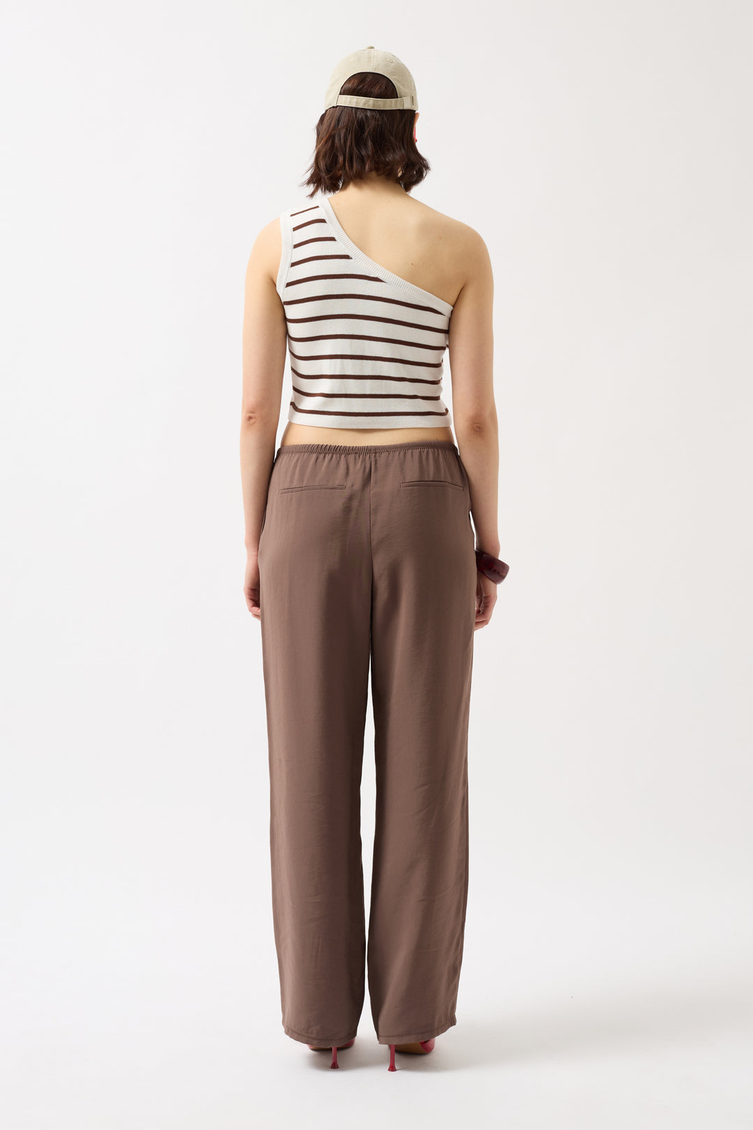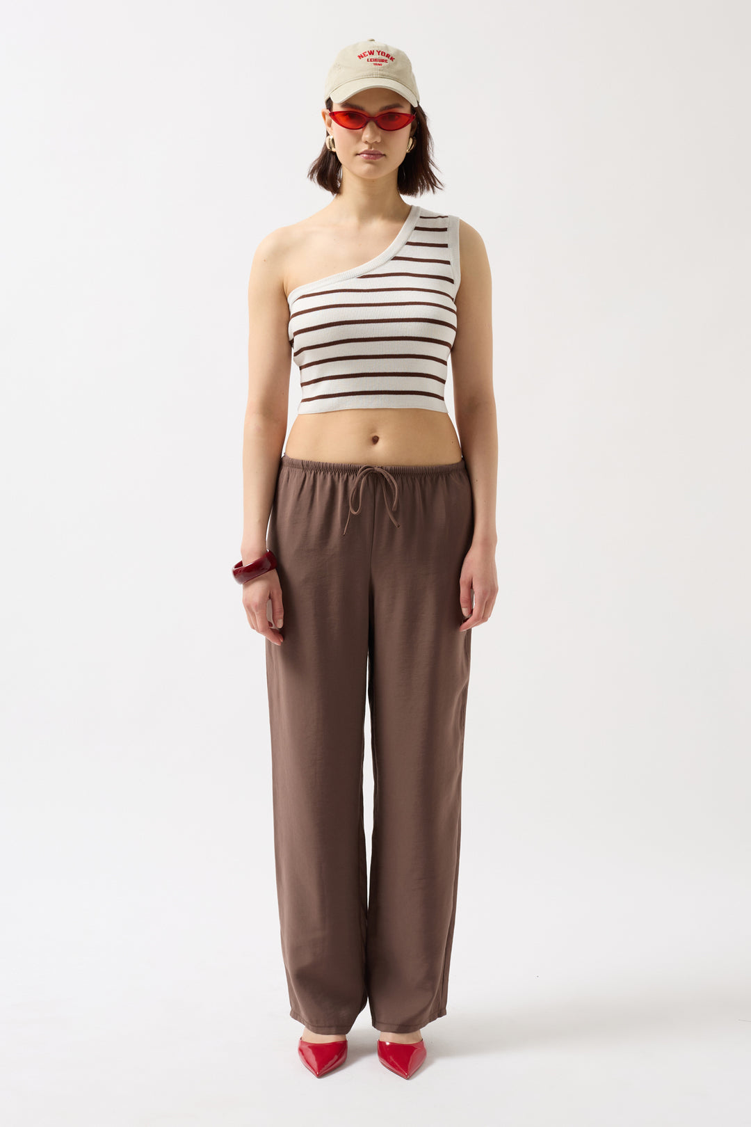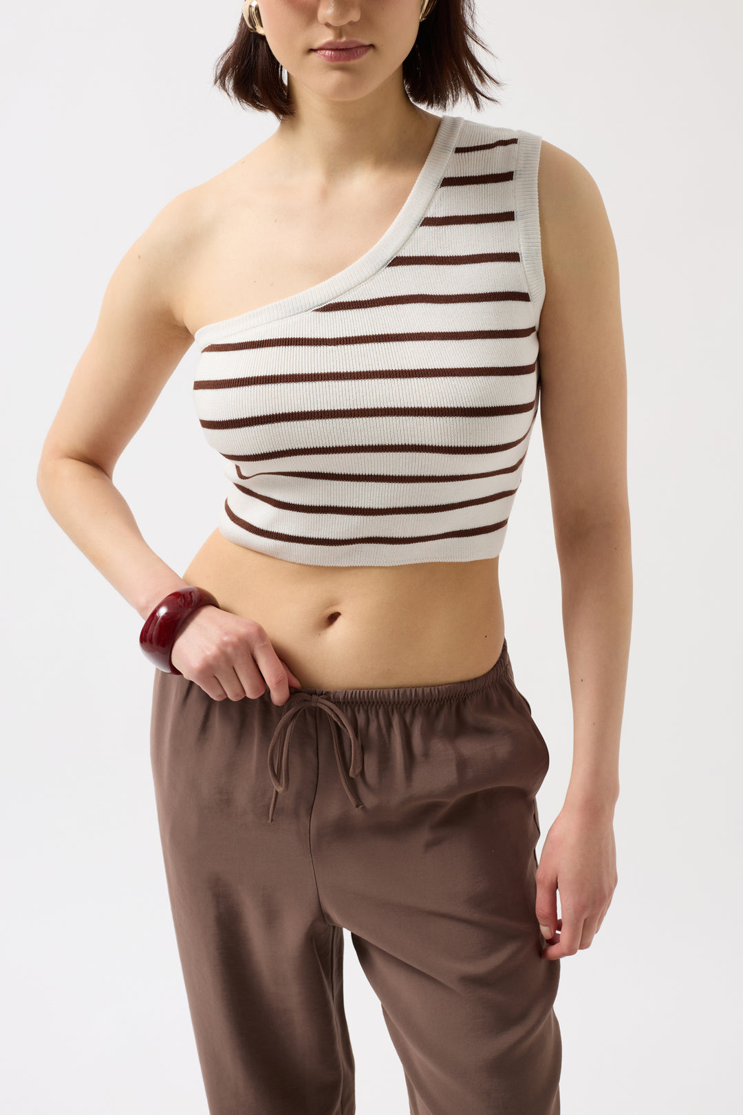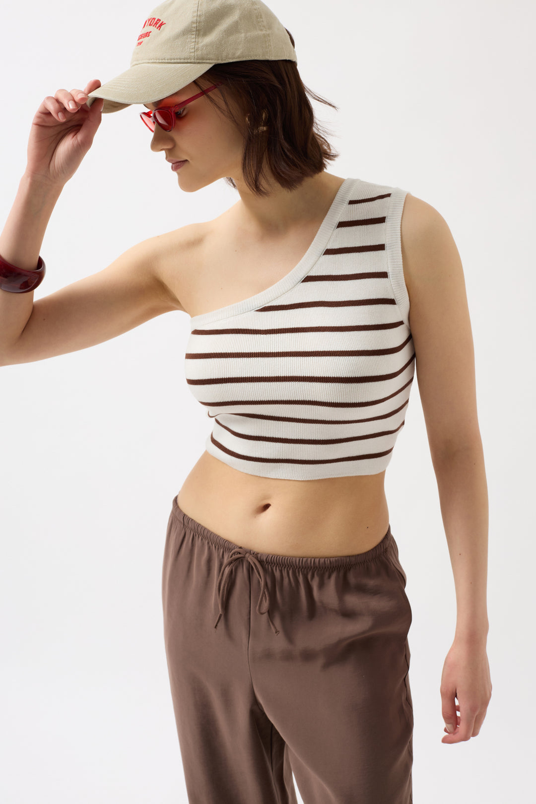 Knitwear, Contrast Striped, Piping Detailed, Flexible Textured Crop Blouse
