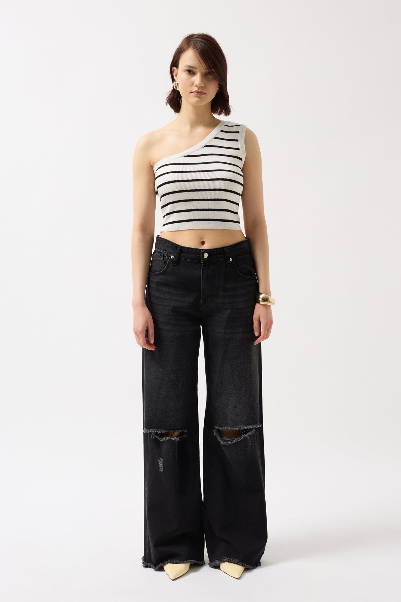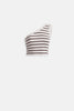 Knitwear, Contrast Striped, Piping Detailed, Flexible Textured Crop Blouse