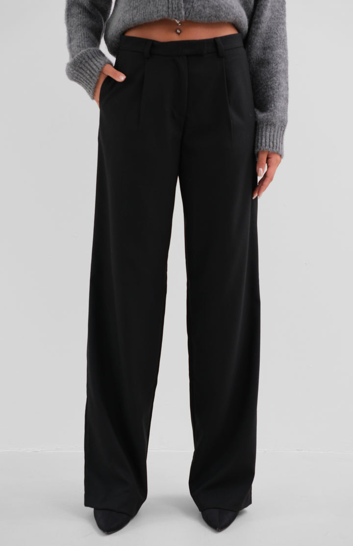 Single Pleated Black Wide Leg Trousers