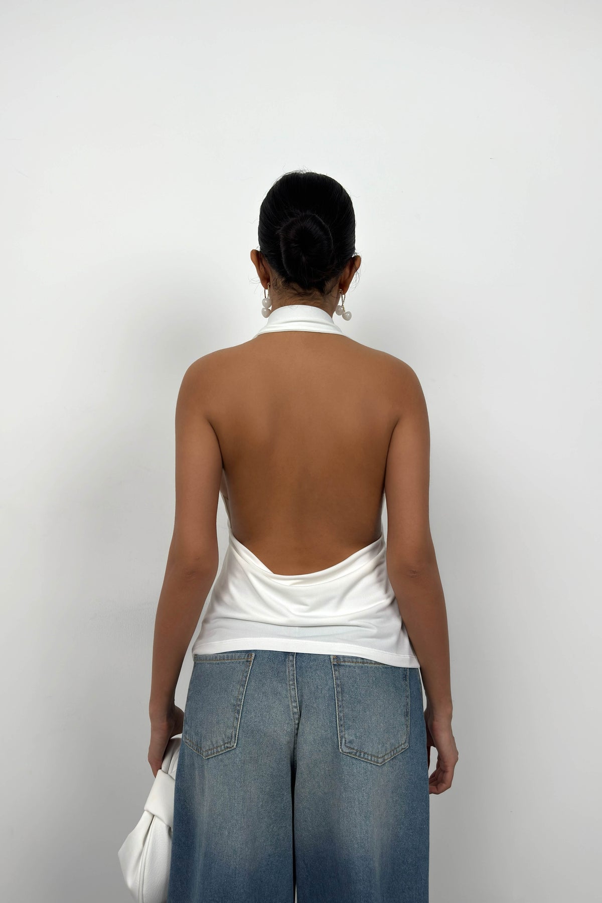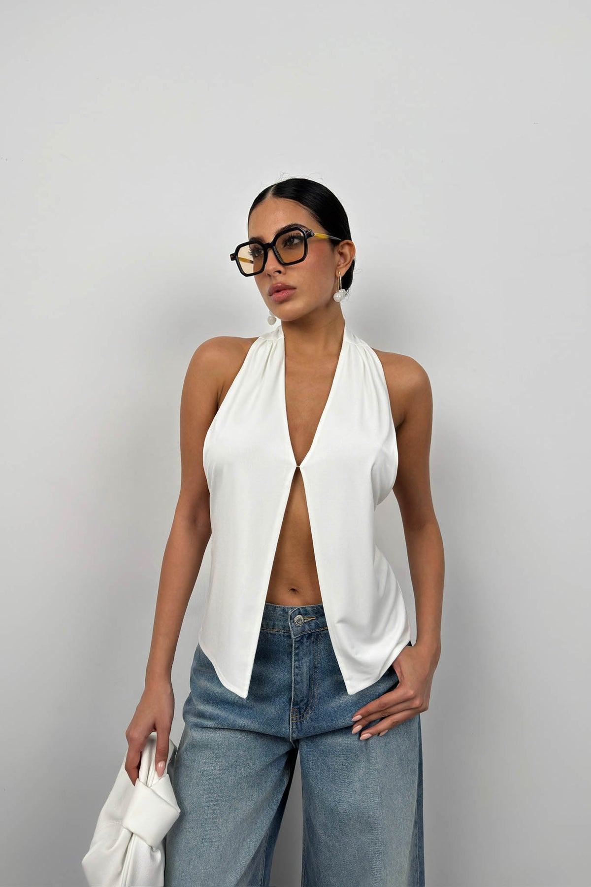 V Neck, Low Back, Long, Single Front Fastener, Vest, Blouse