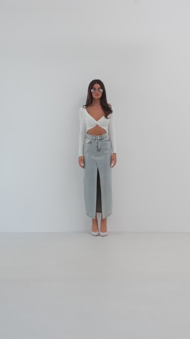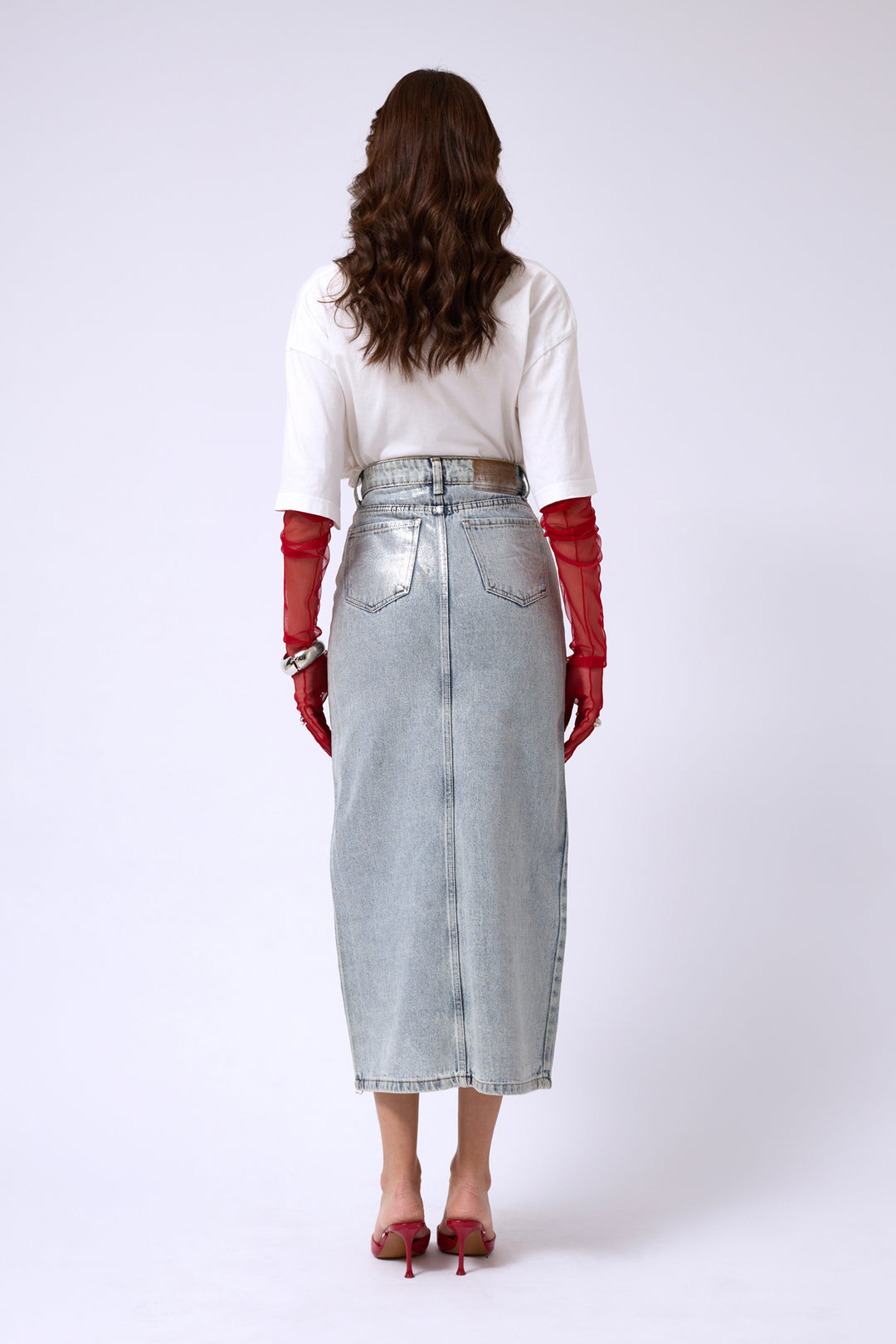 Maxi Length, Buttoned, Pocketed, Foil Coated, Front Slit Skirt