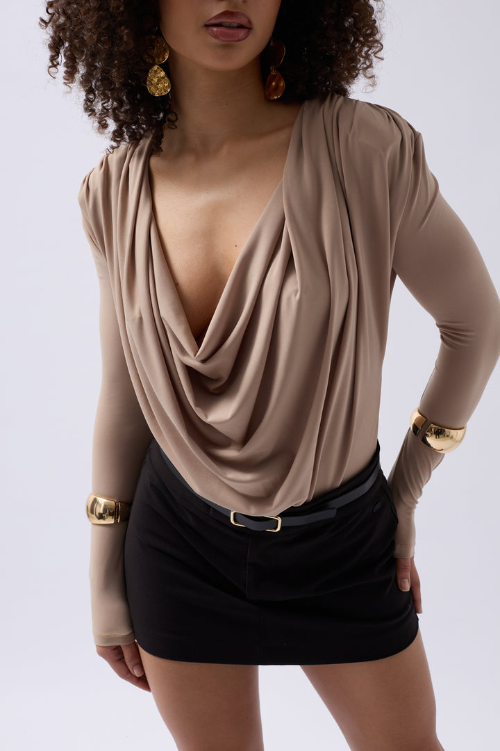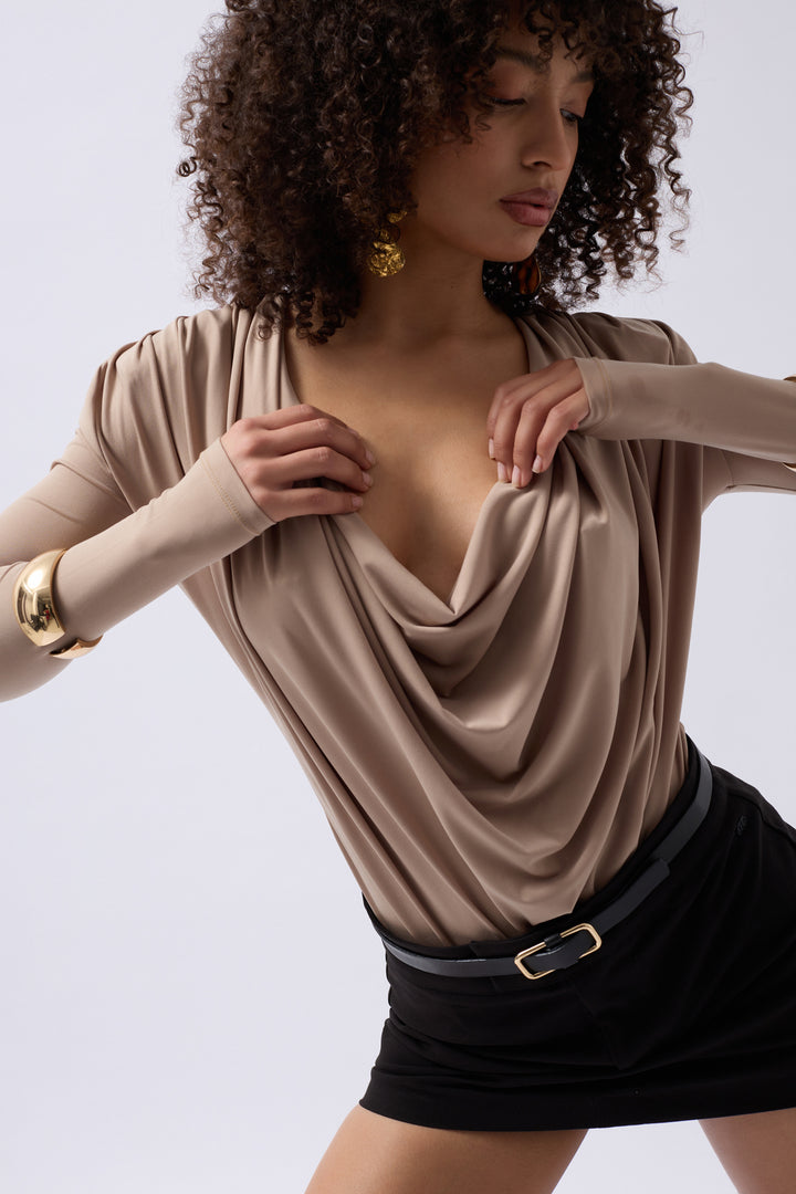 Flexible and Lycra Fabric, Snap Fastener, Front Degaje Model, Long Sleeve Blouse