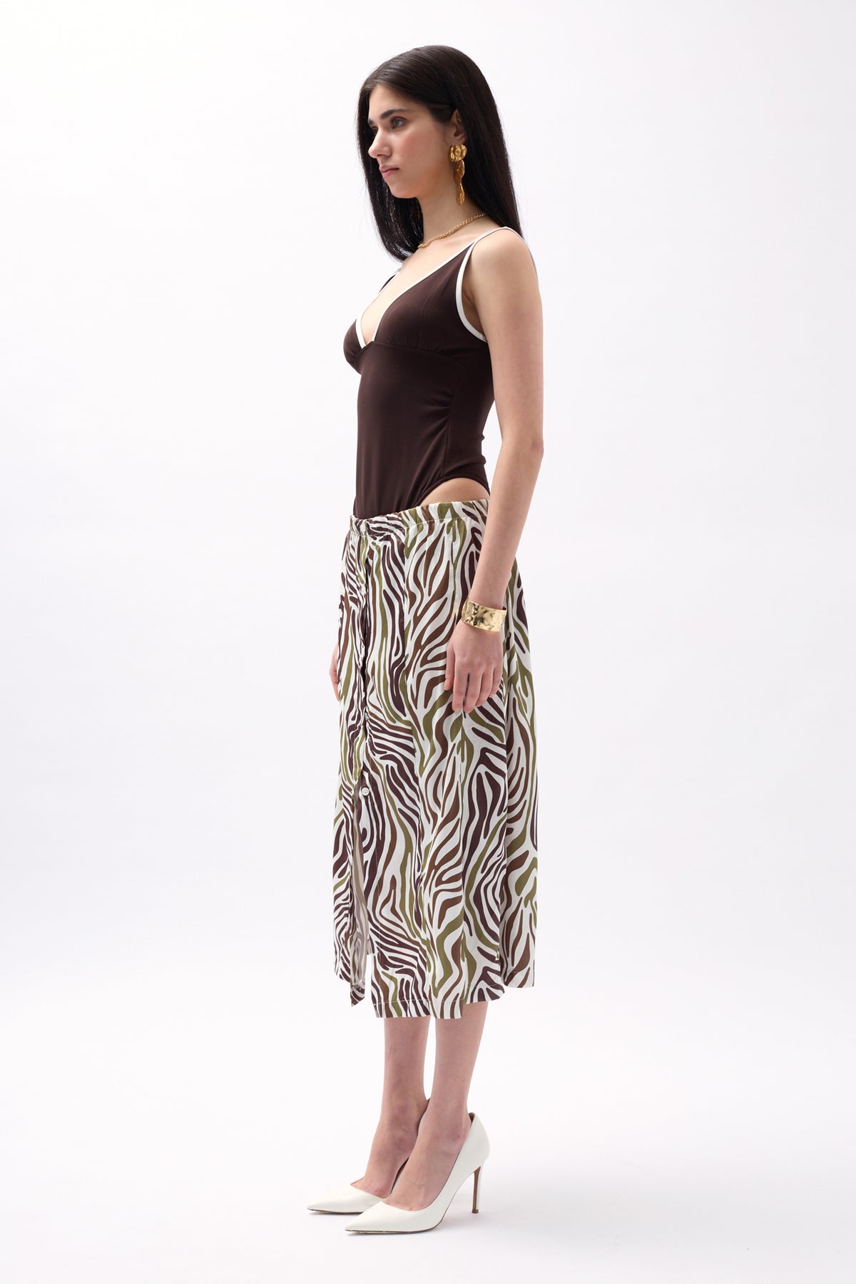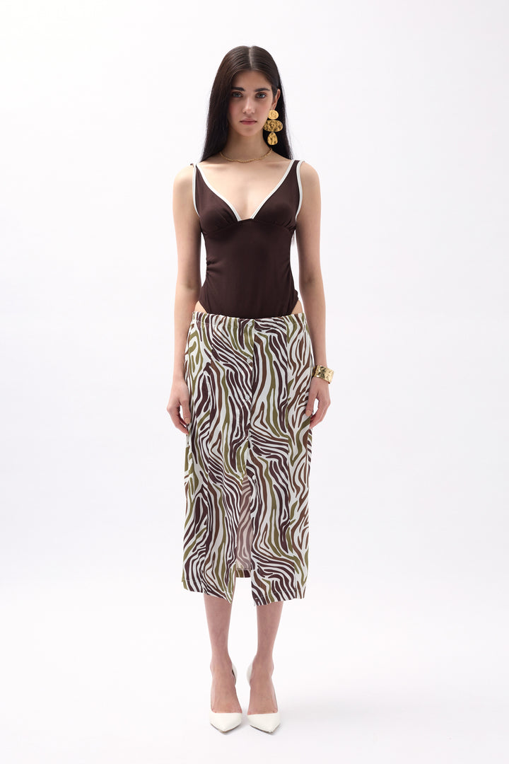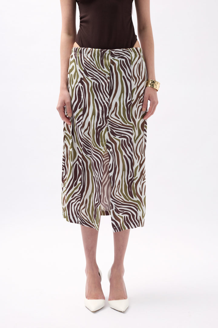 Side Slit, Buttoned, High Waist, Maxi Length, Patterned Skirt