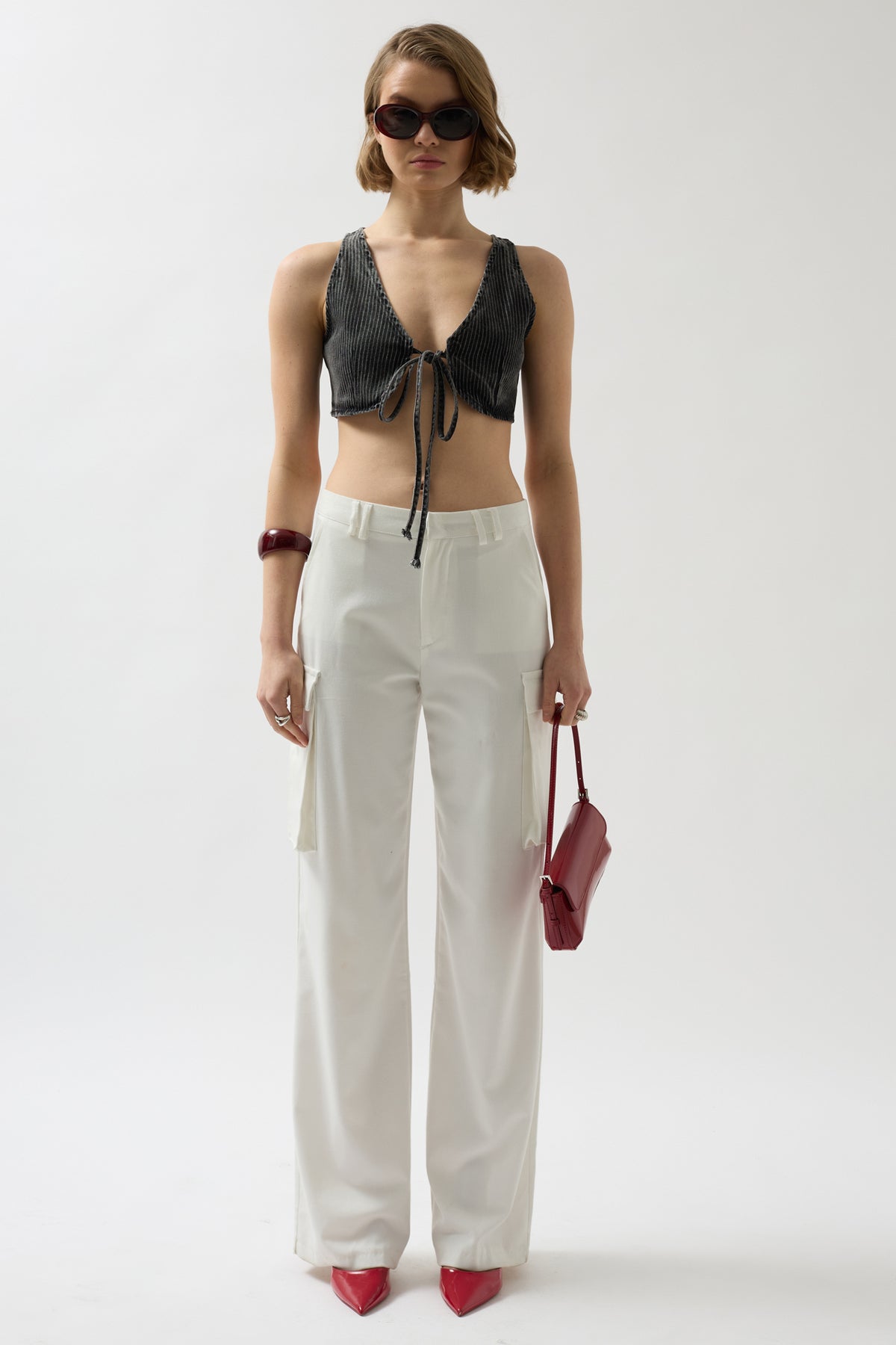 Model Measurements: Chest: 84 cm Waist: 60 cm Hips: 91 cm