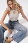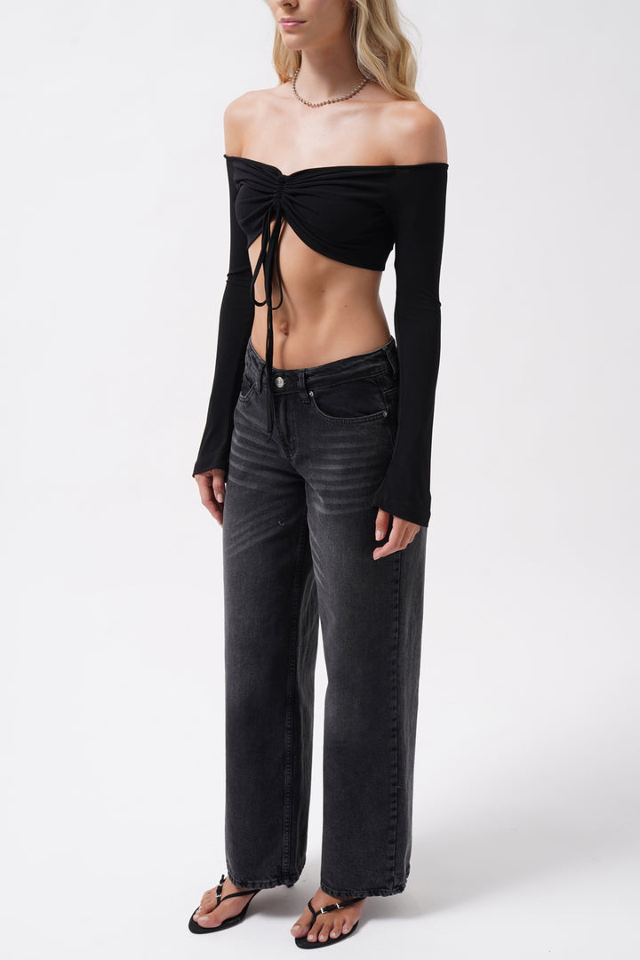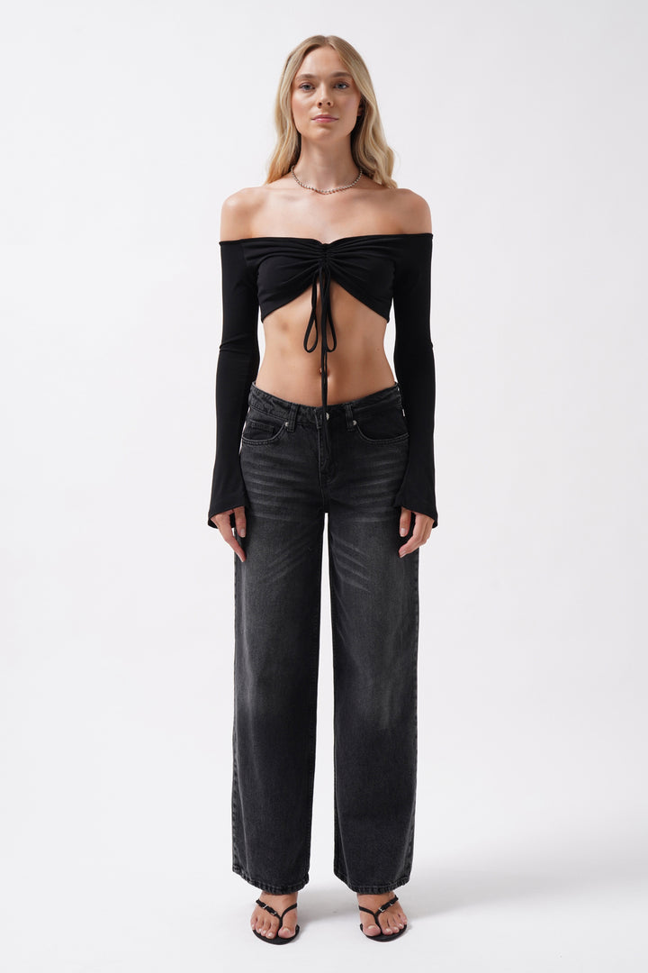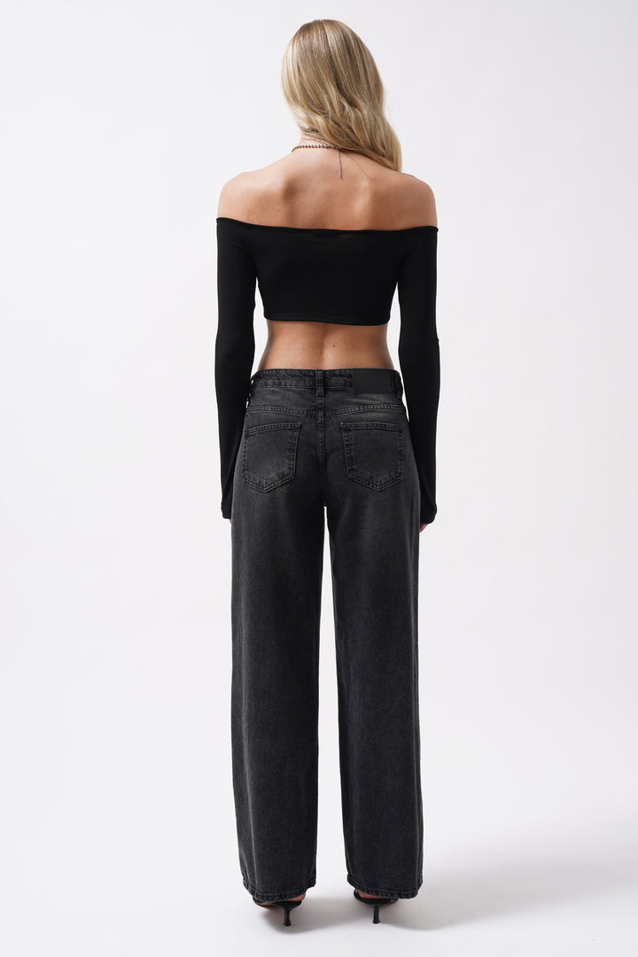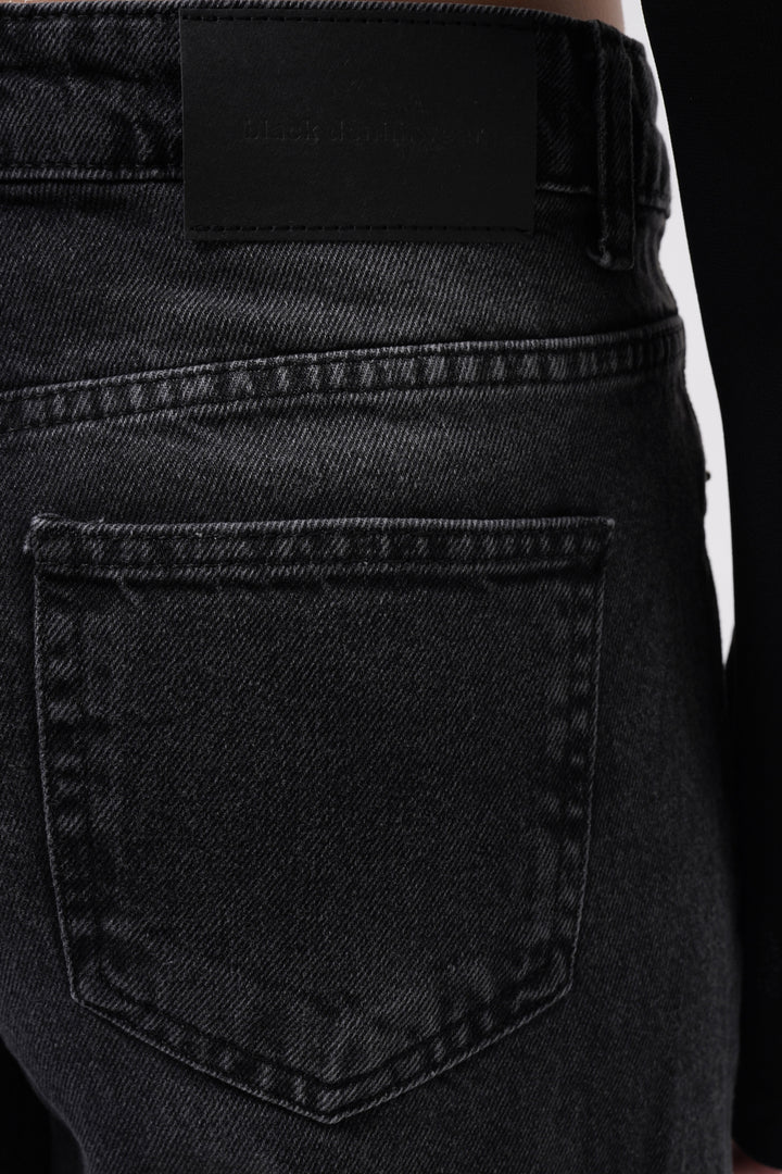 Wash Detail High Waist Black Jeans
